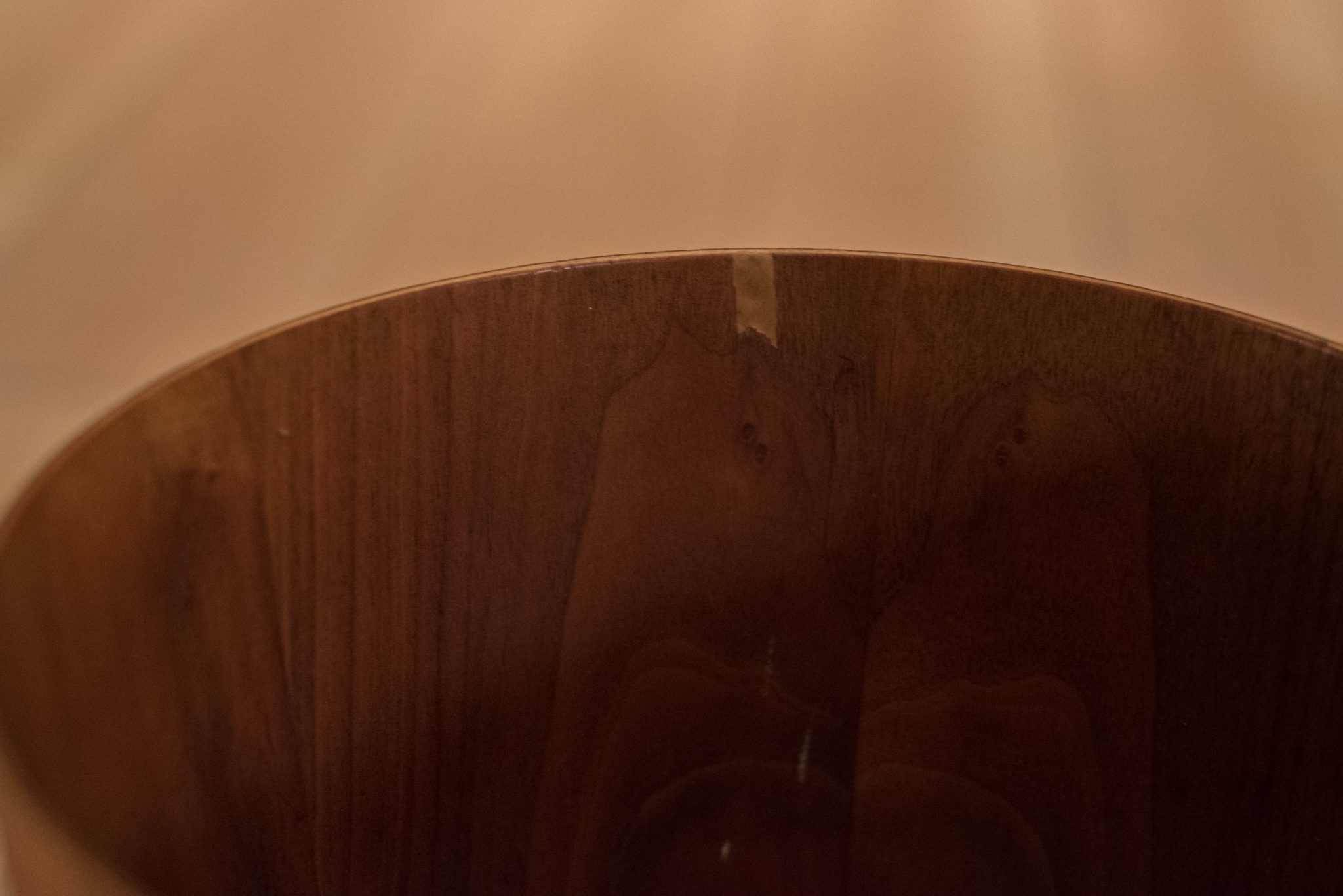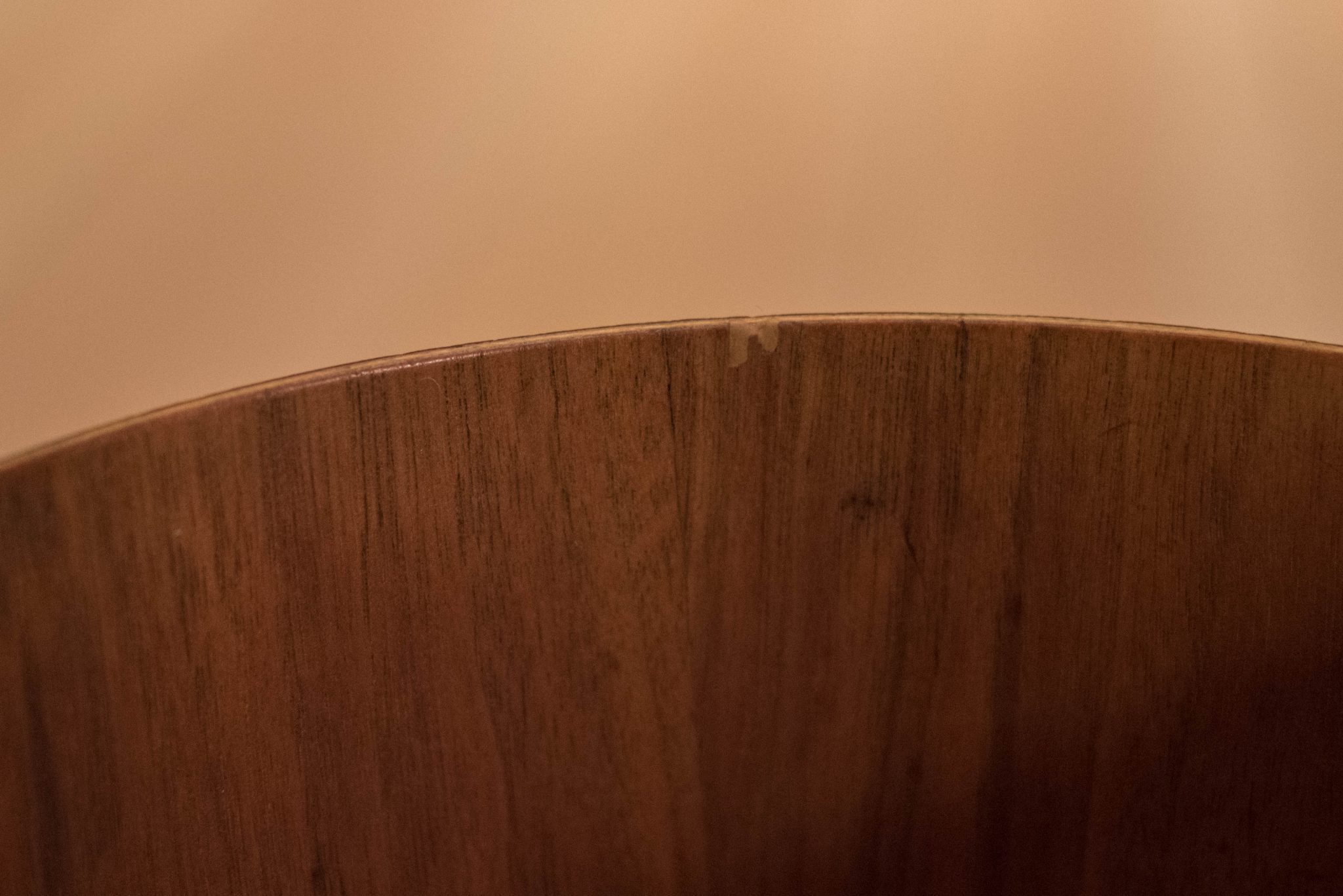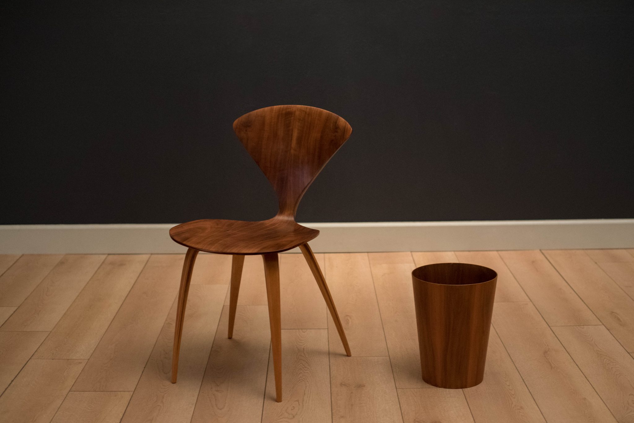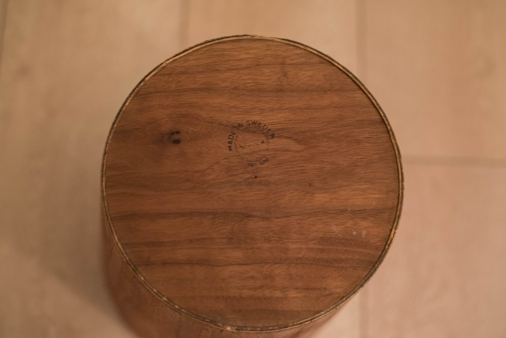 Vintage Mid Century Waste Paper Basket in walnut, marked made in Sweden. This piece works perfect in any office or modern decor. In good condition with minimal vintage wear such as nicks on the bottom and fills on the inside of bin. See photos