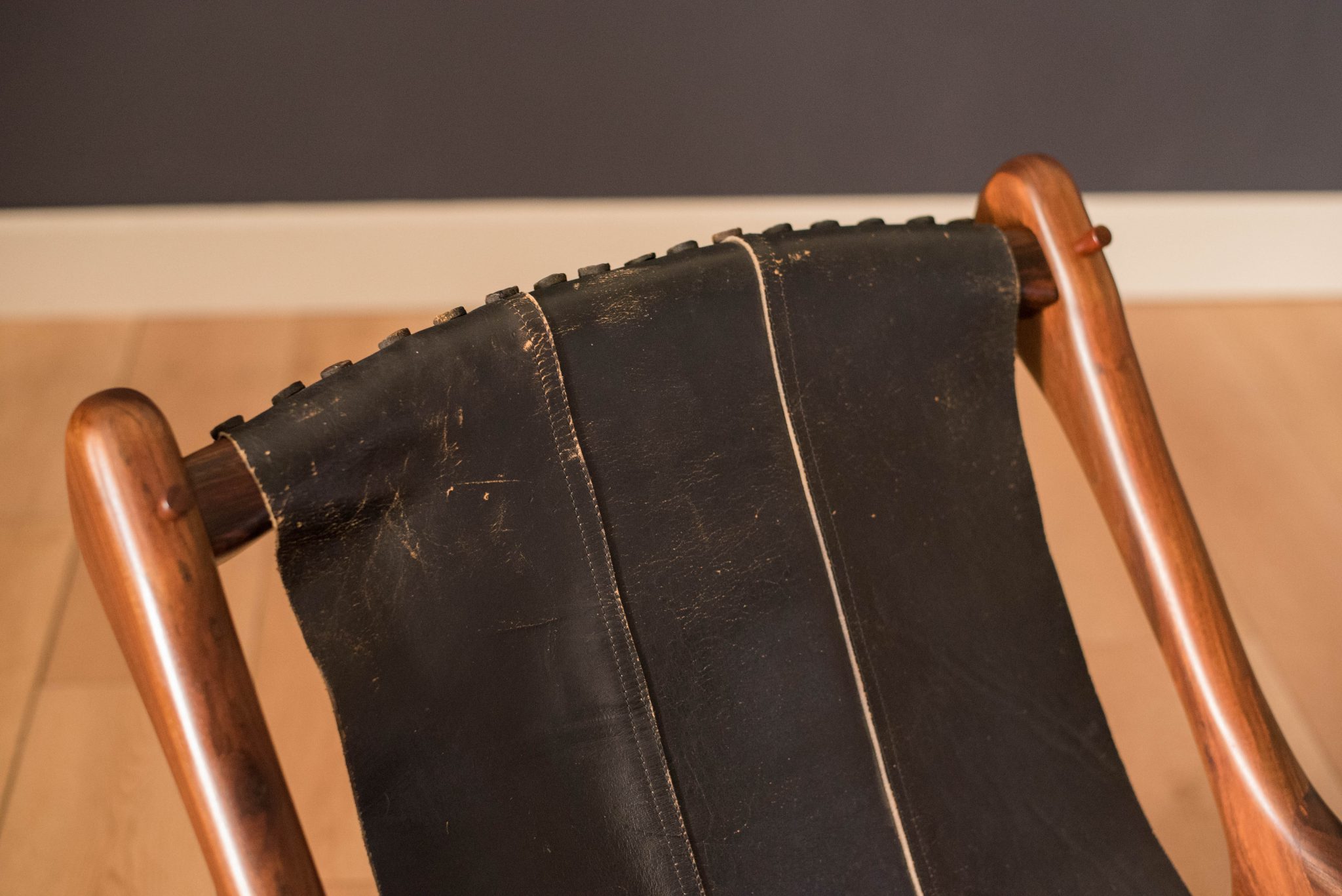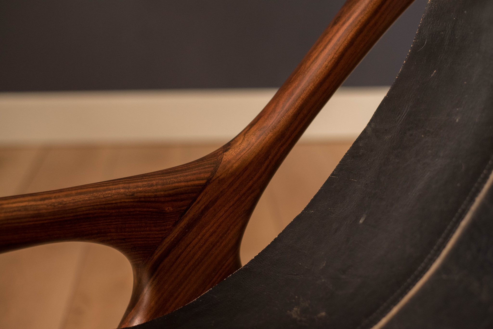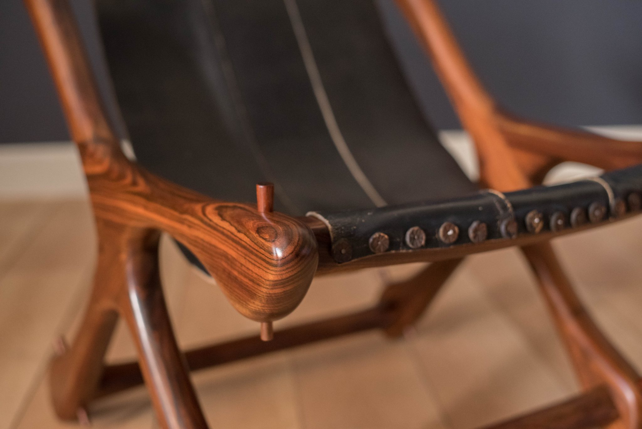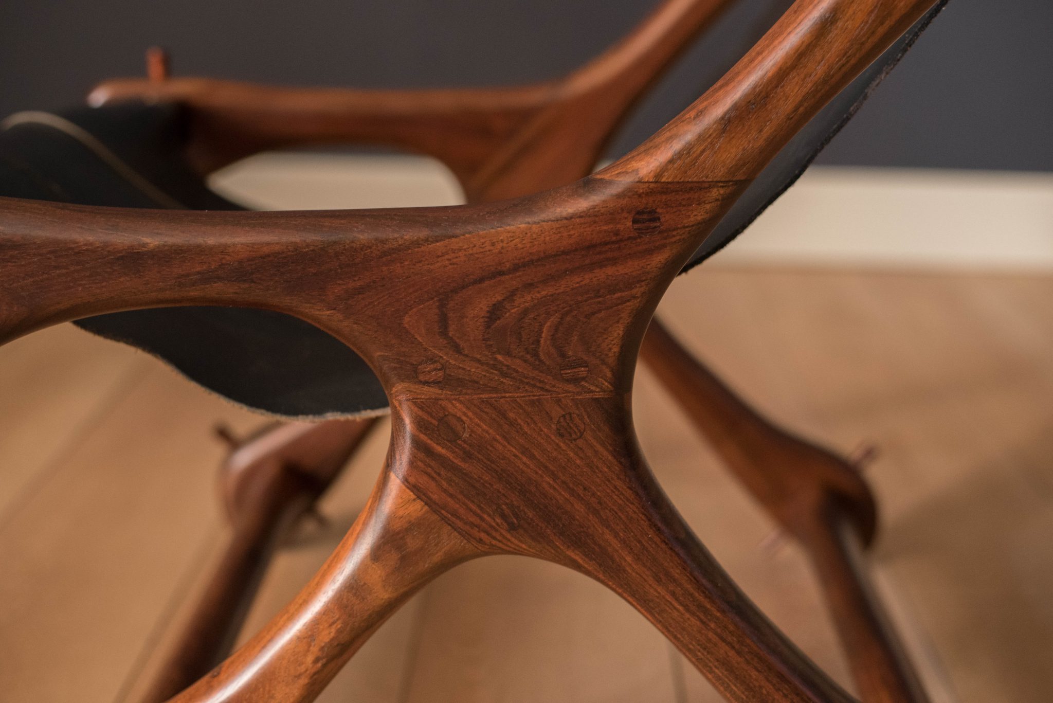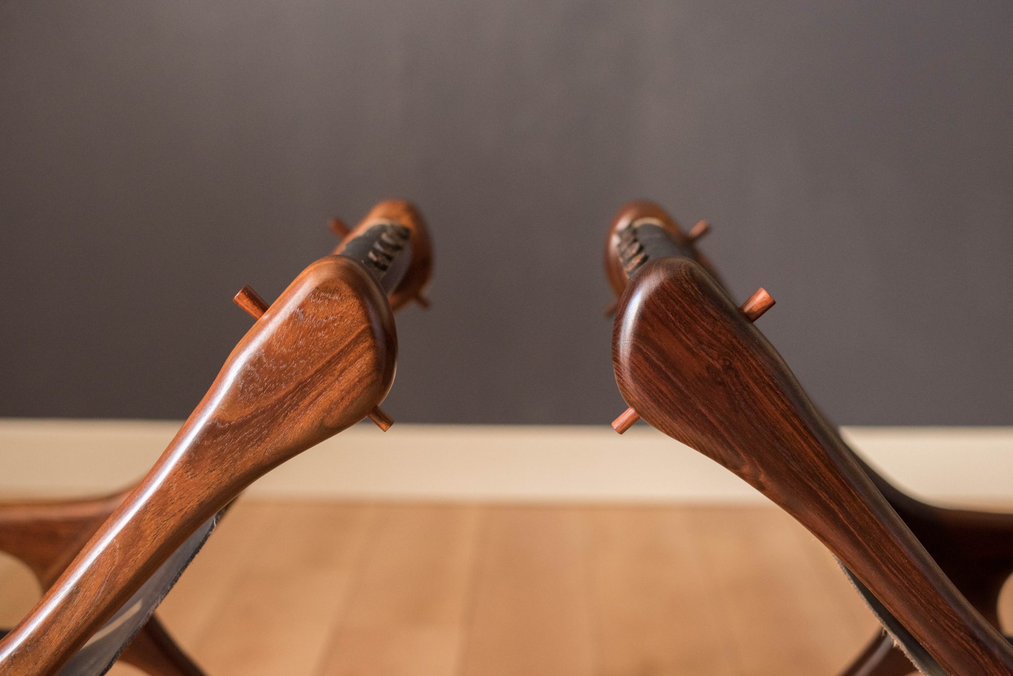 Mid Century Pair of Leather Cocobolo Rosewood Sling Chairs by Don Shoemaker