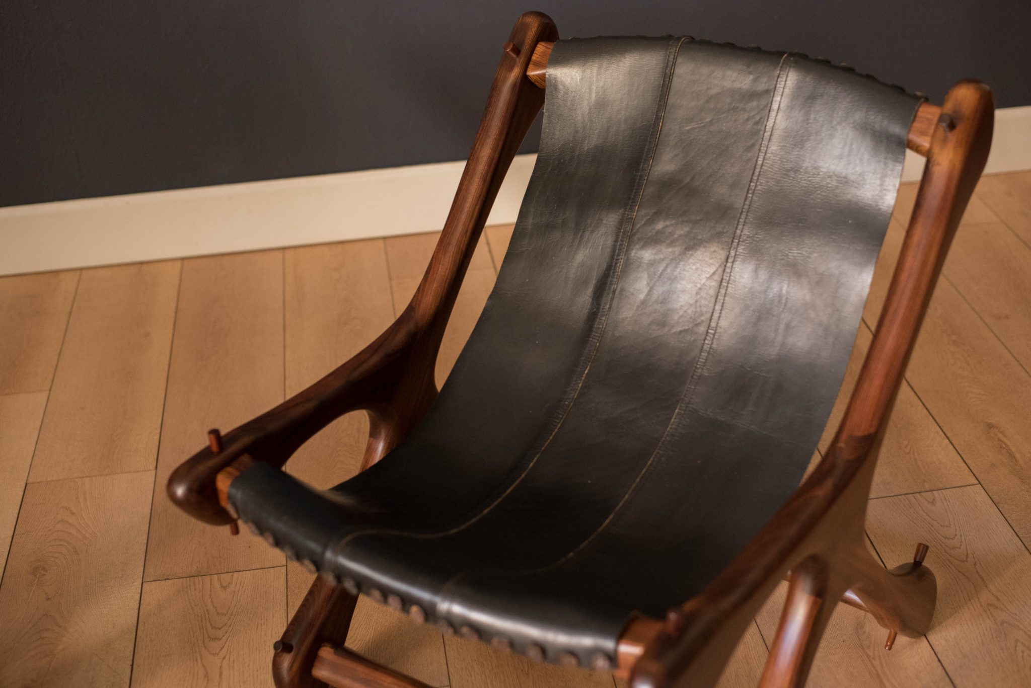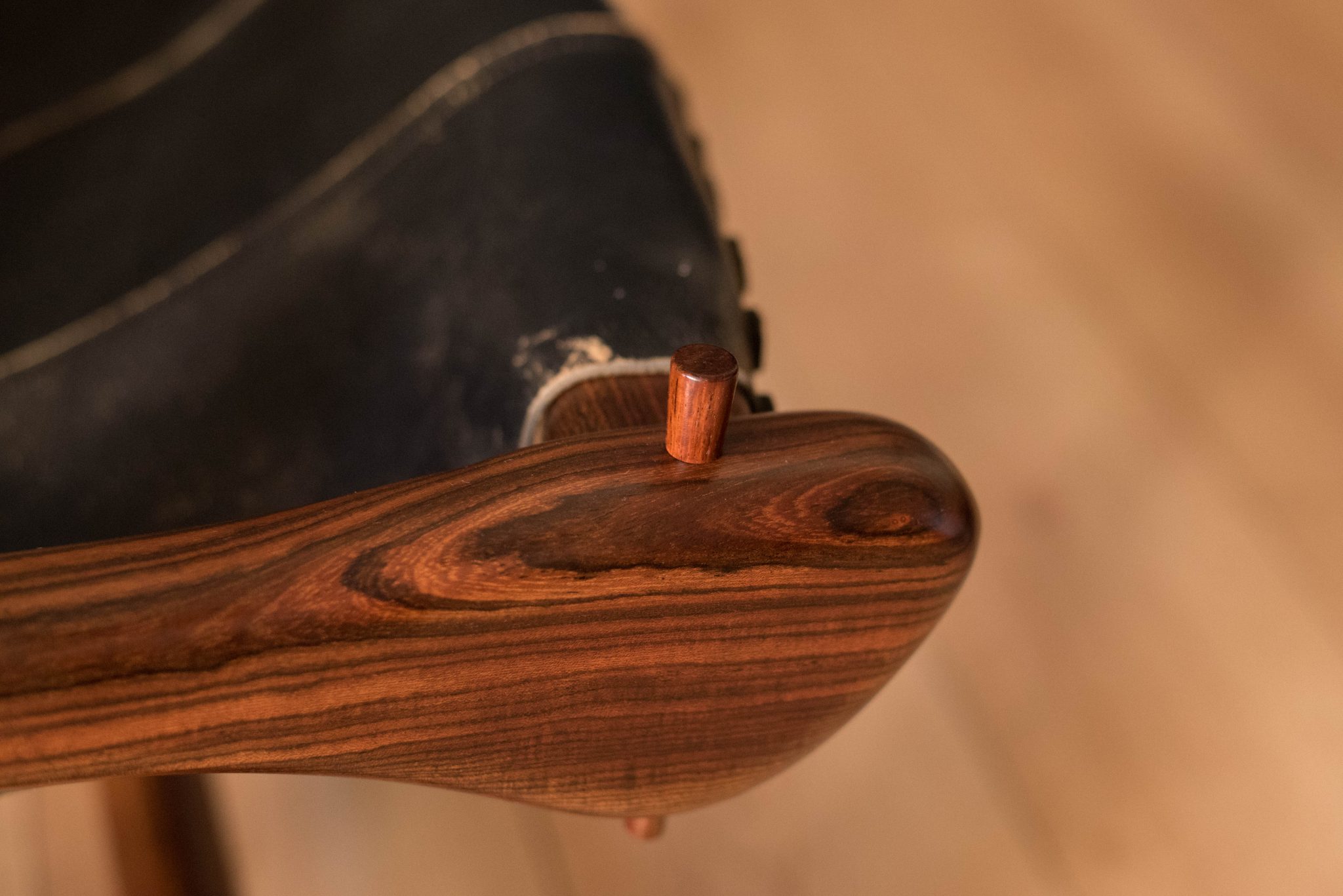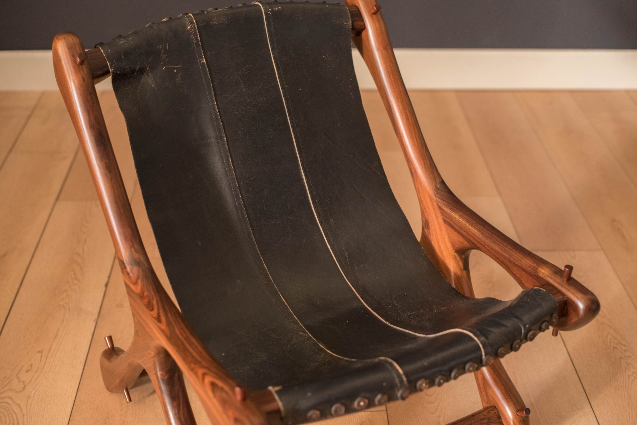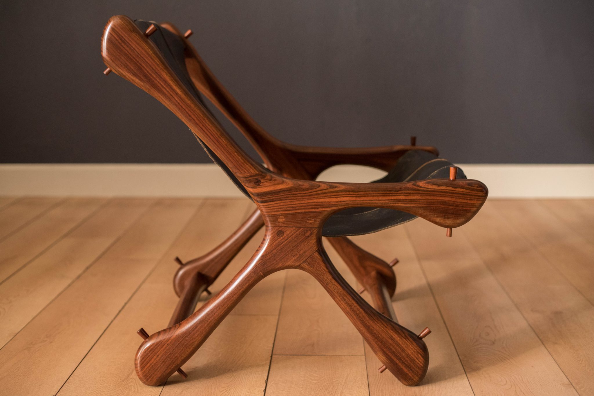 Mid Century Pair of Leather Cocobolo Rosewood Sling Chairs by Don Shoemaker