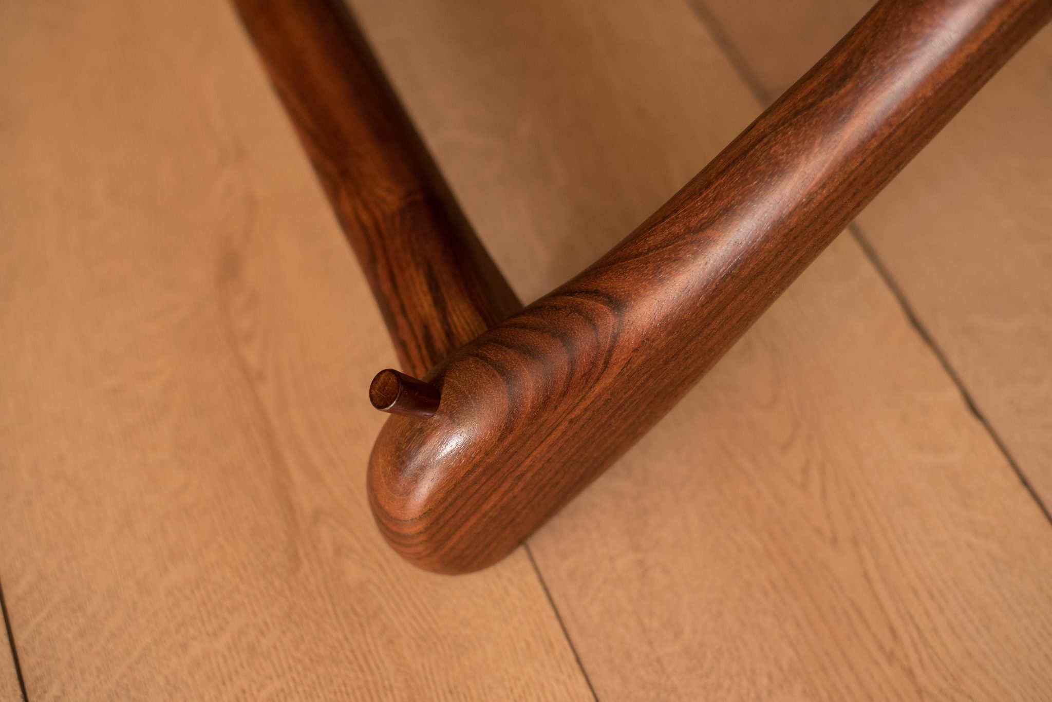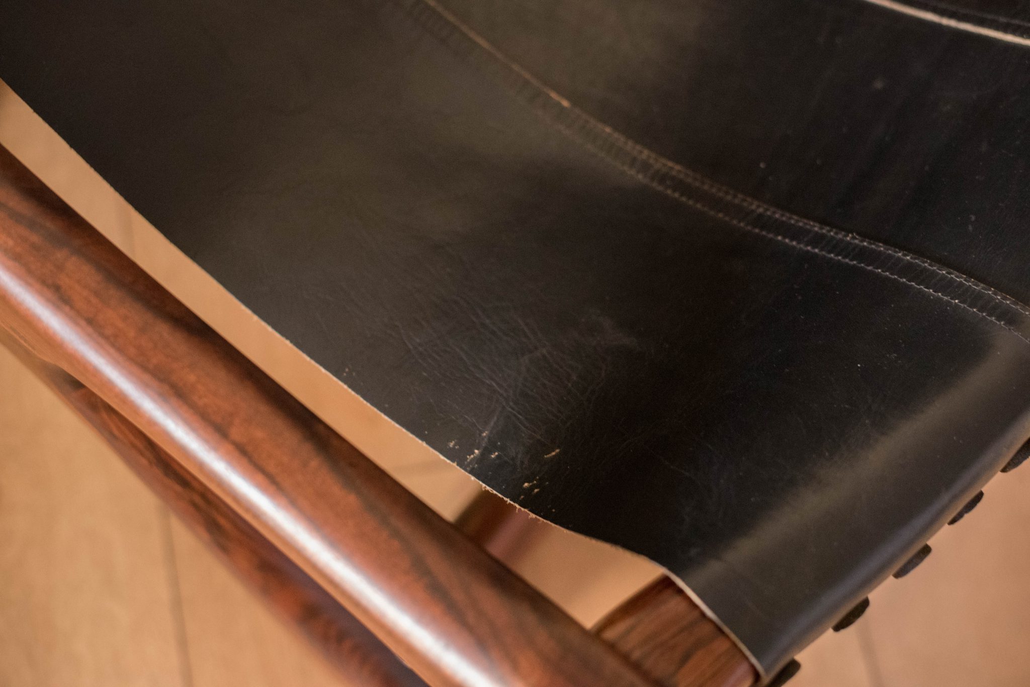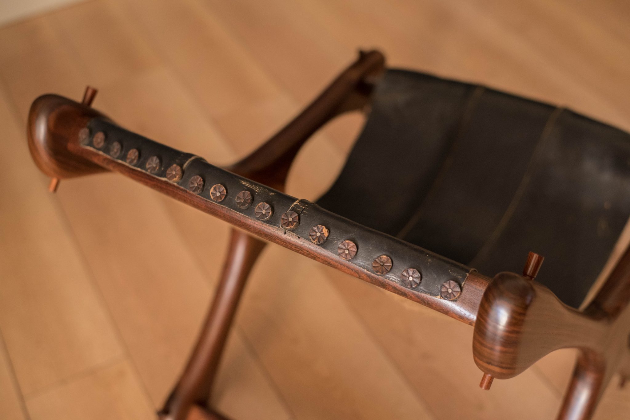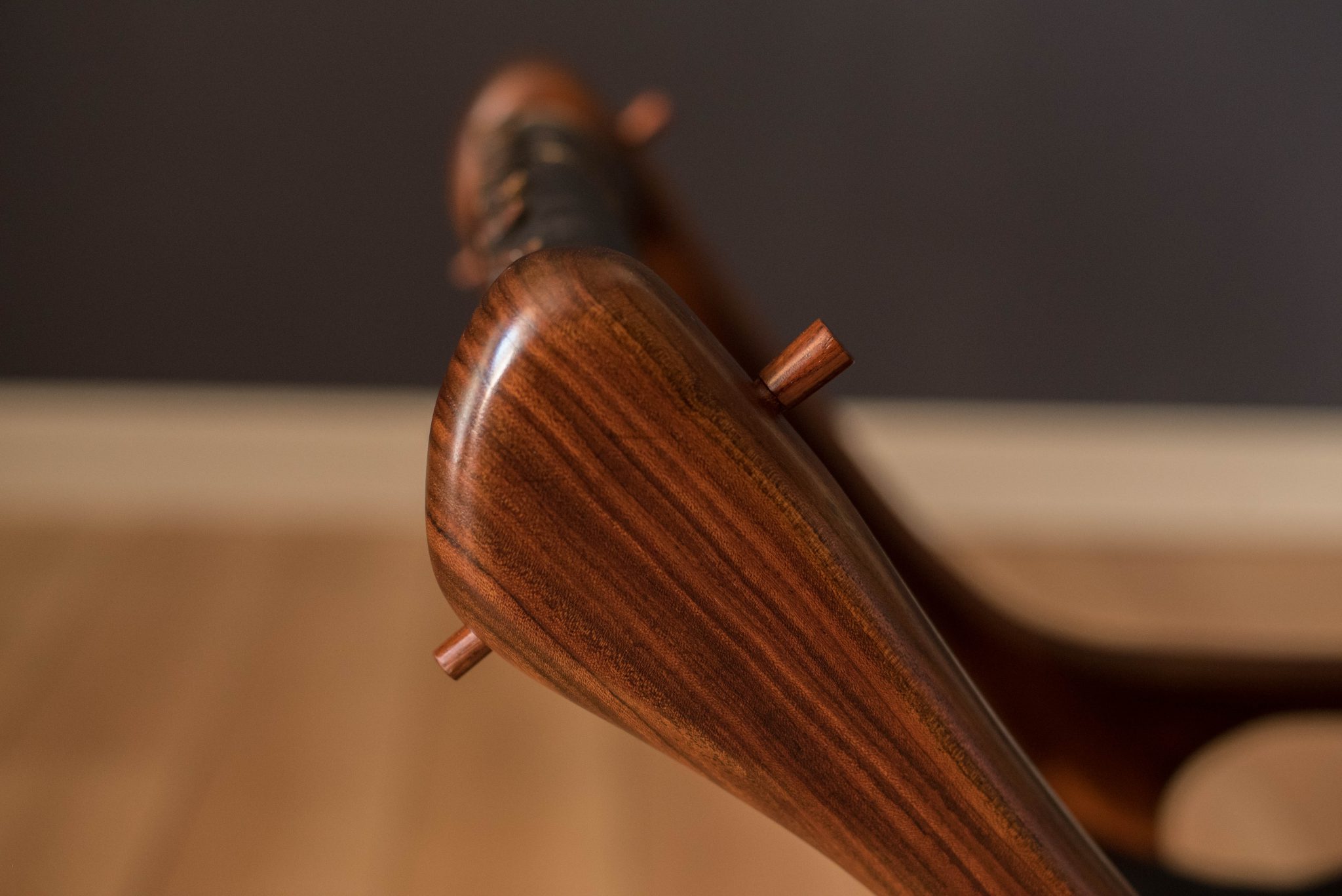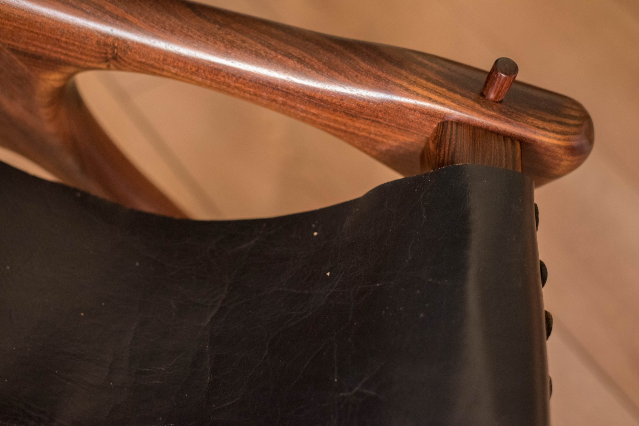 Mid Century Pair of Leather Cocobolo Rosewood Sling Chairs by Don Shoemaker