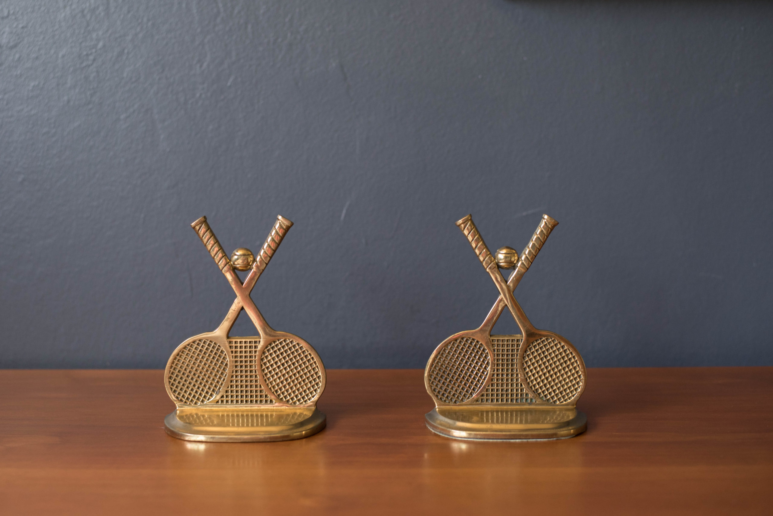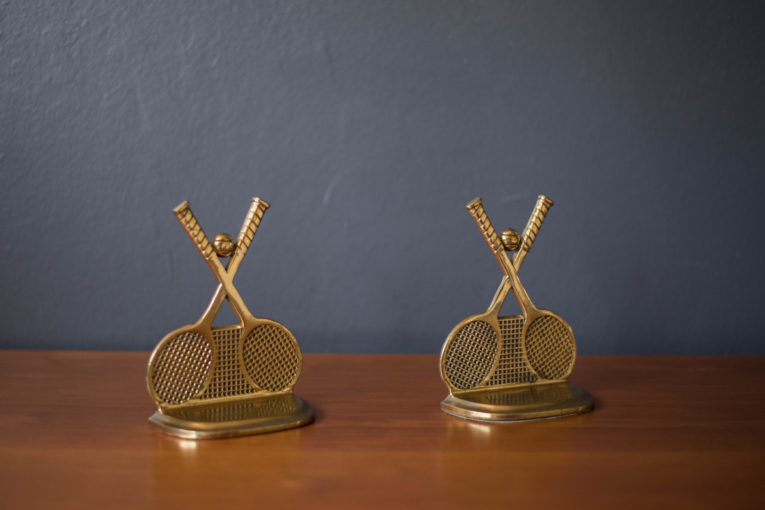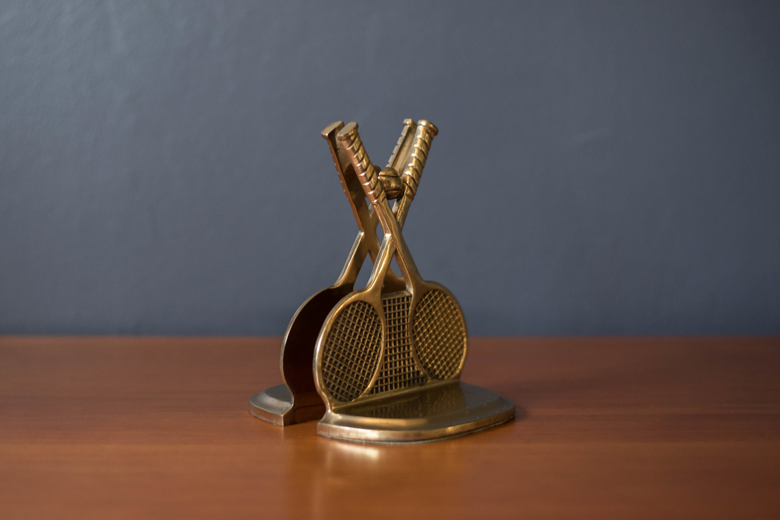 Pair of vintage Tennis Racquet Club bookends in brass circa 1970’s. This heavy weighted set will keep your books organized and ready for display. Labeled CTC South San Francisco.