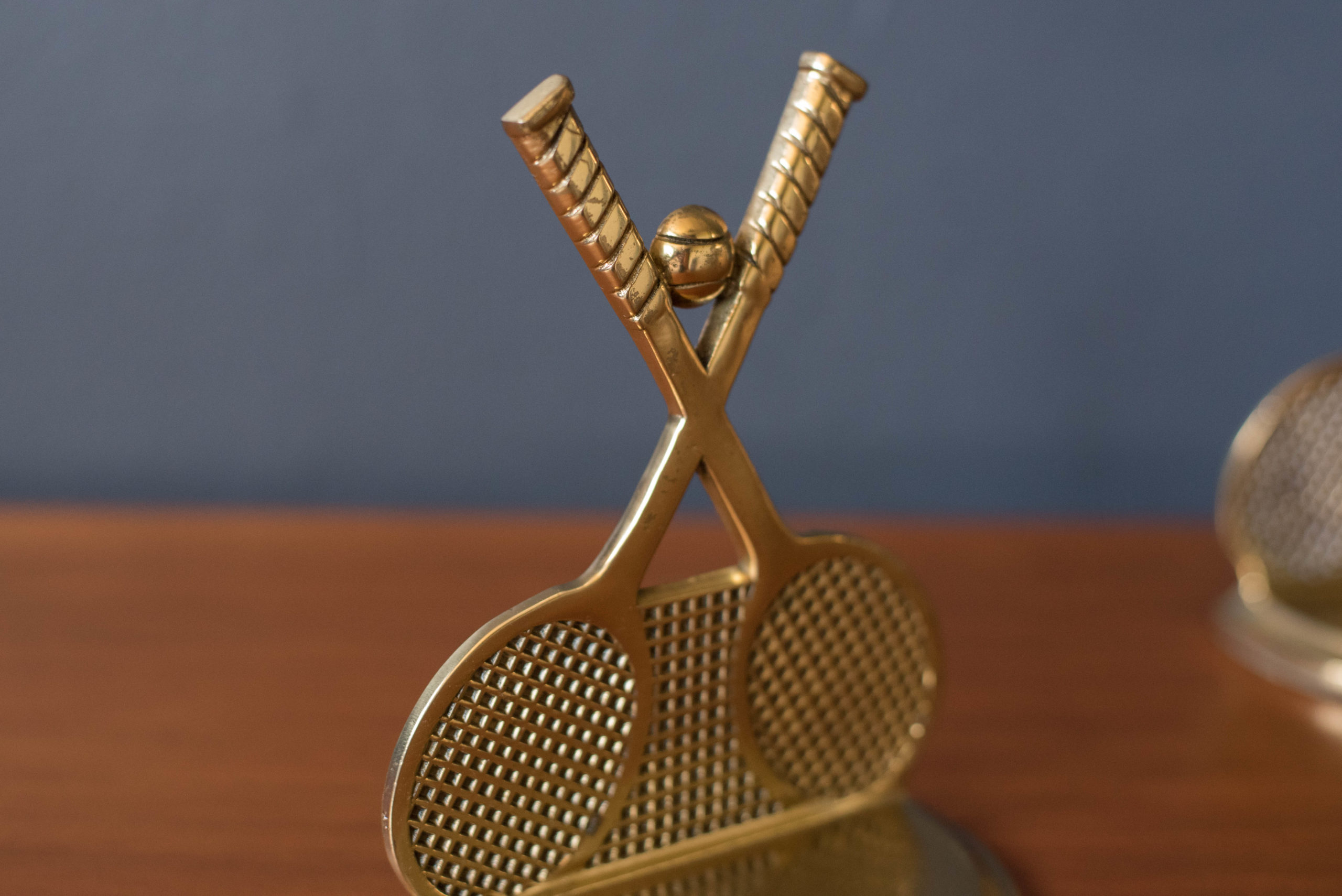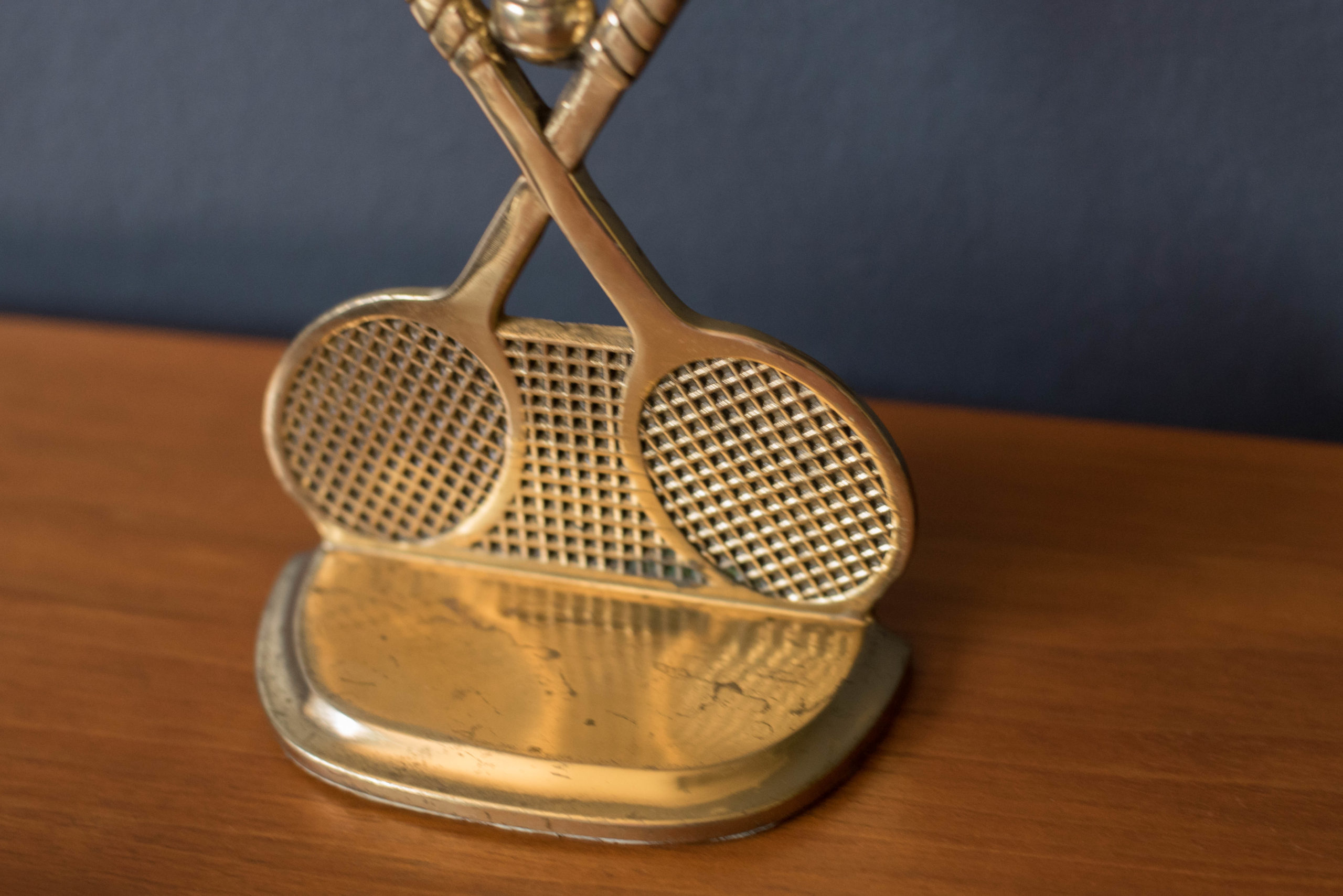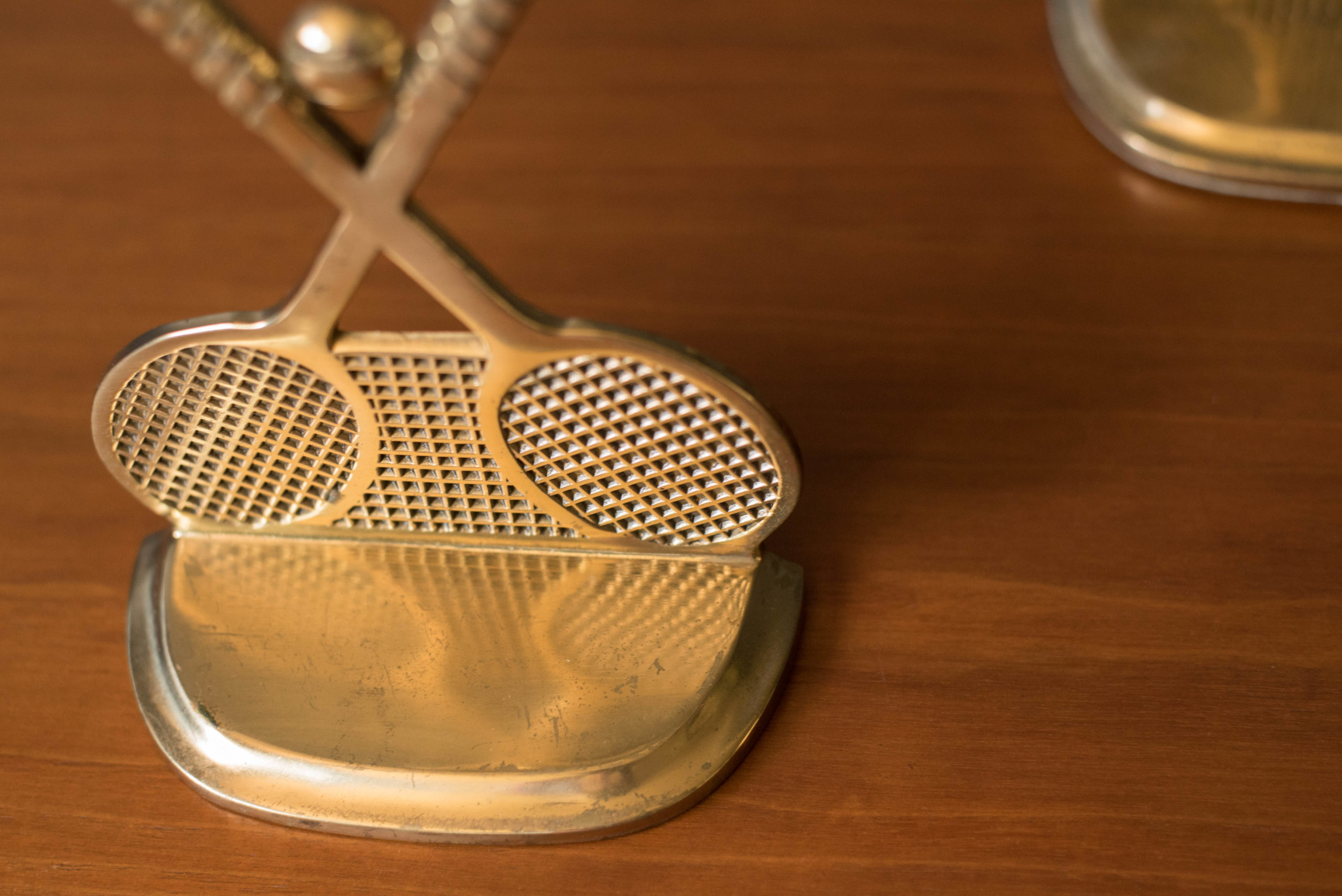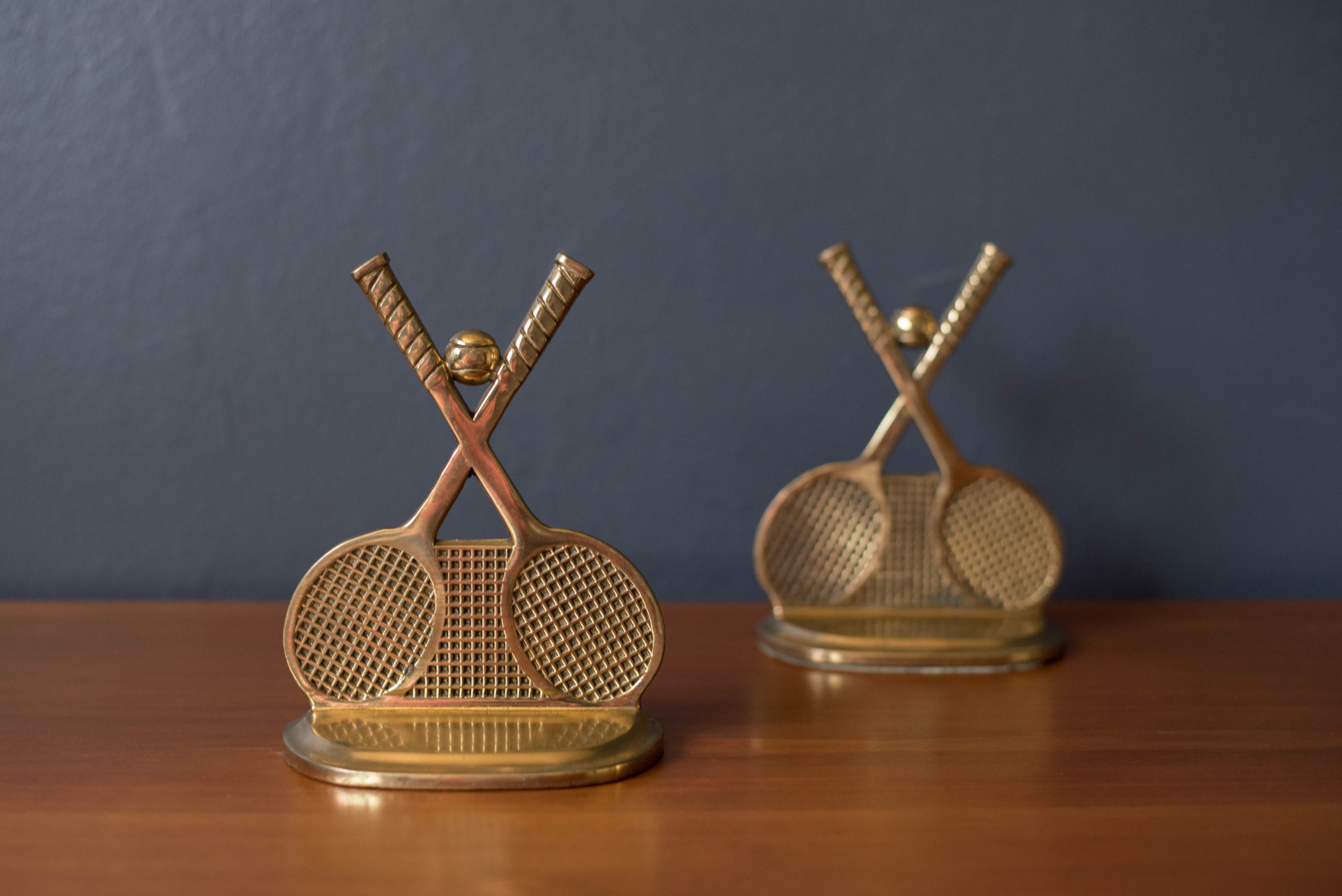 Pair of vintage Tennis Racquet Club bookends in brass circa 1970’s. This heavy weighted set will keep your books organized and ready for display. Labeled CTC South San Francisco.