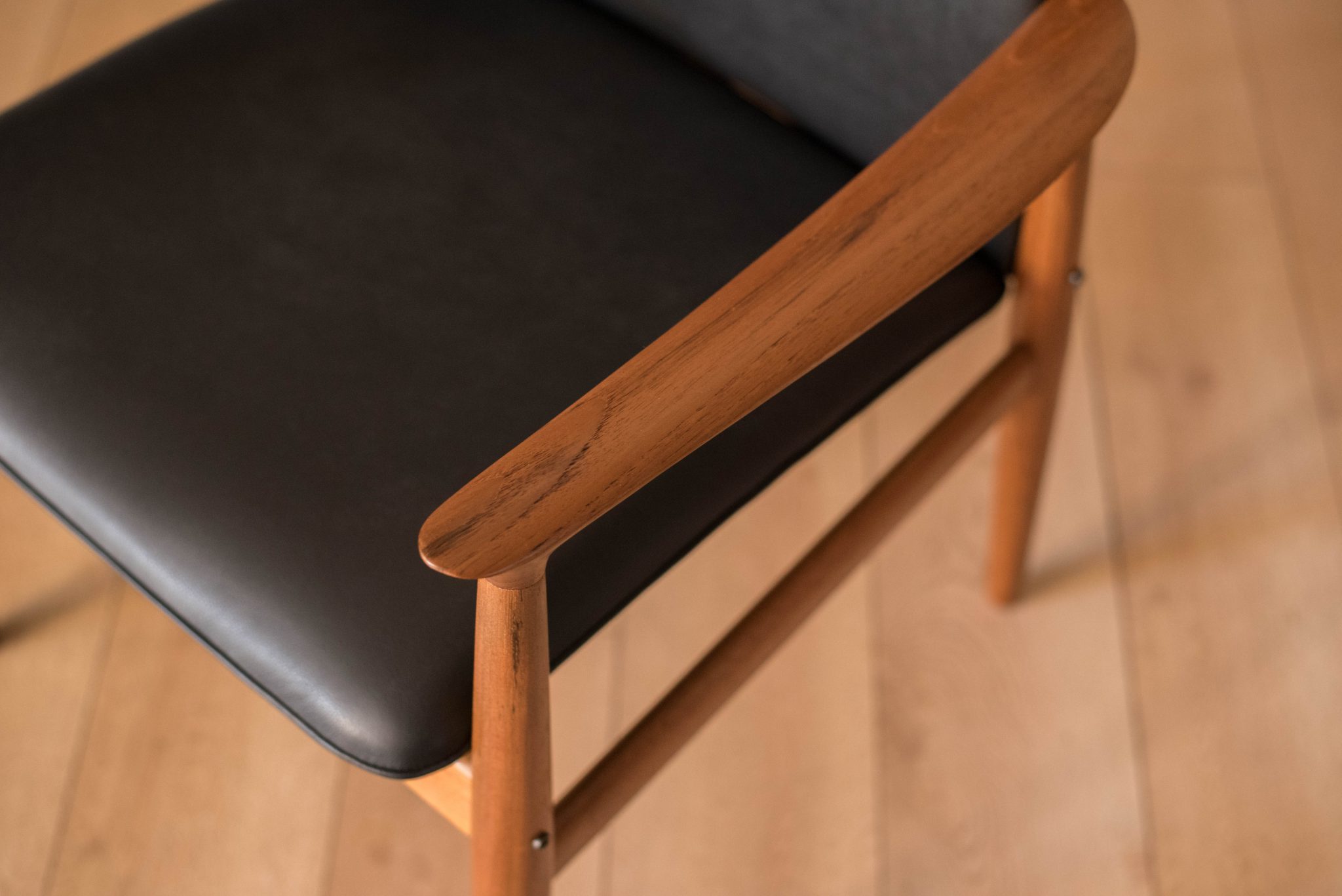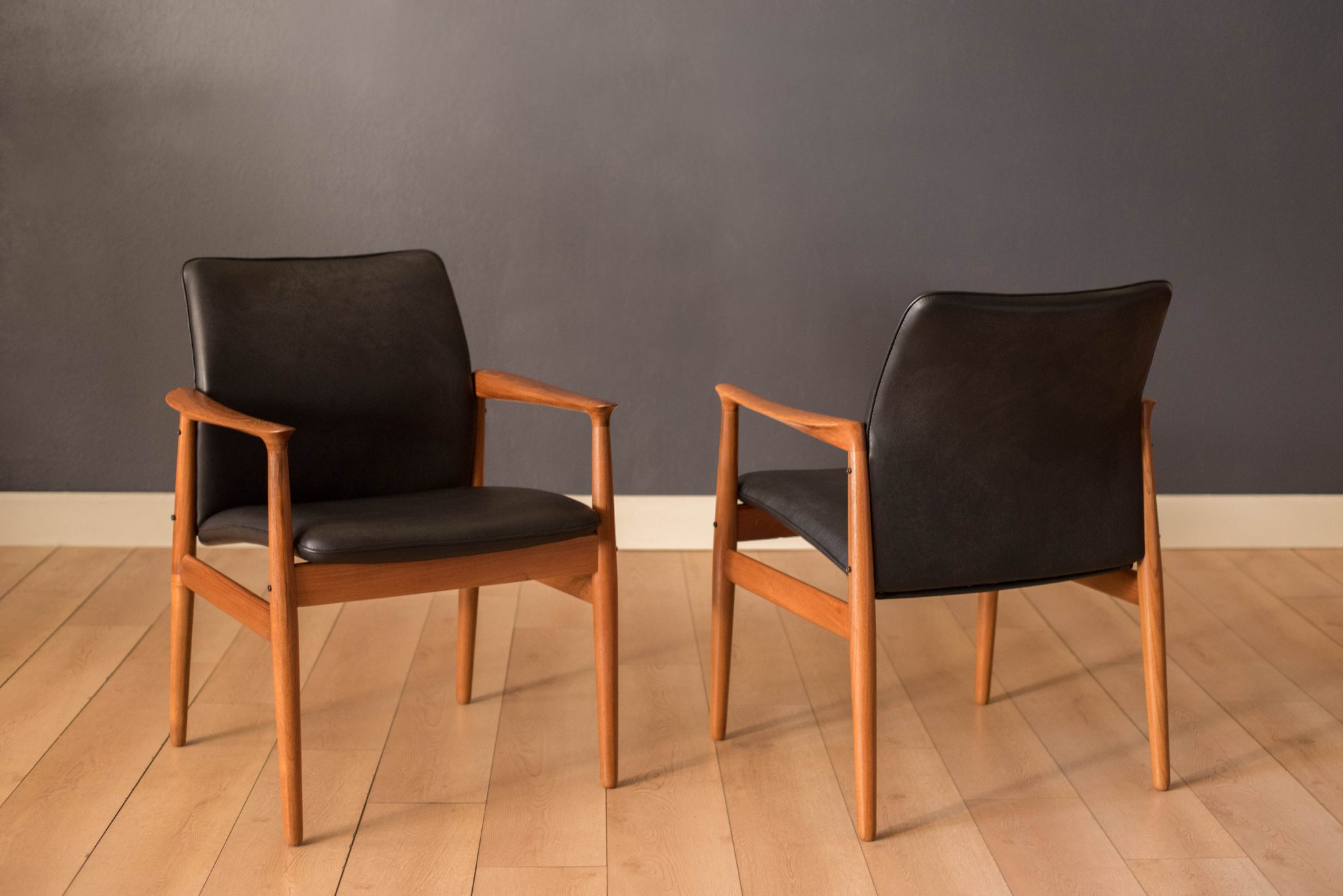 Pair of Vintage Danish Teak and Leather Armchairs by Grete Jalk for Glostrup