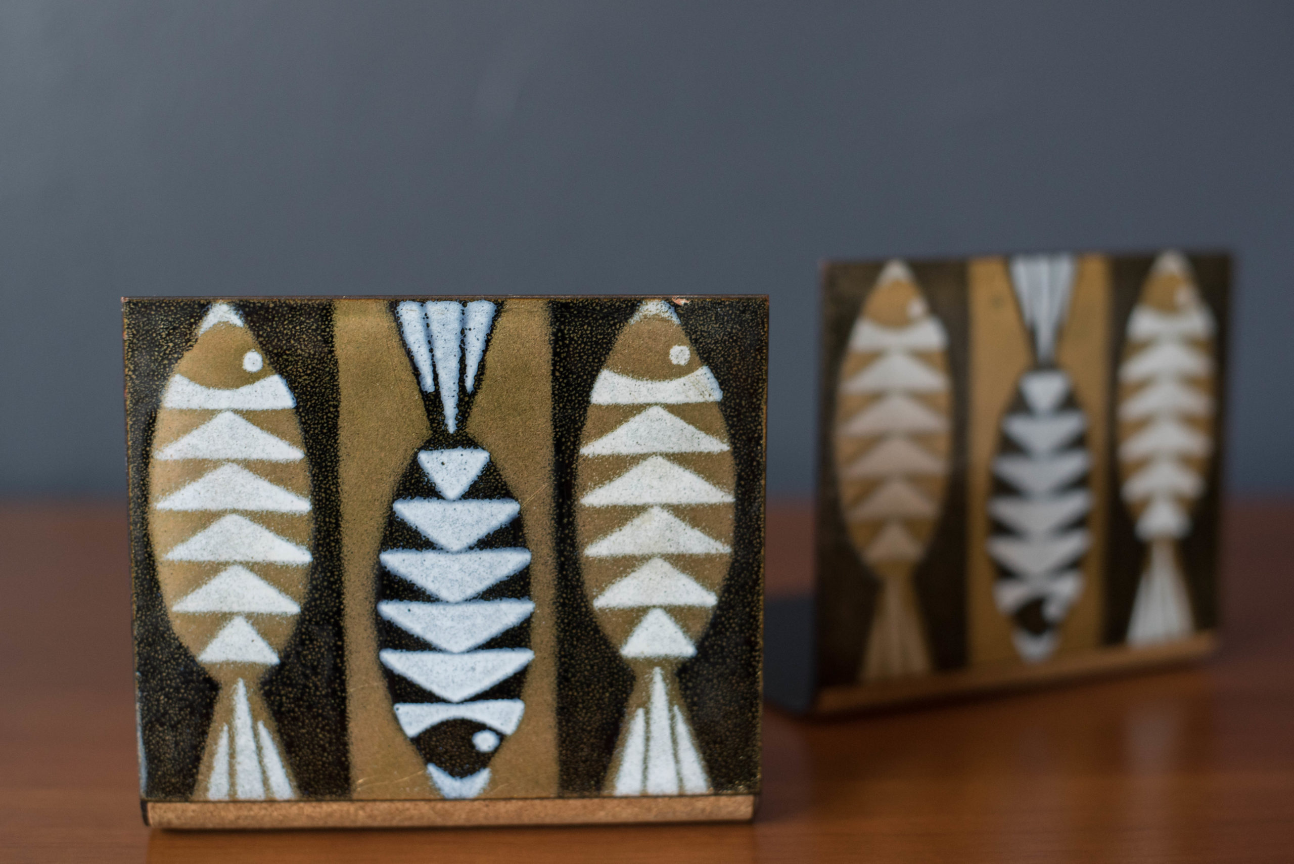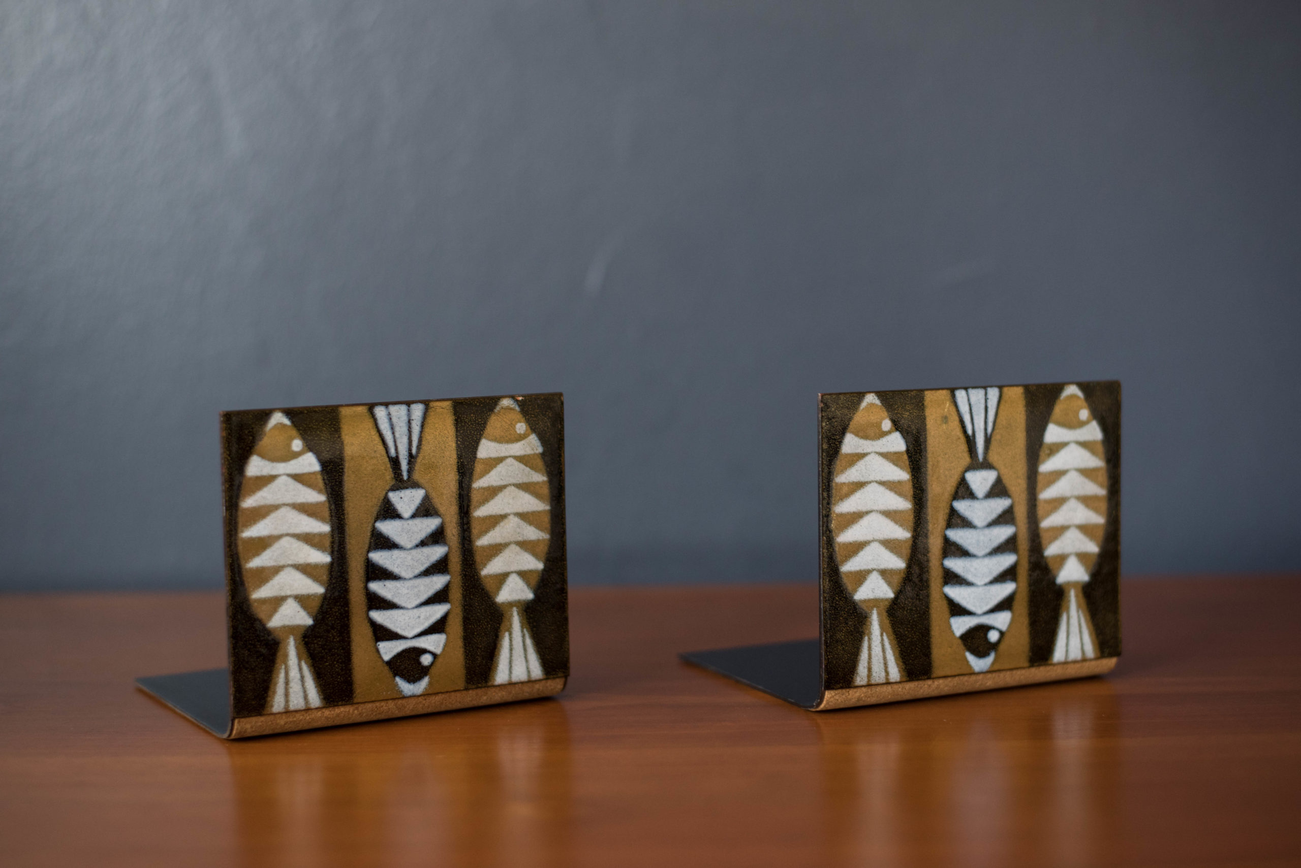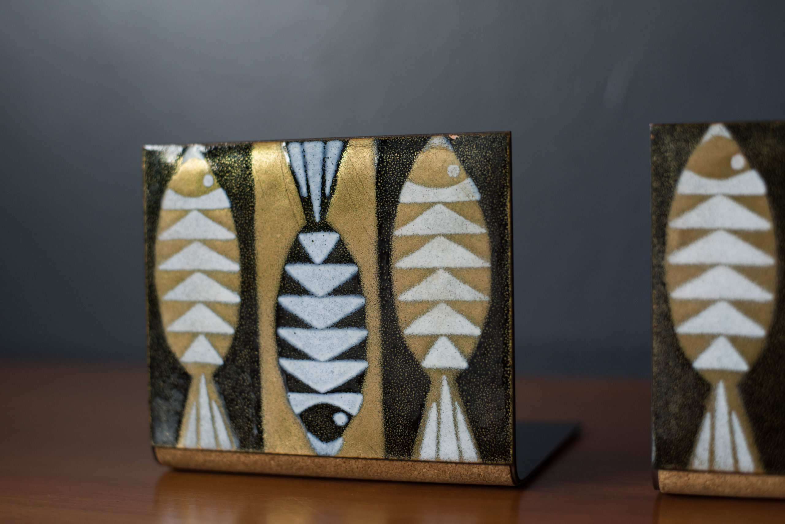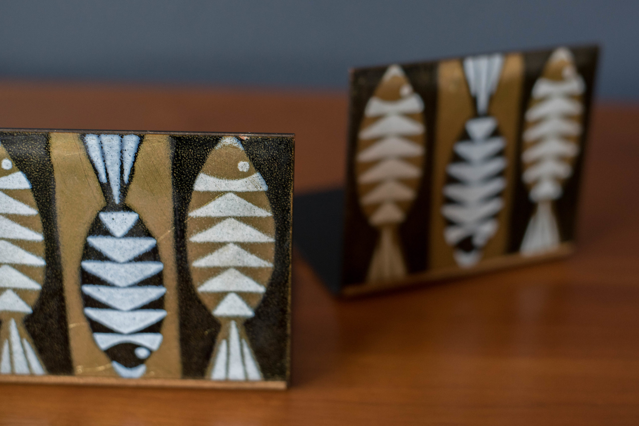 Pair of Vintage Textured Enamel Fish Bookends by Robert Wuersch