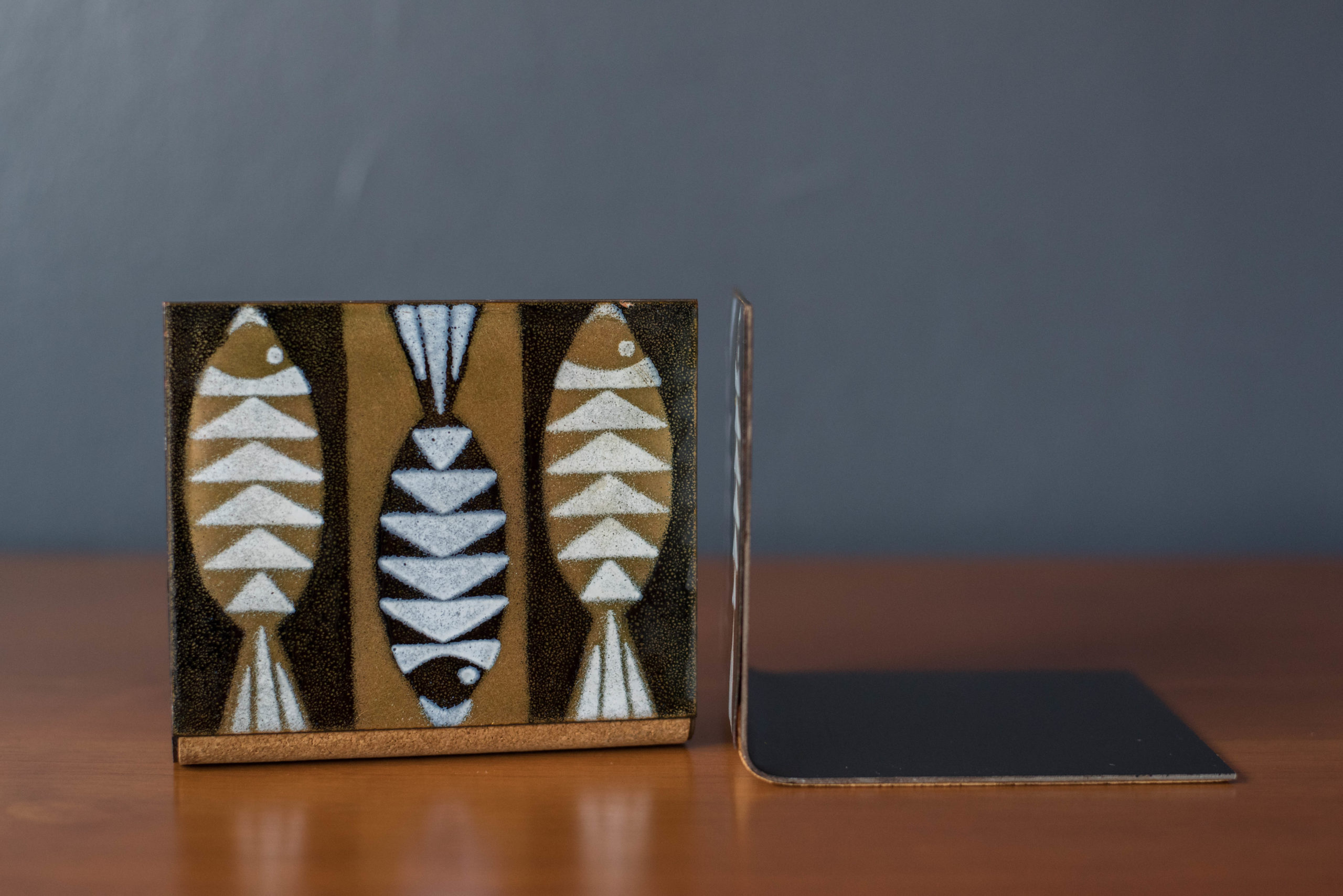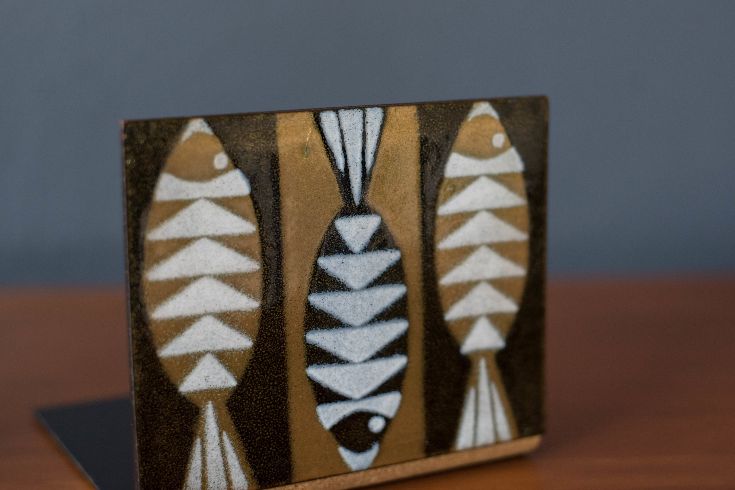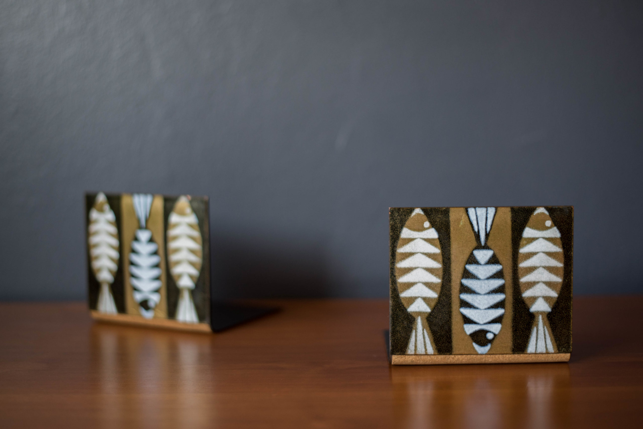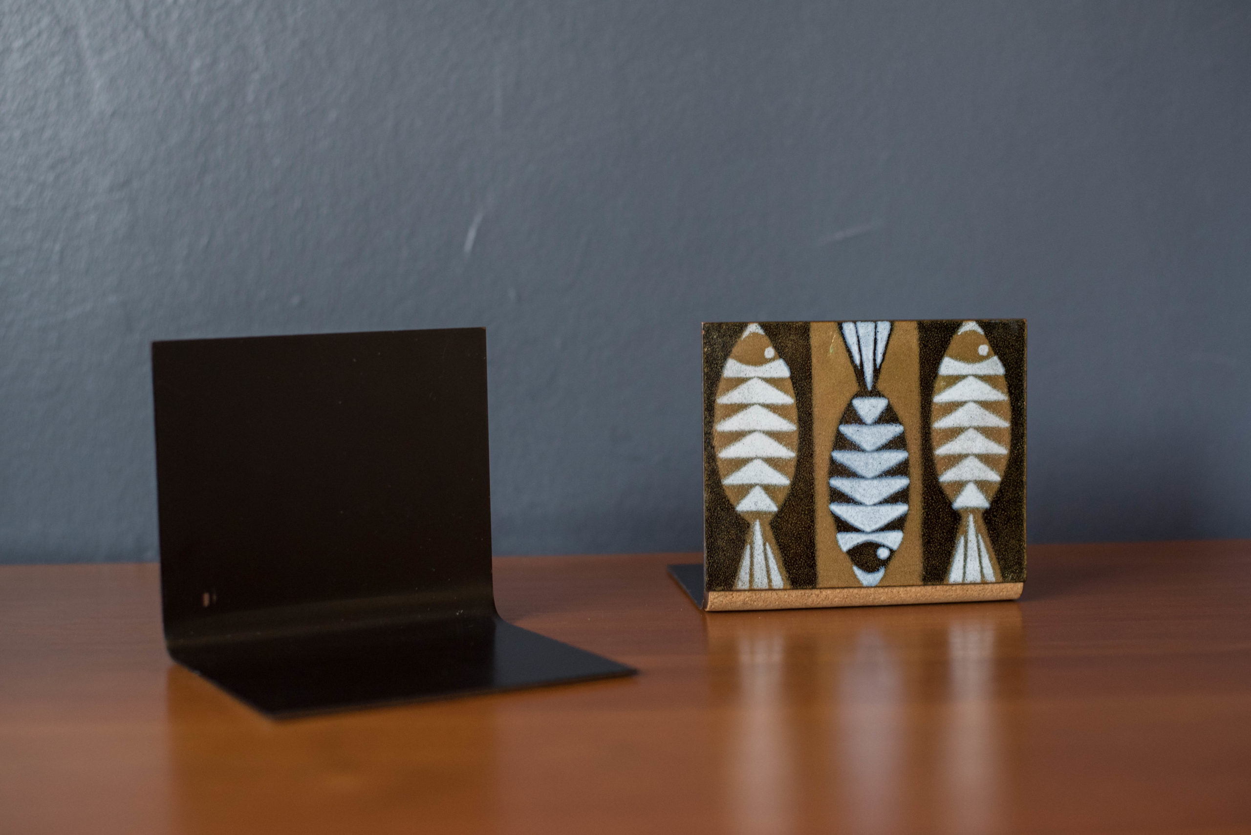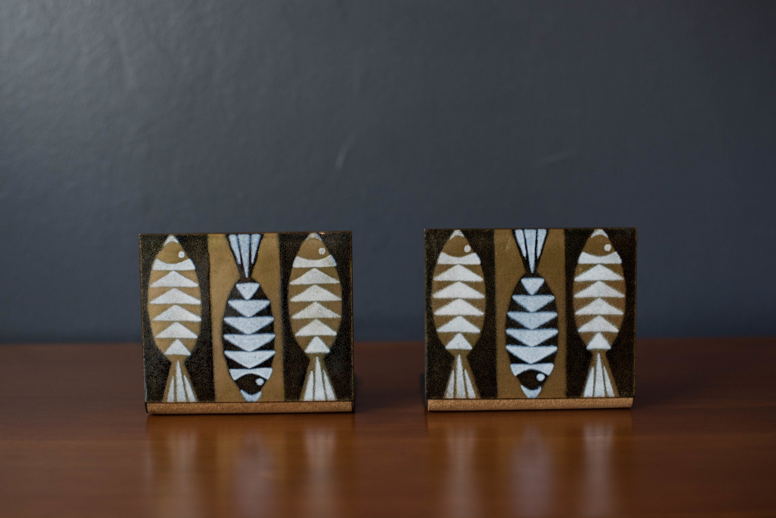 Pair of Vintage Textured Enamel Fish Bookends by Robert Wuersch