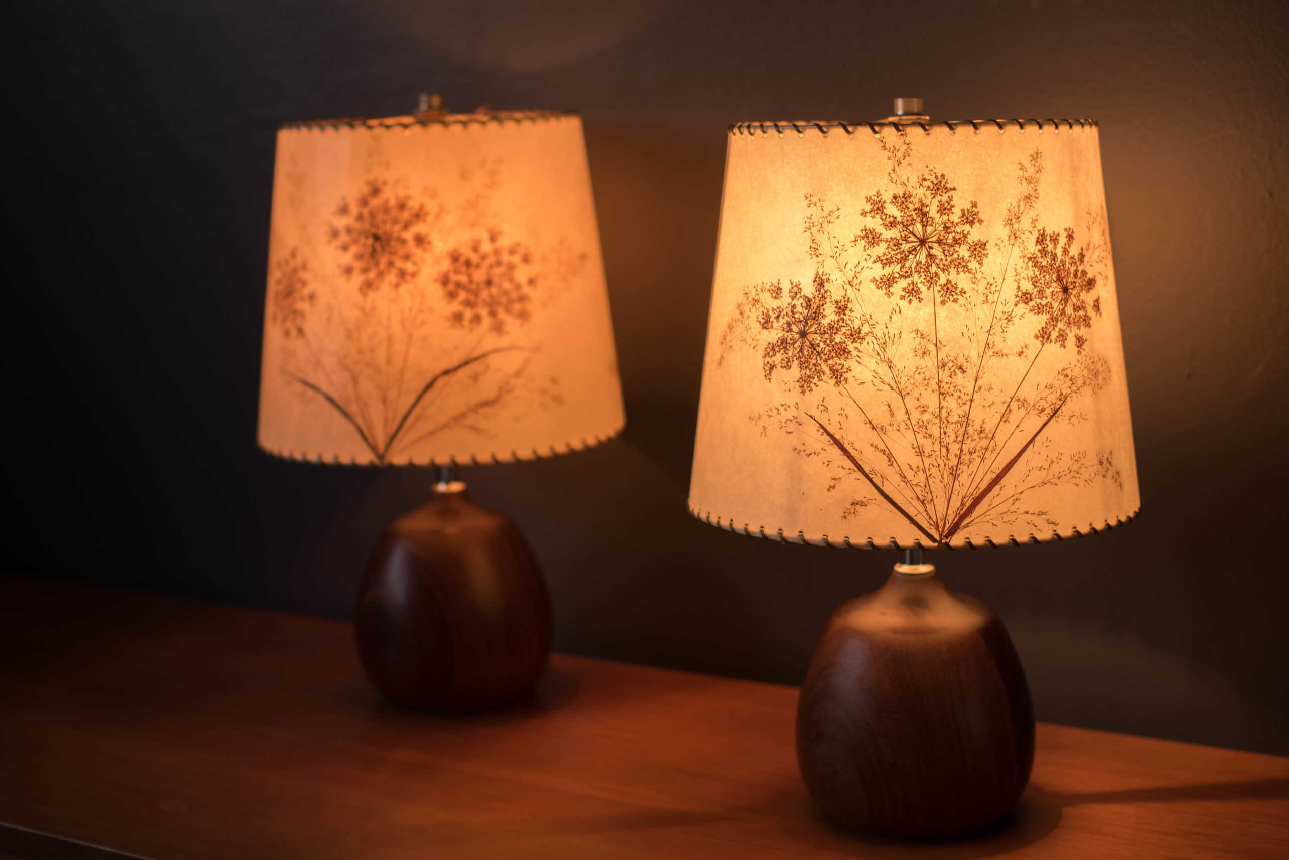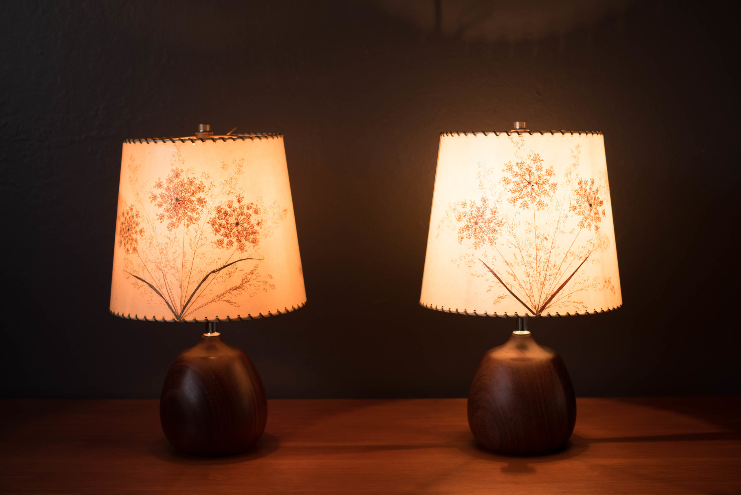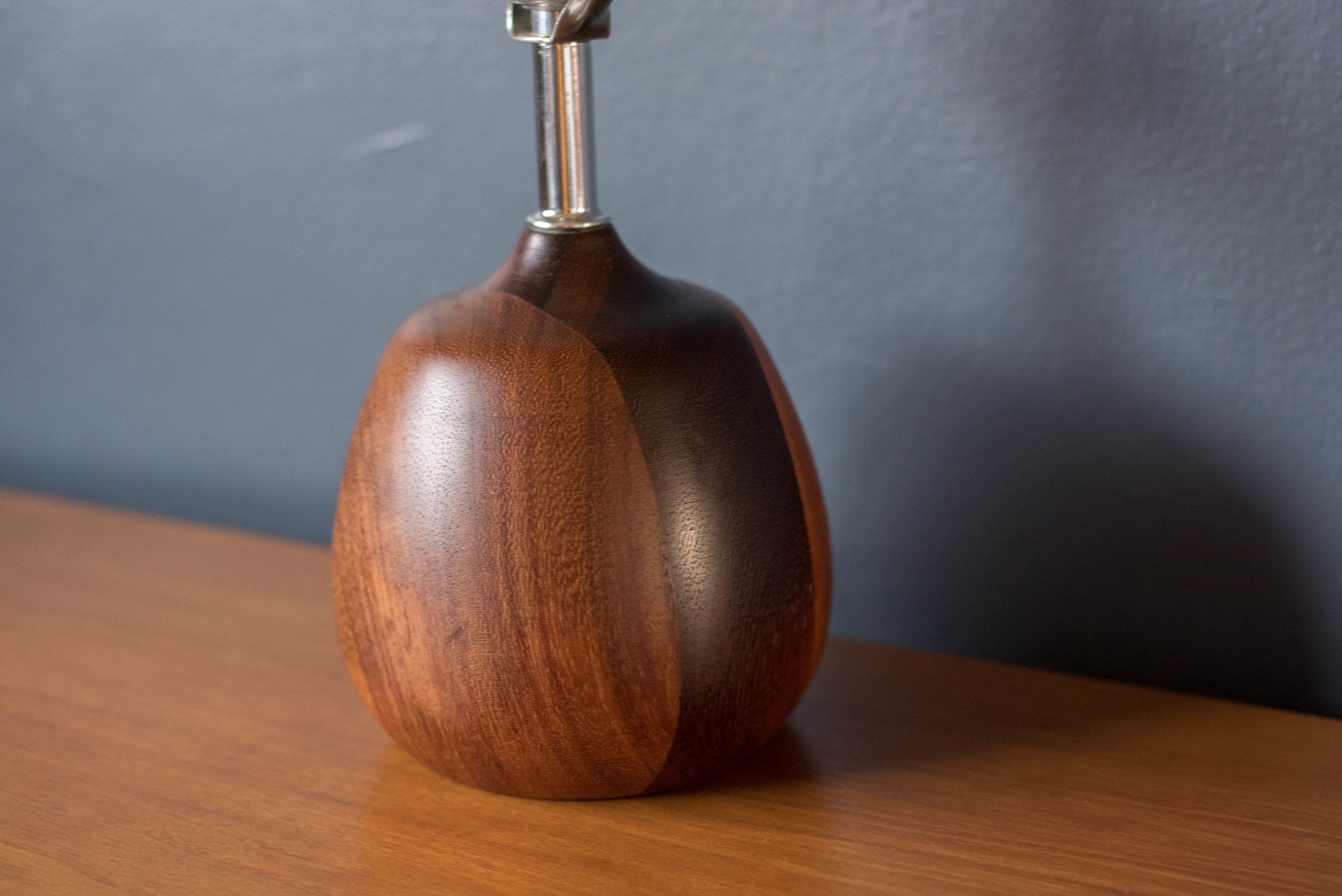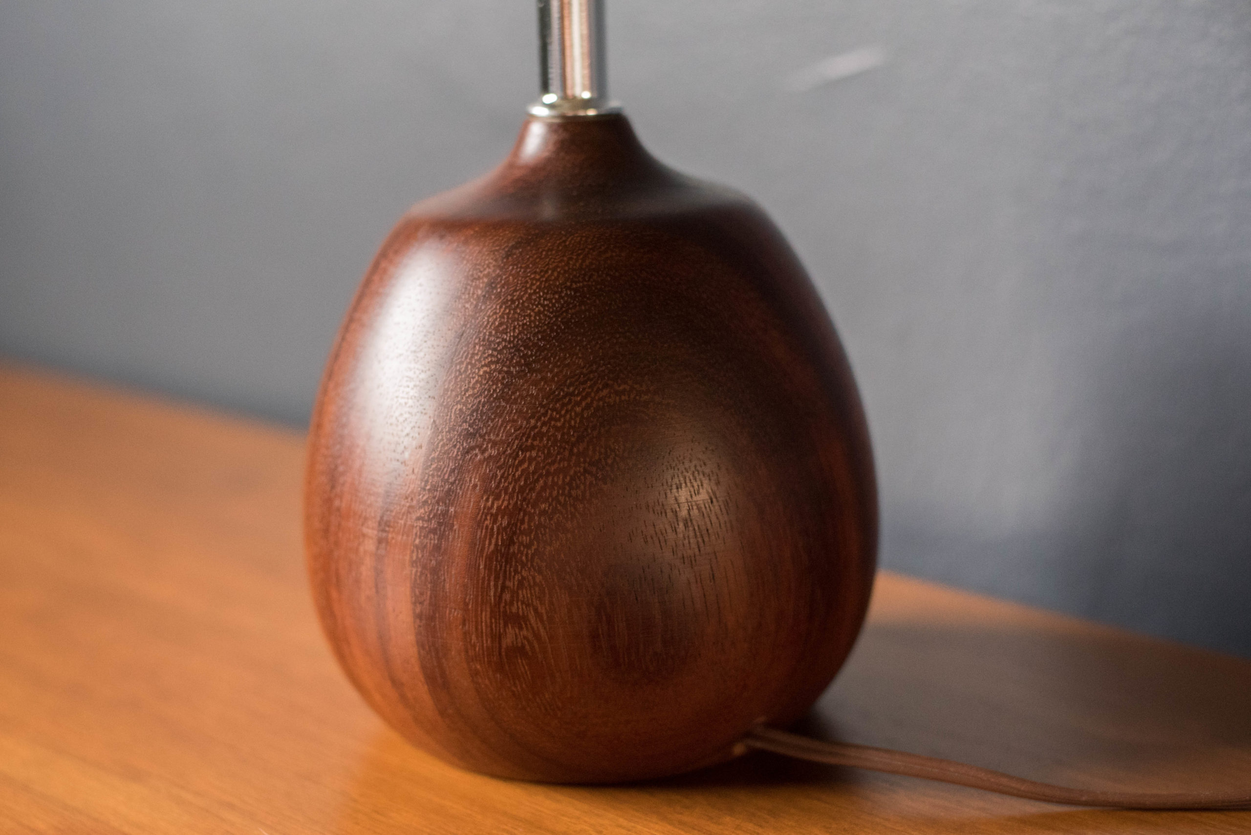 Sculptural Pair of Scandinavian Mid-Century Modern Round Teak Wood Table Lamps