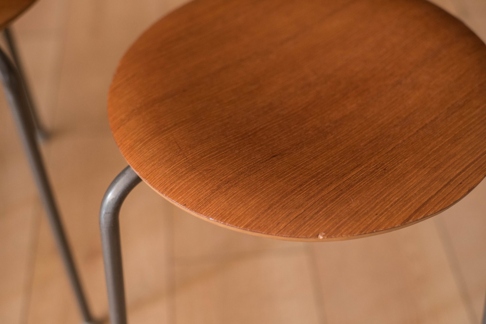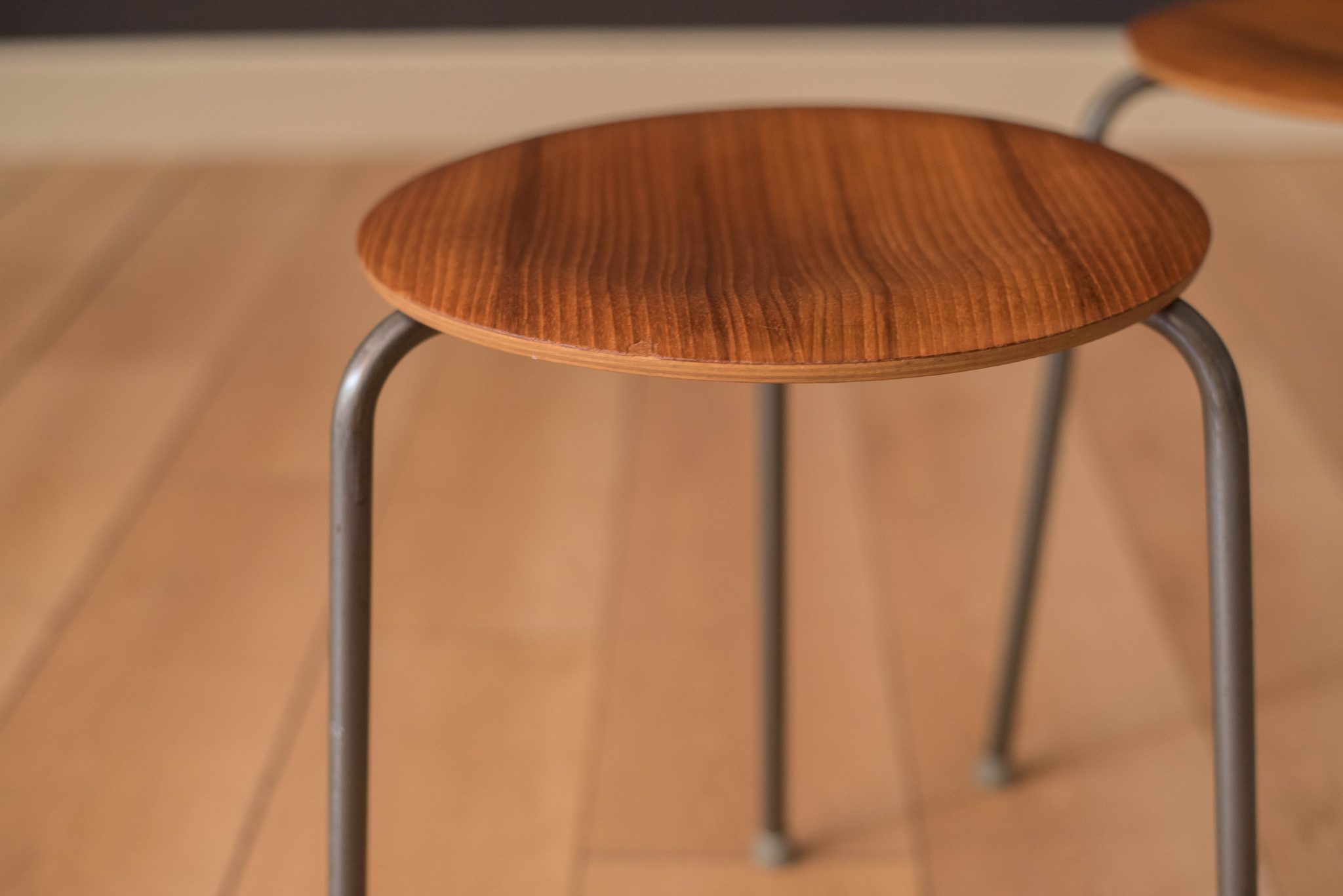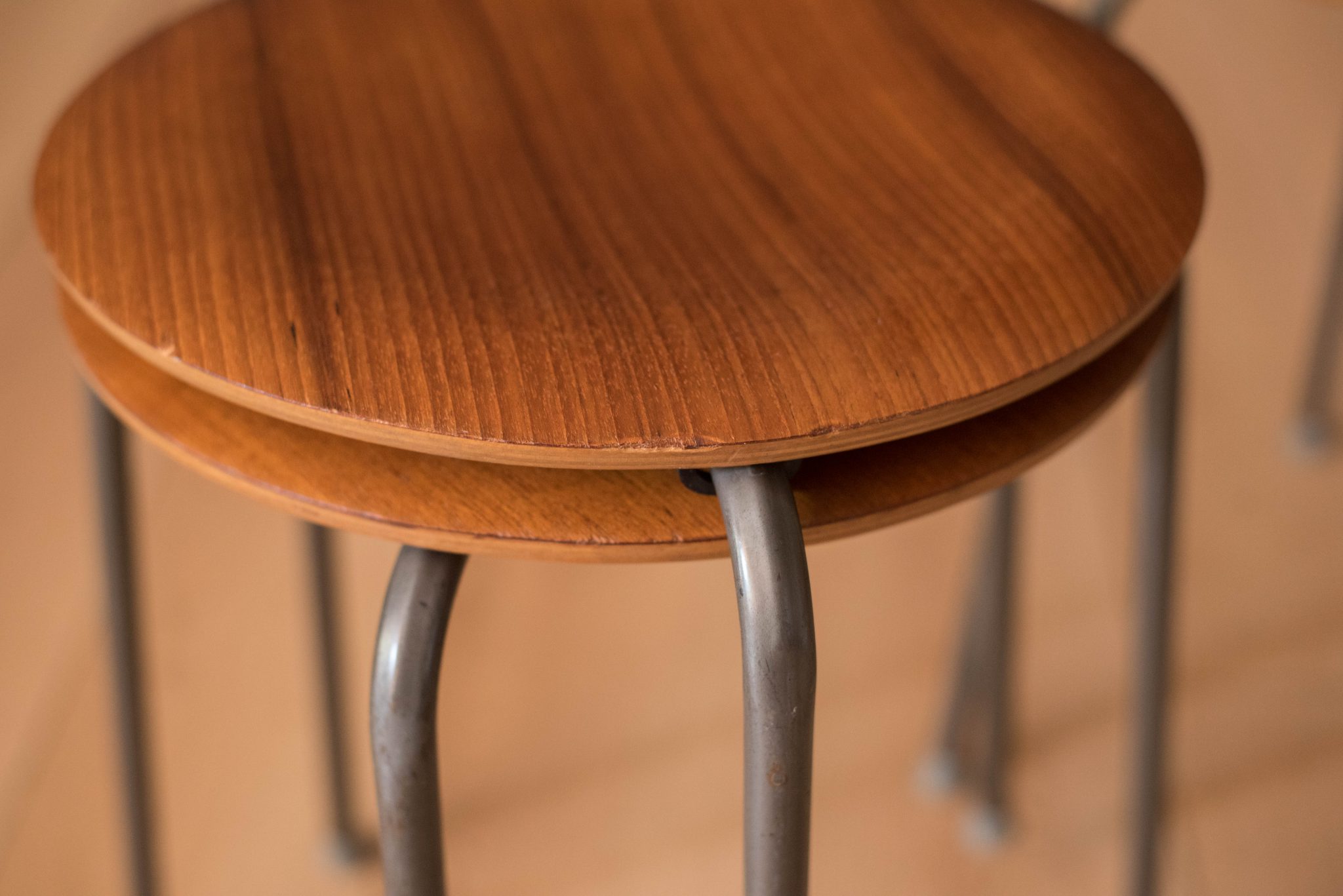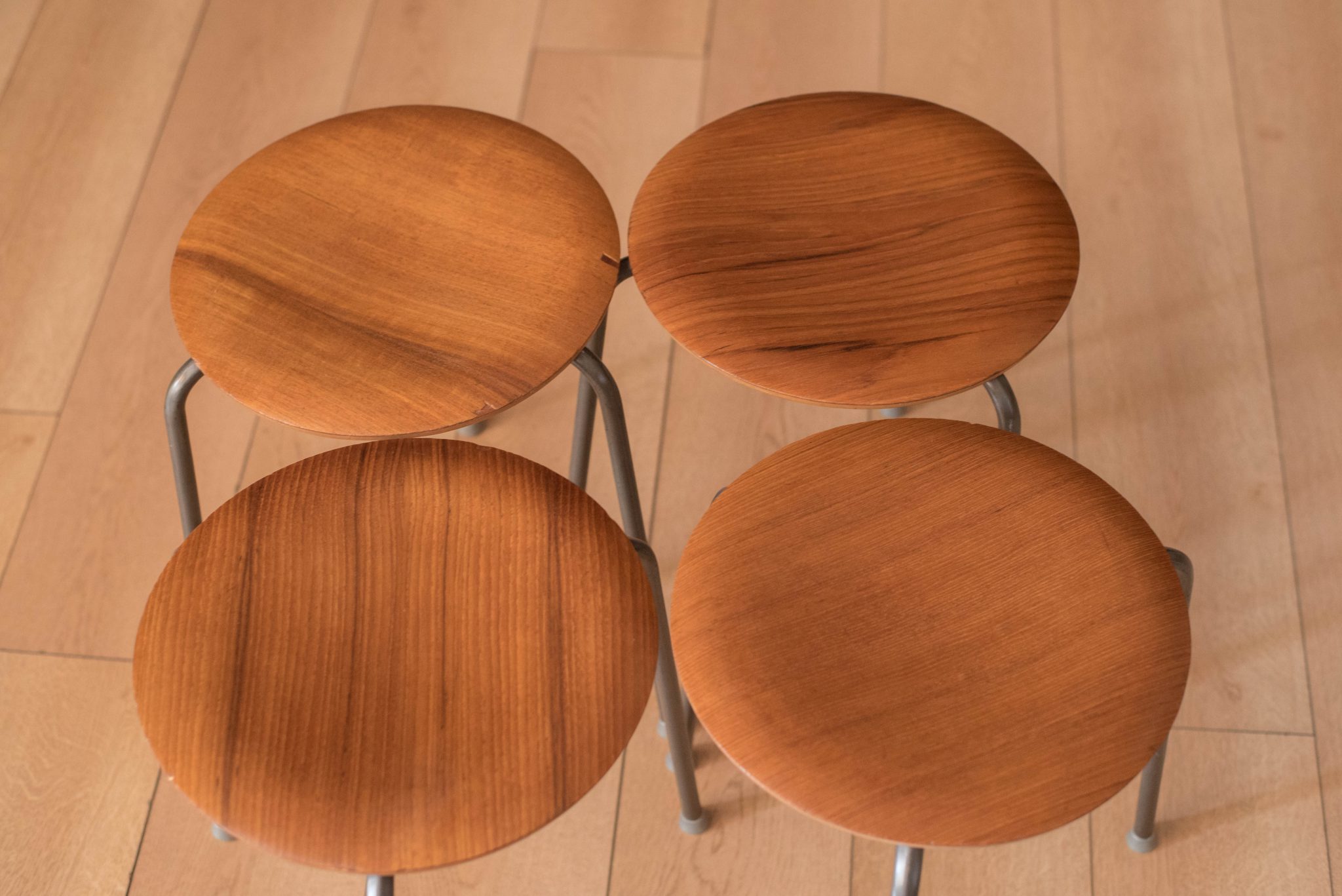 Set of Four Vintage Danish Teak Round Stacking Stools