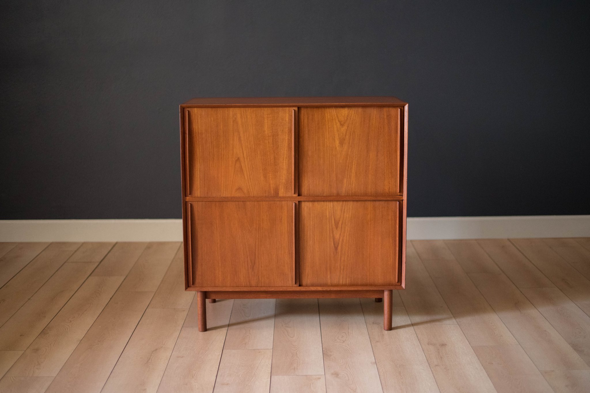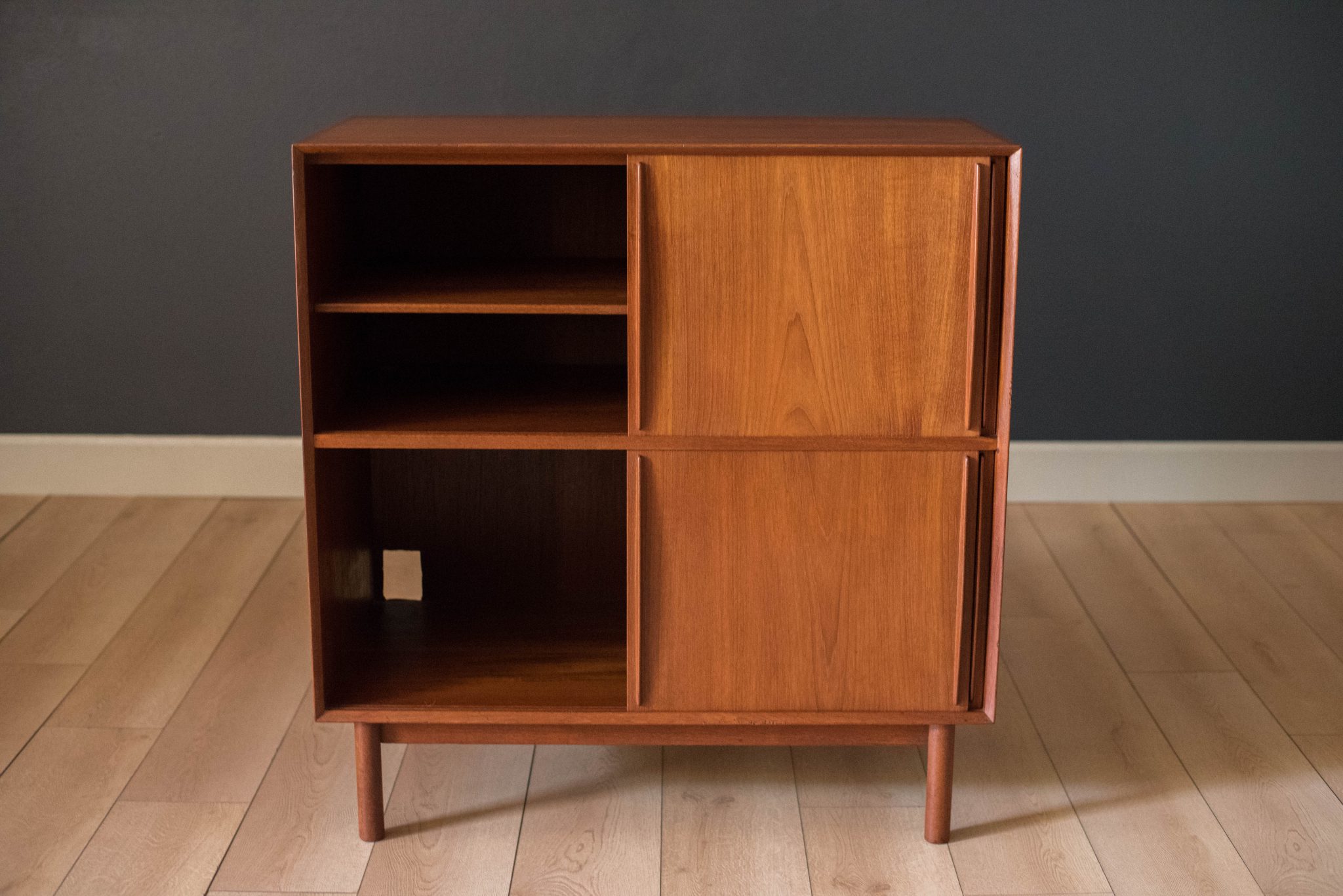 Solid Teak Danish Sliding Door Cabinet by Peter Hvidt and Orla Molgaard-Nielsen