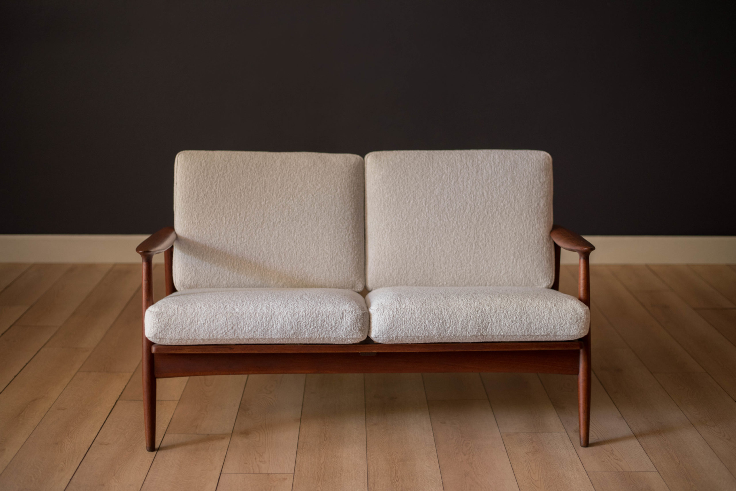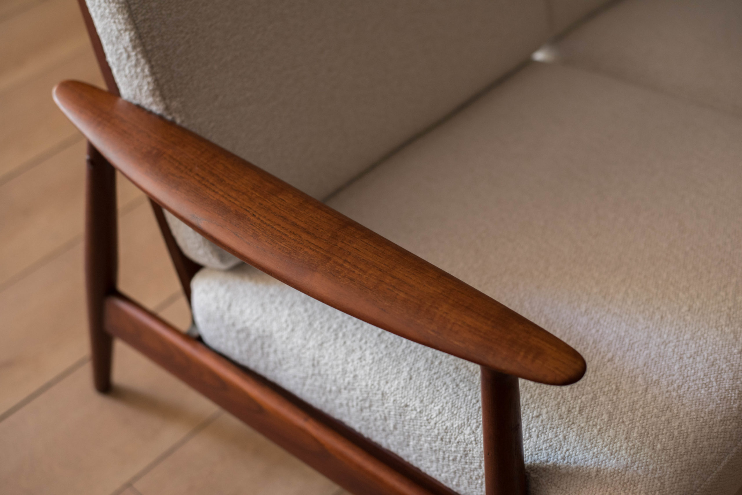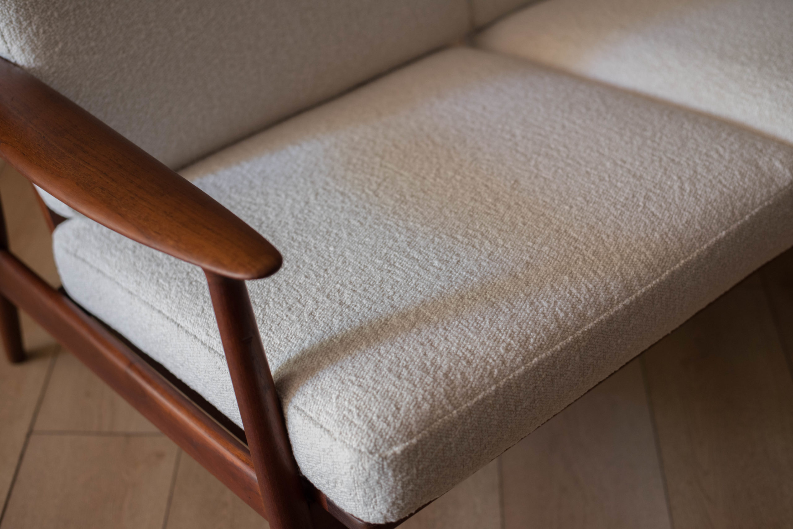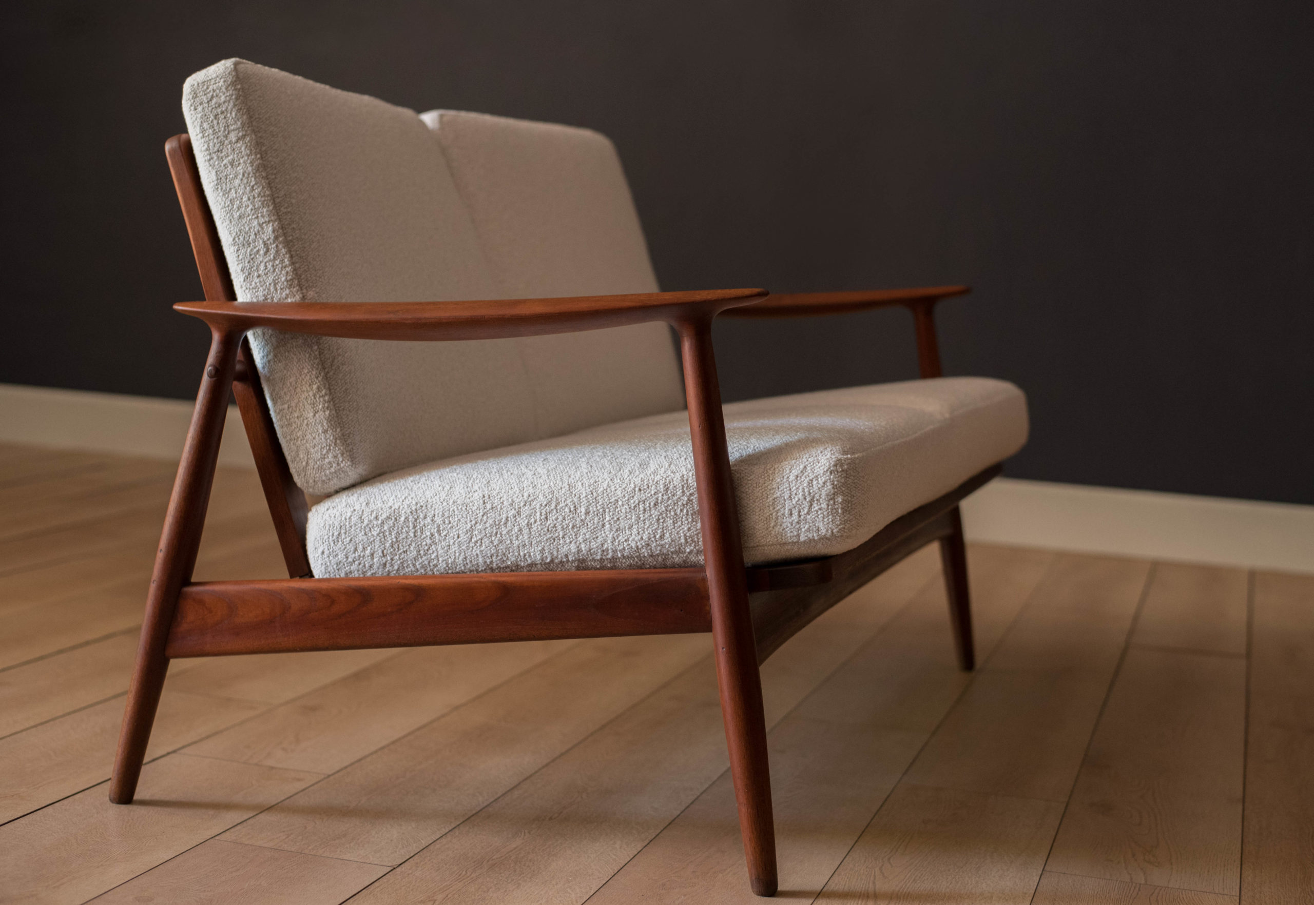 Teak Danish Modern Bouclé Settee Sofa by MM Moreddi