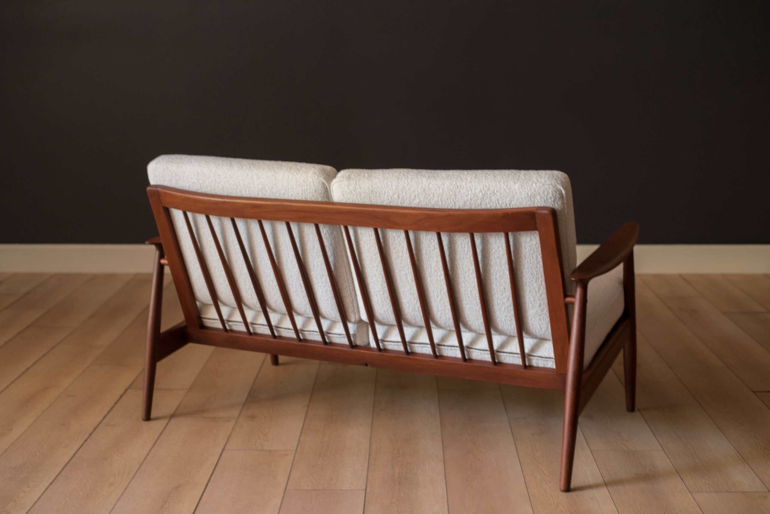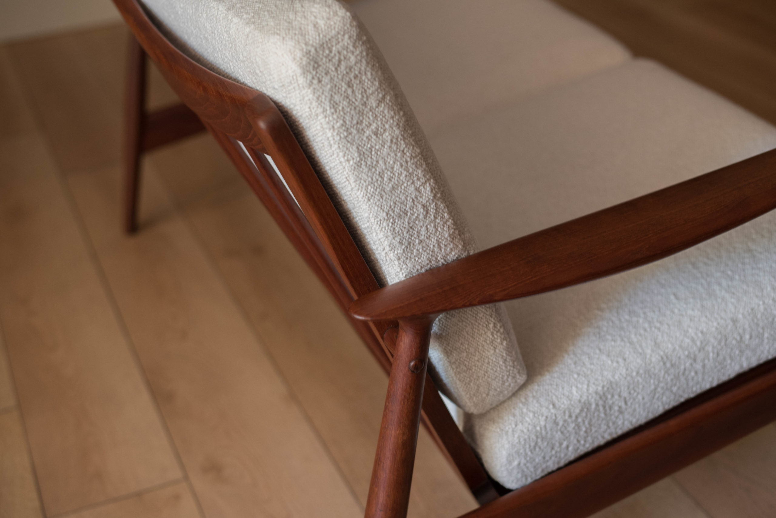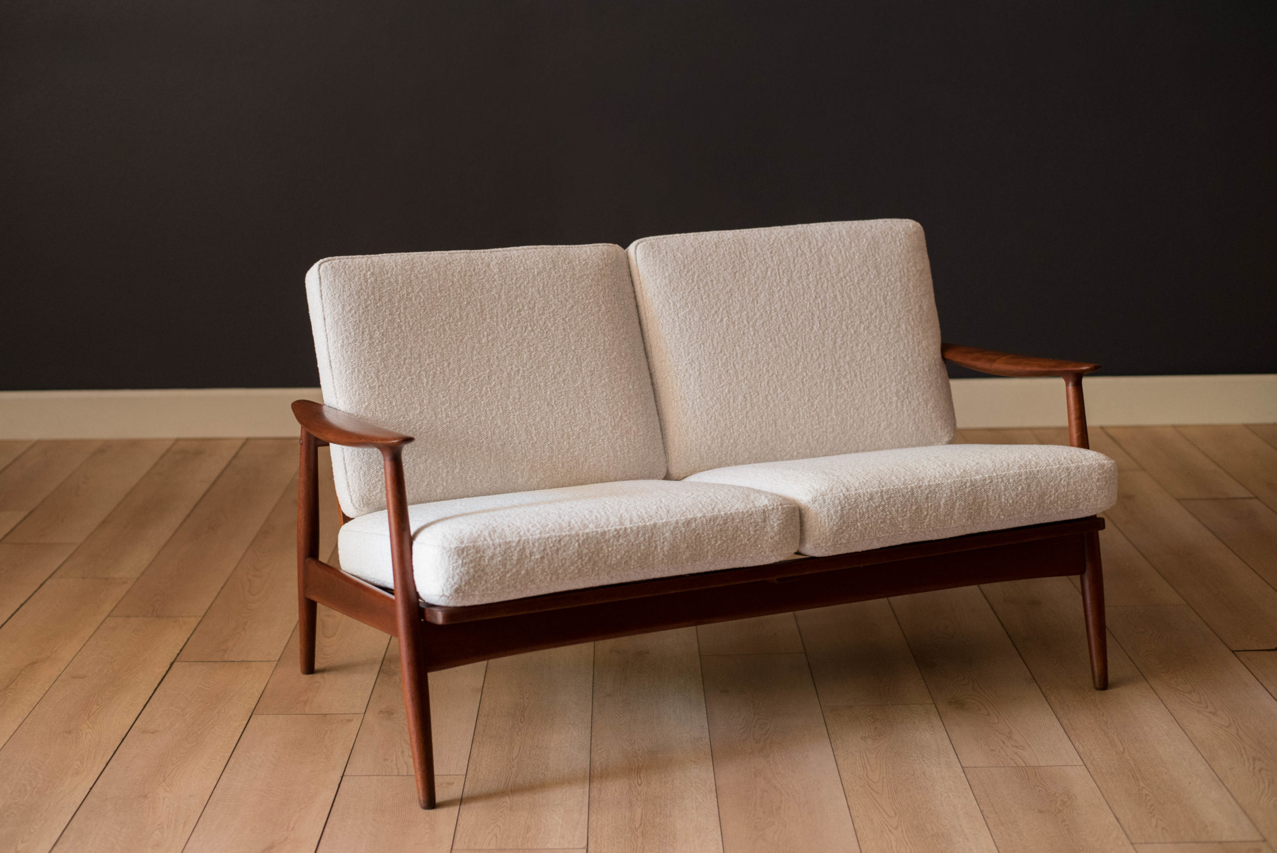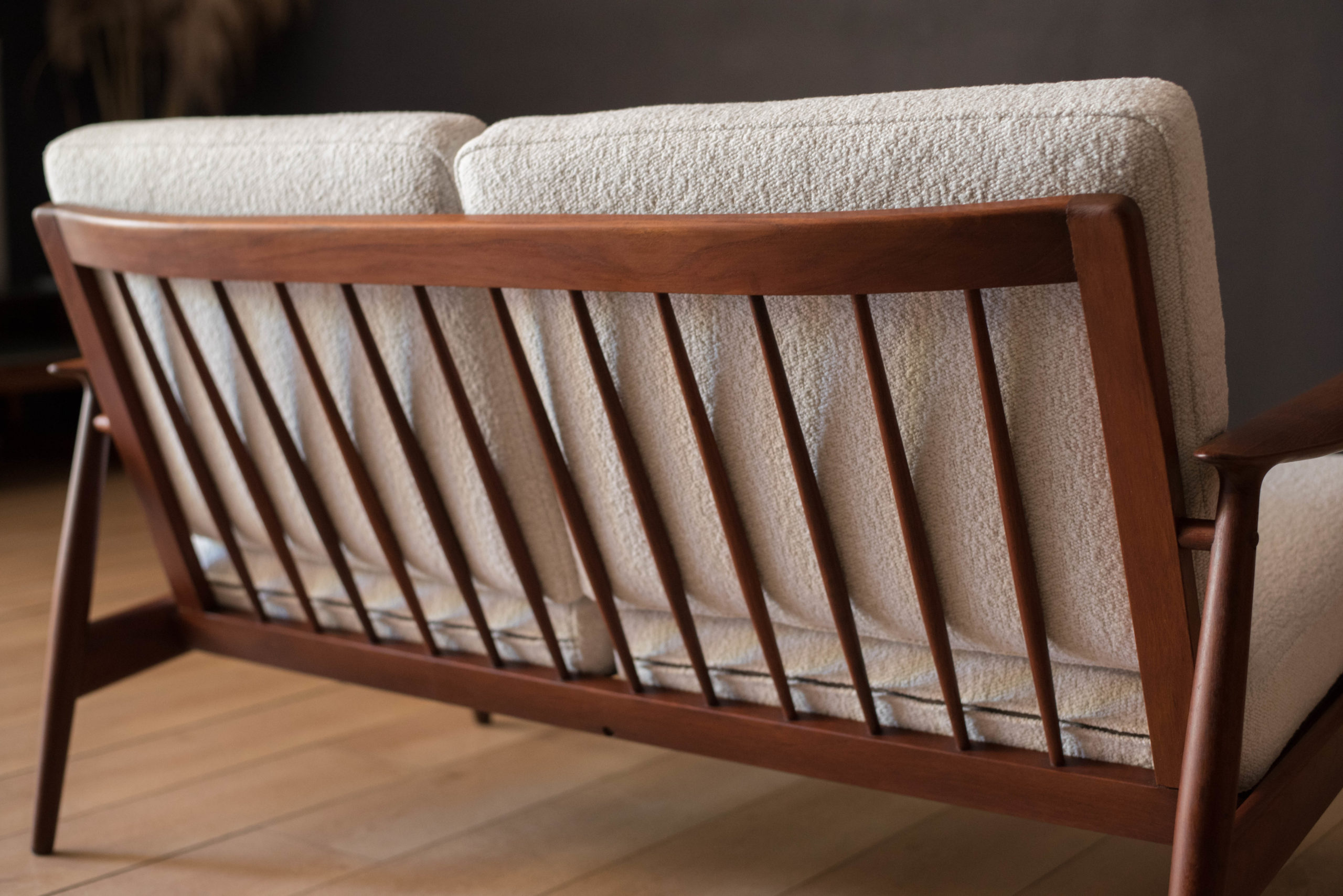 Teak Danish Modern Bouclé Settee Sofa by MM Moreddi