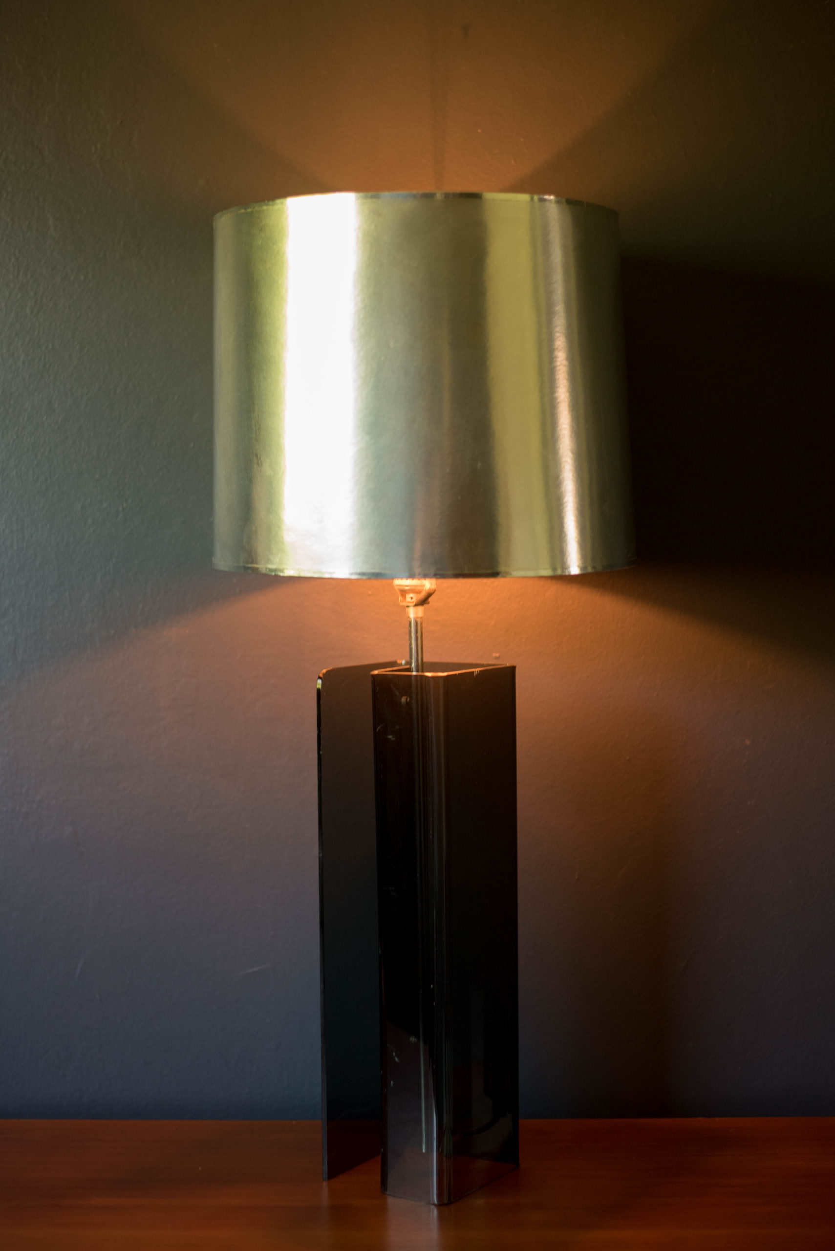 Vintage 1970s Space Age Smoked Lucite Table Lamp