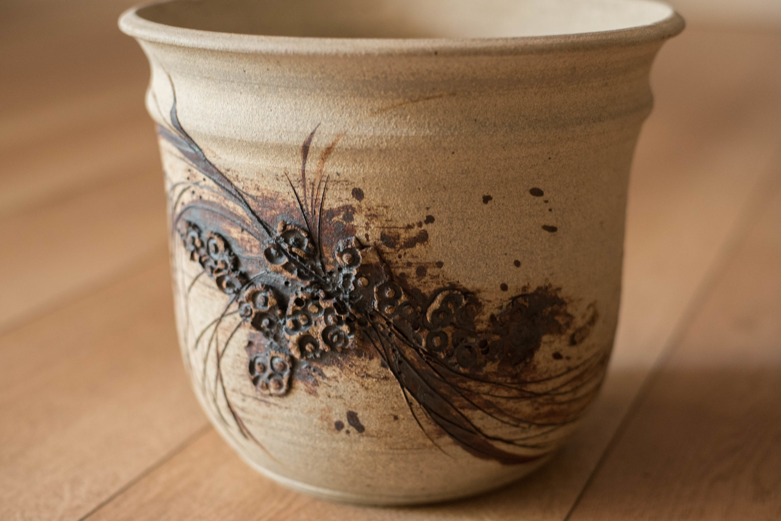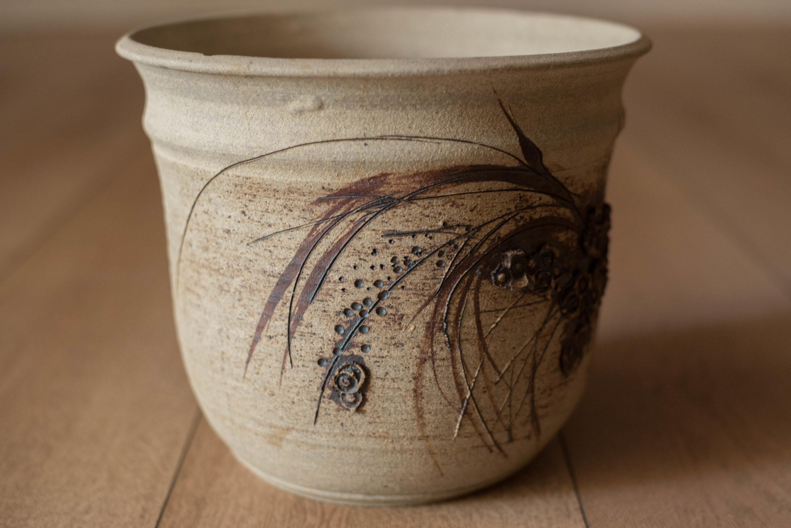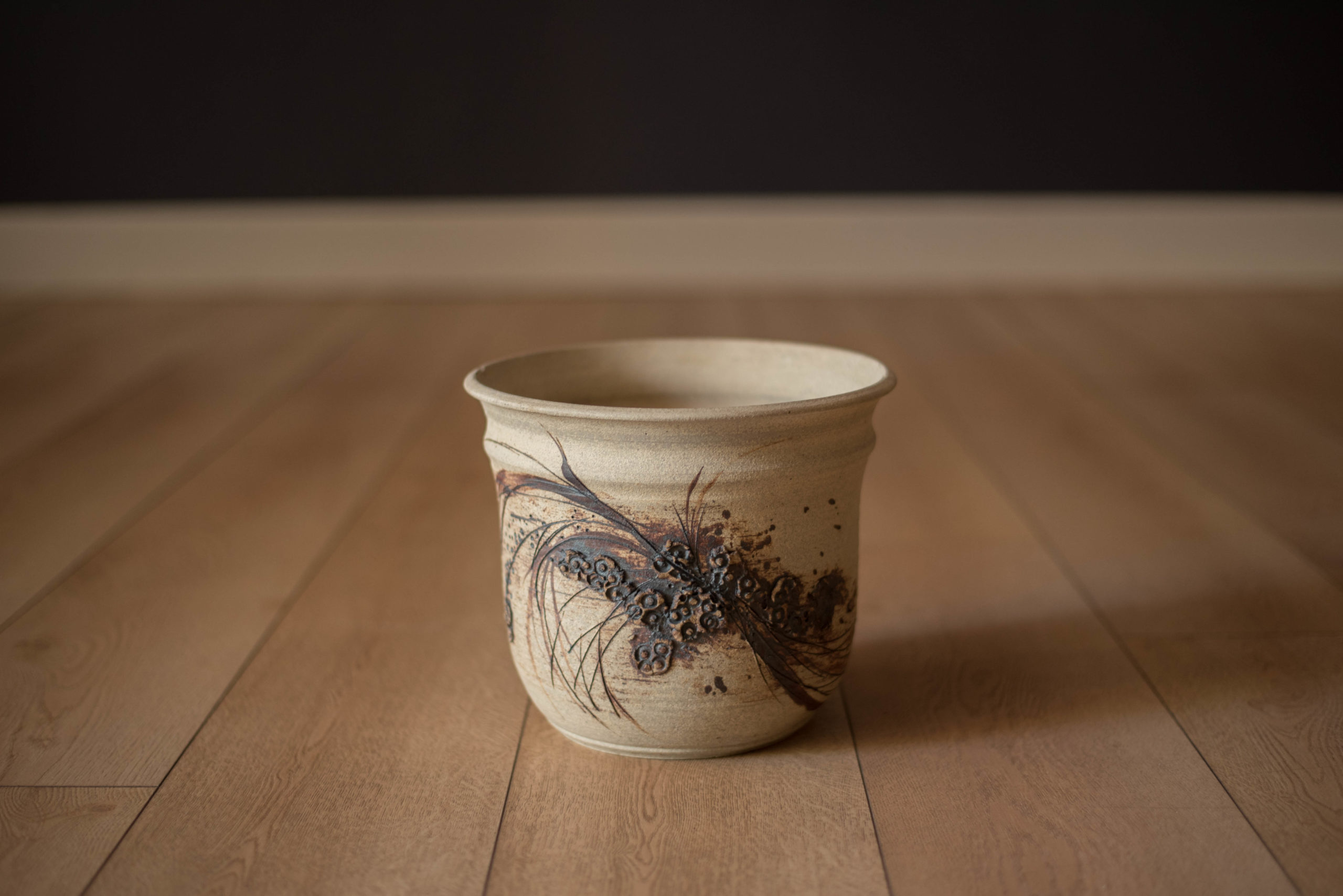 Vintage Abstract Relief Ceramic Stoneware Planter Pot