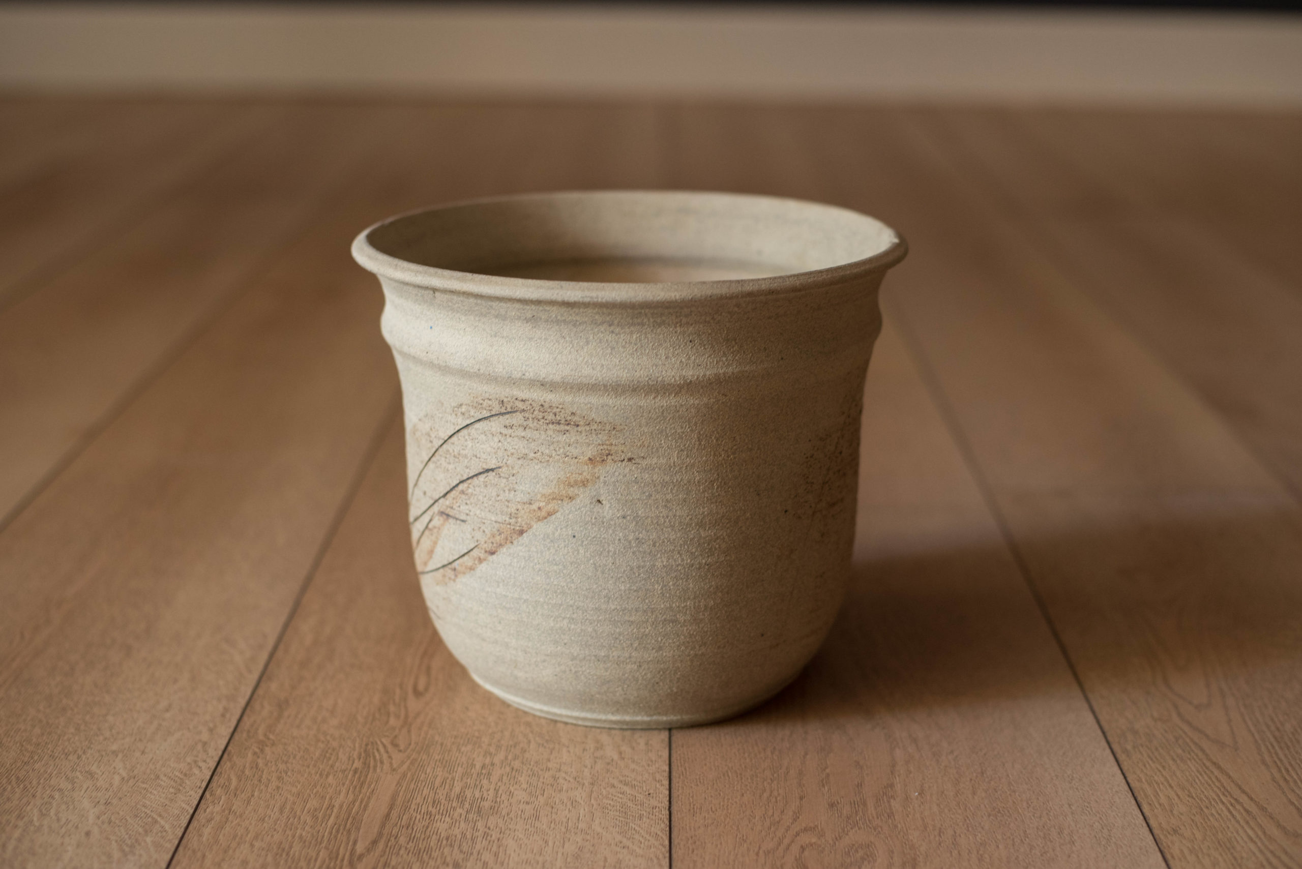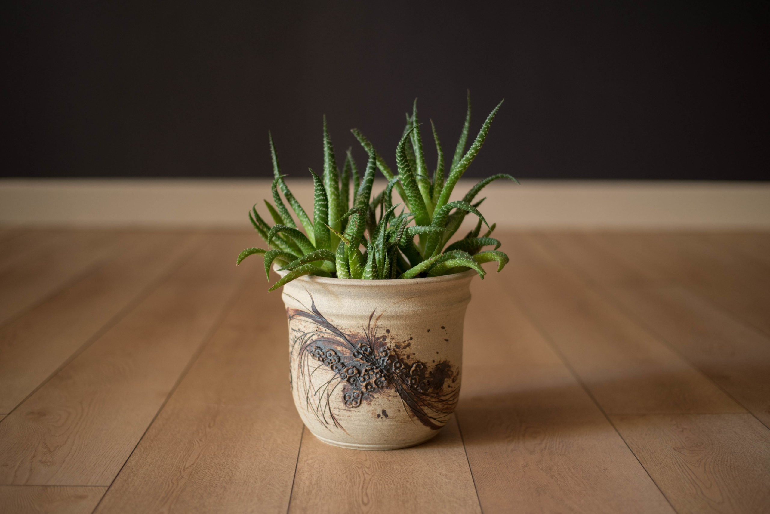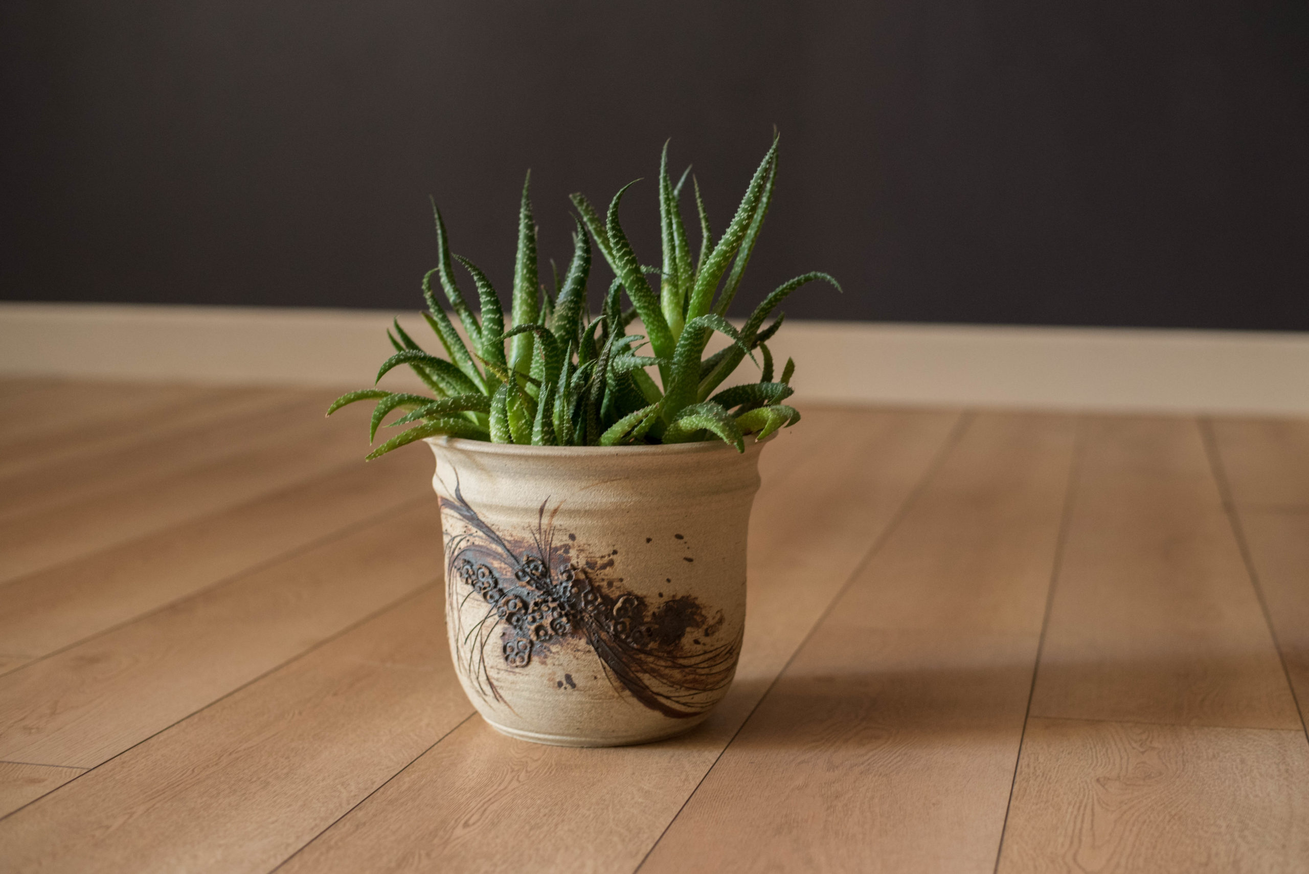 Vintage Abstract Relief Ceramic Stoneware Planter Pot