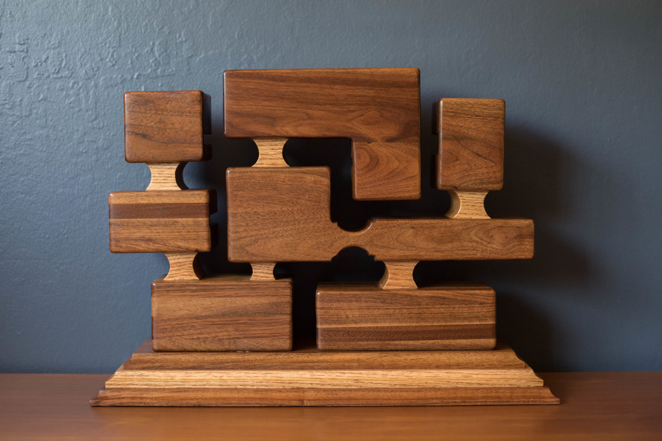 Vintage Abstract Sculptural Walnut Studio Craft Jewelry Box Organizer