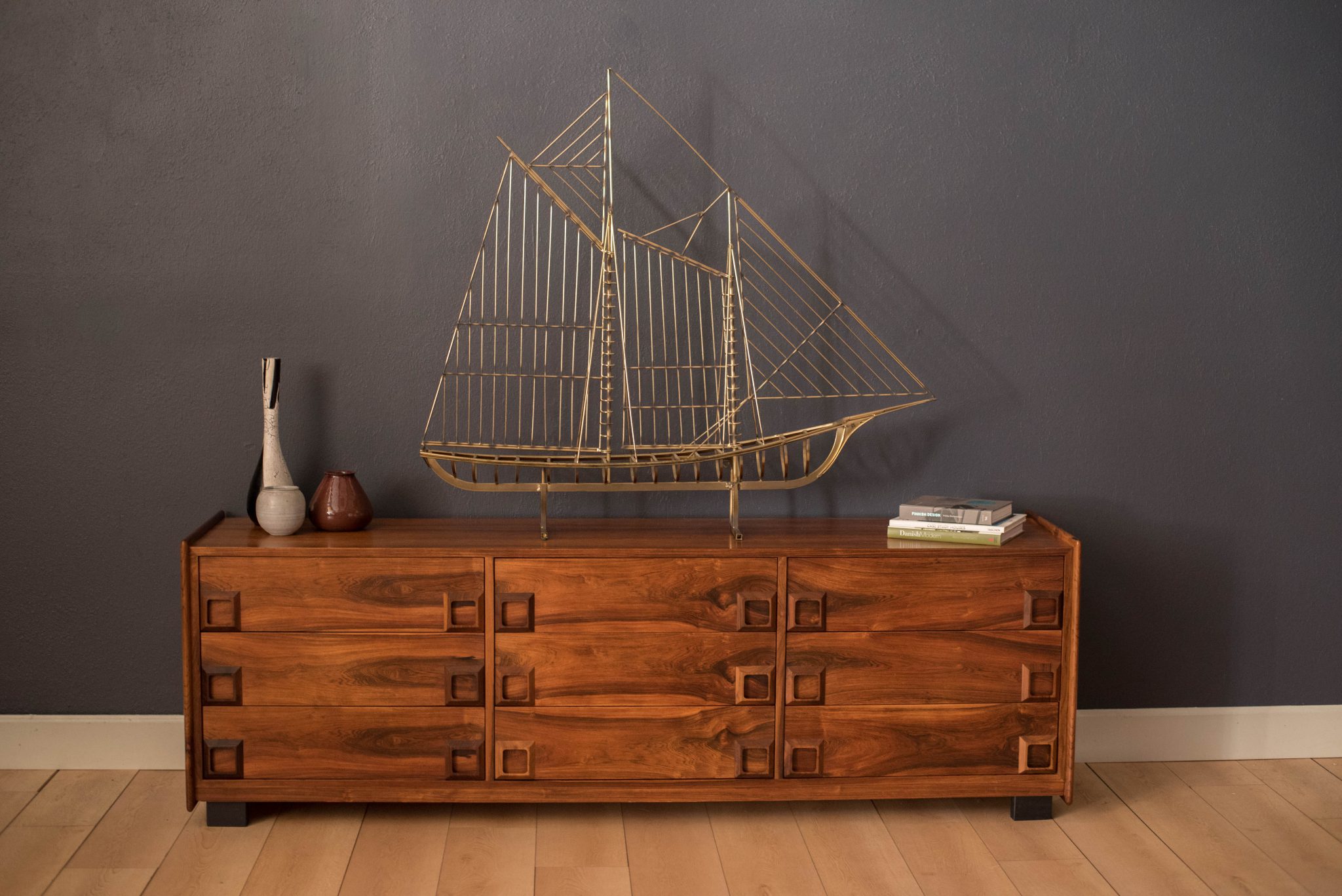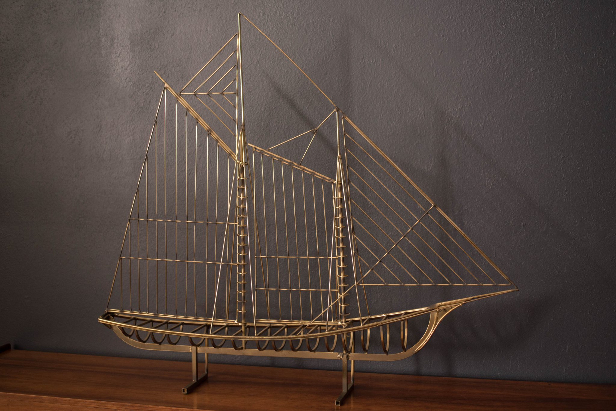 Mid-Century Modern sailboat sculpture by Curtis Jere for Artisan House. This oversized art piece is made of brass and is signed C Jere ’76. Sculpture can be wall-mounted or displayed freestanding.