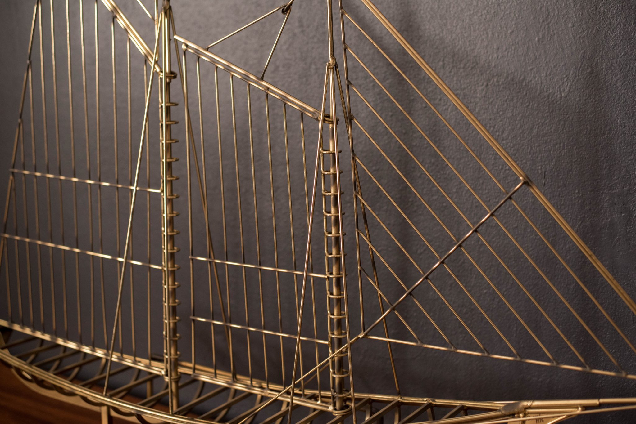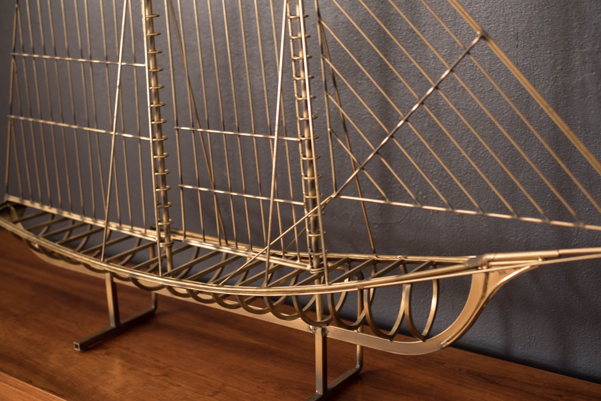 Vintage Brass Skeleton Sailboat Sculpture by Curtis Jere