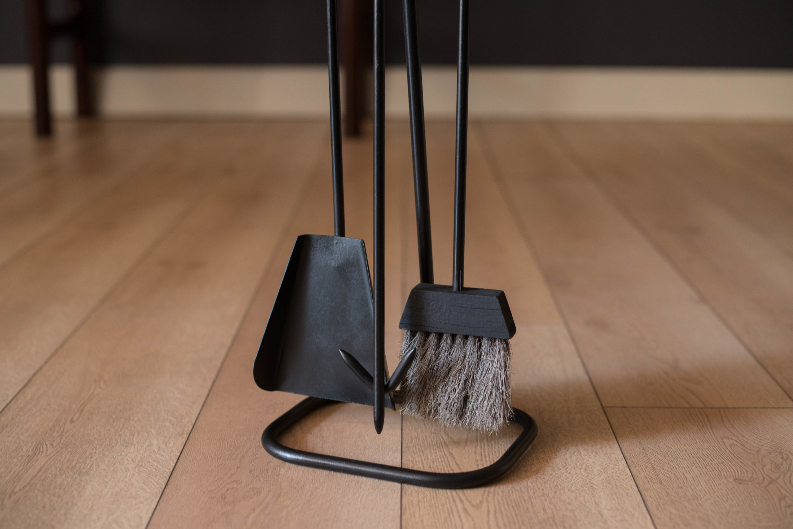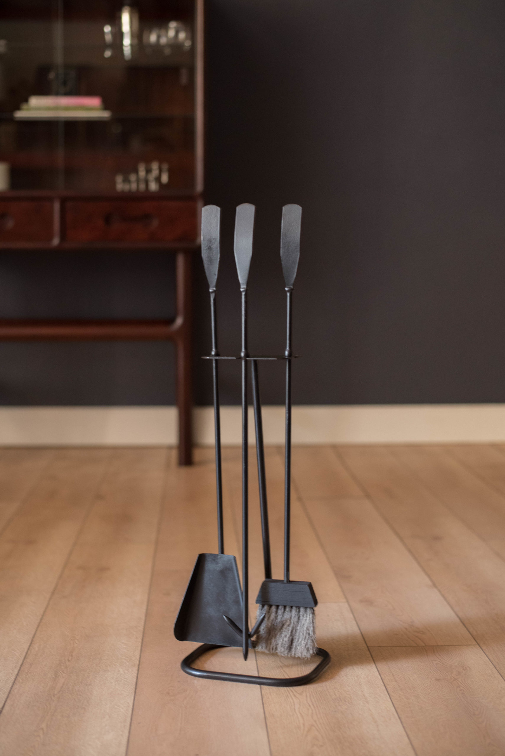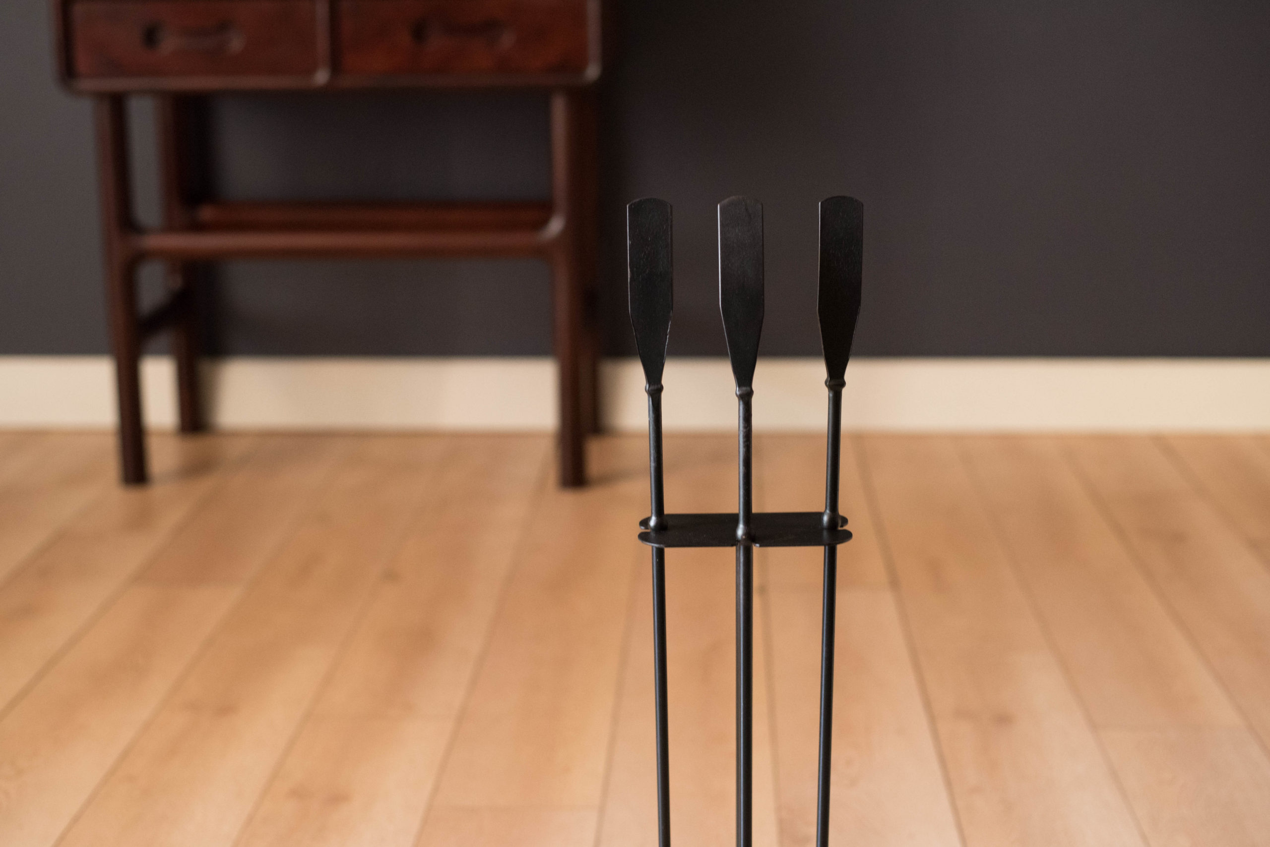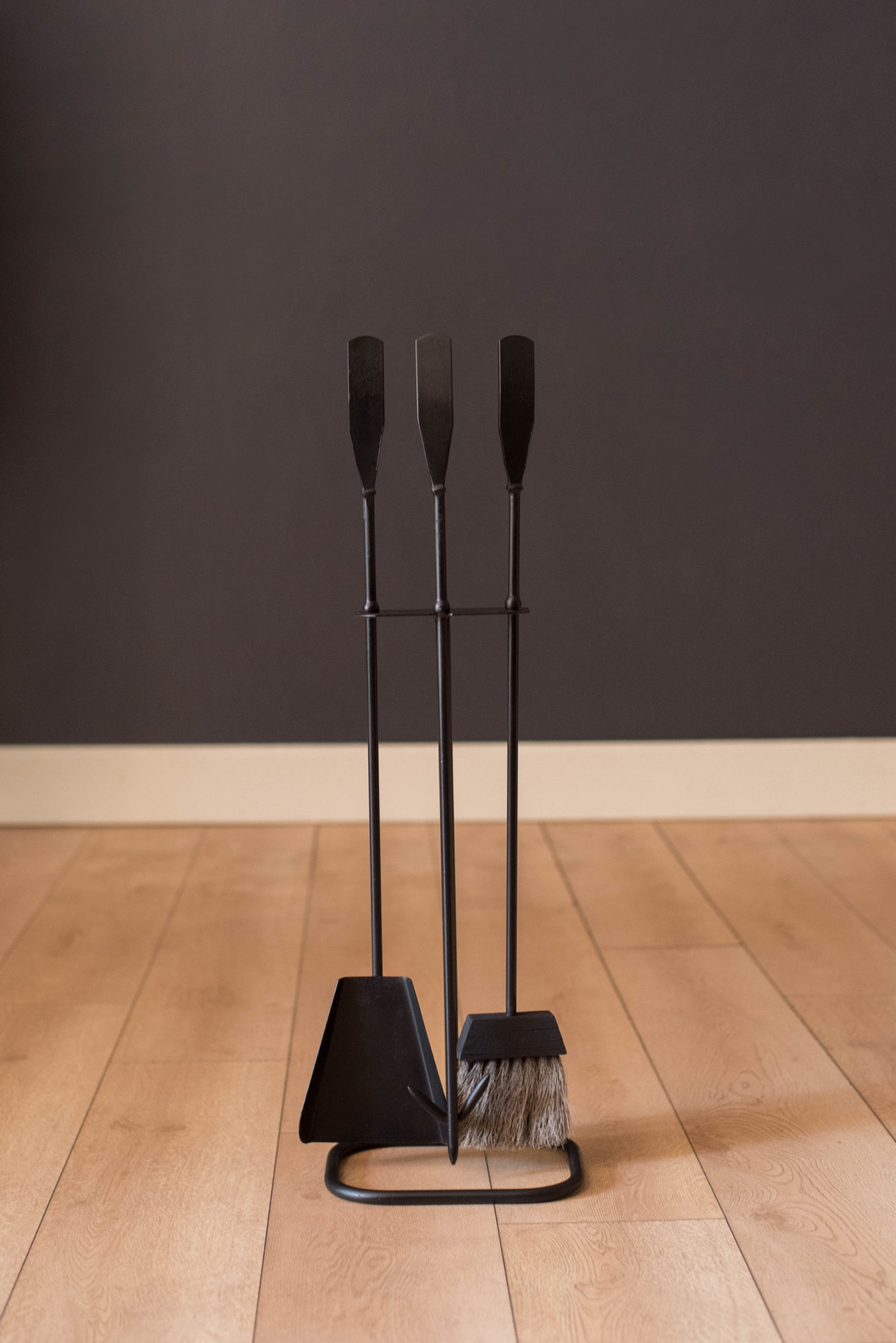 Vintage California Modernist Black Iron Fireplace Tool Set