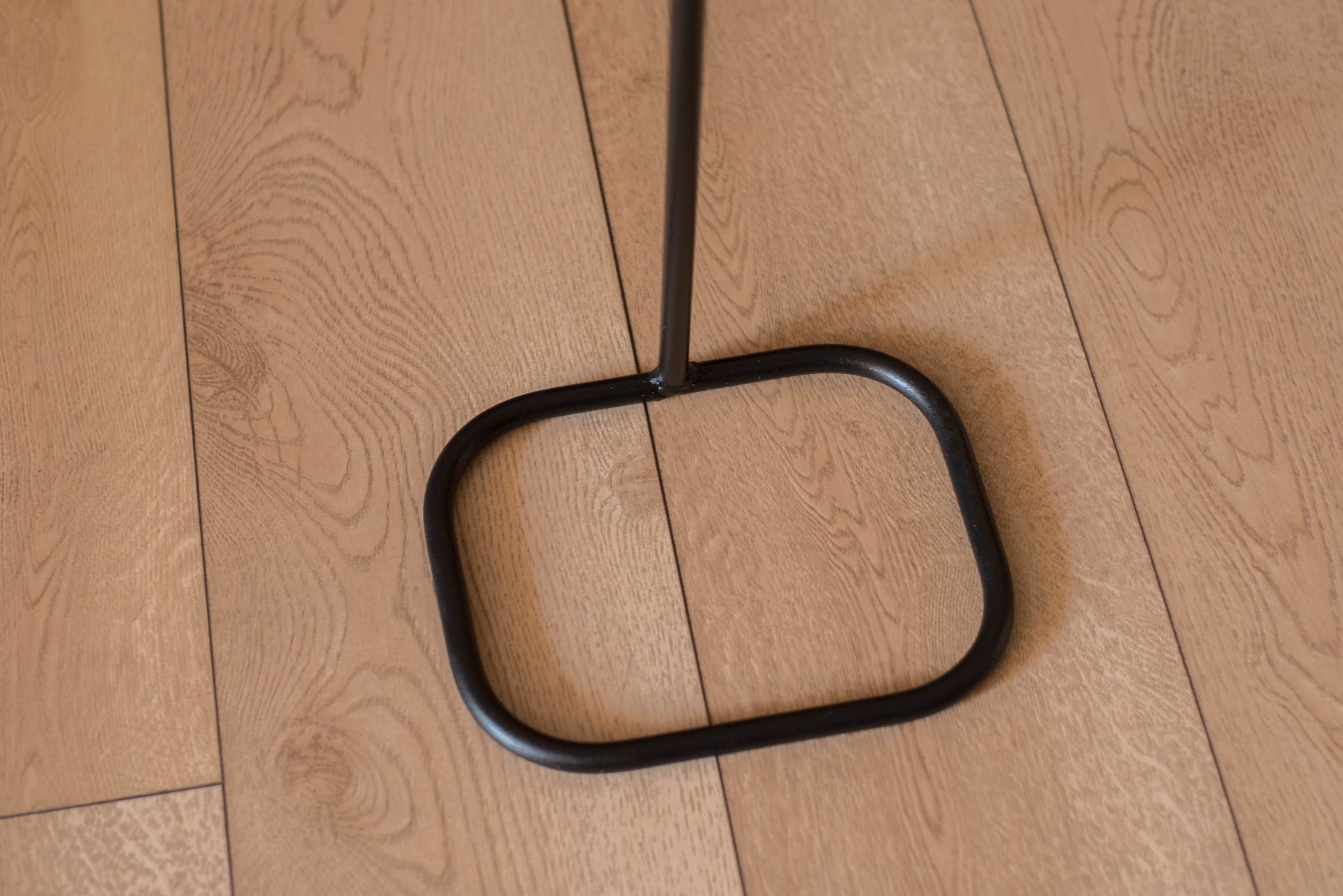 Mid-Century Modern three piece fireplace tool set attributed to Luther Conover of Sausalito, California circa 1950’s. This set features a heavy cast iron ring stand and includes a poker, shovel, and brush.