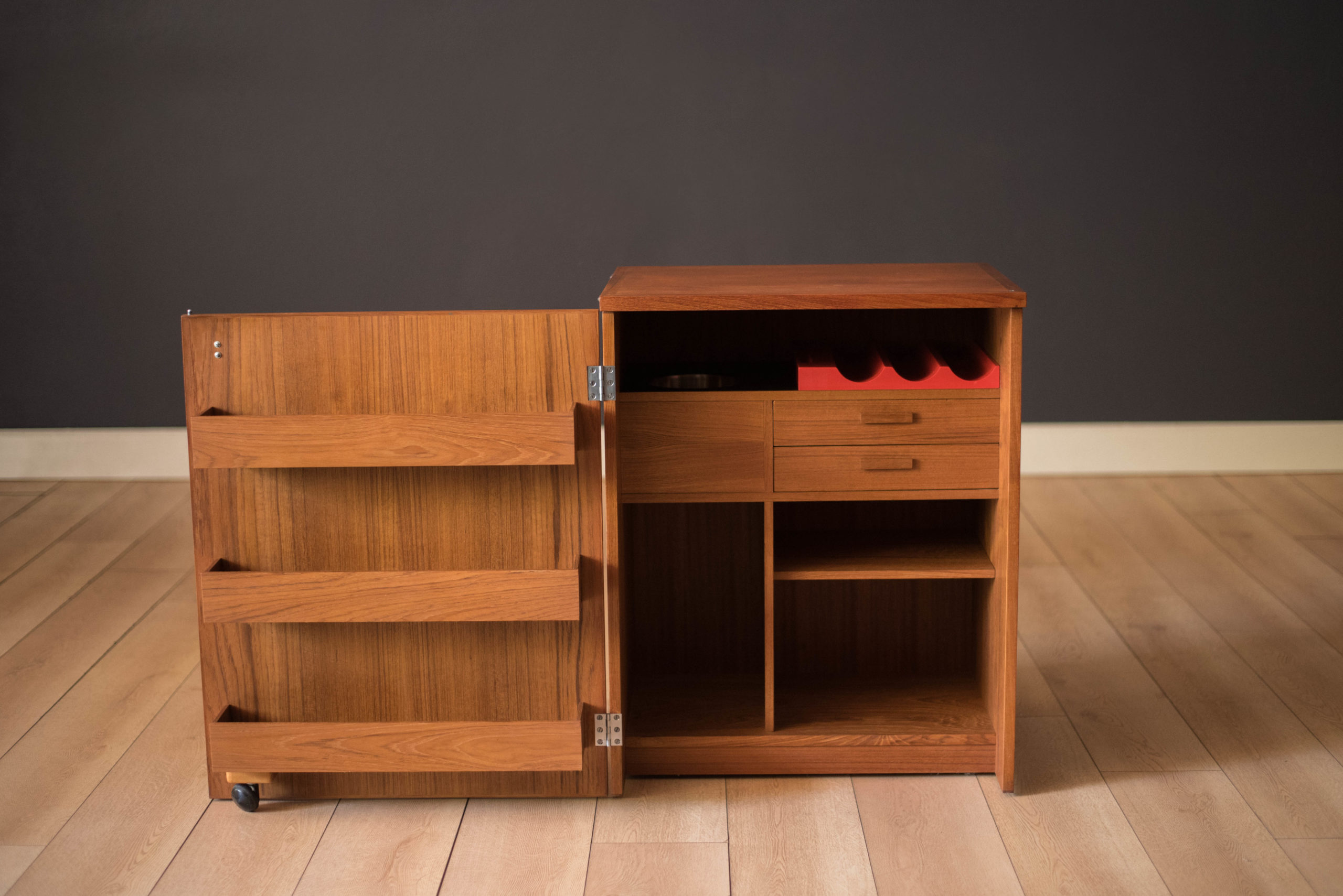 Vintage Compact Danish Teak Expandable Bar Cabinet by Dyrlund