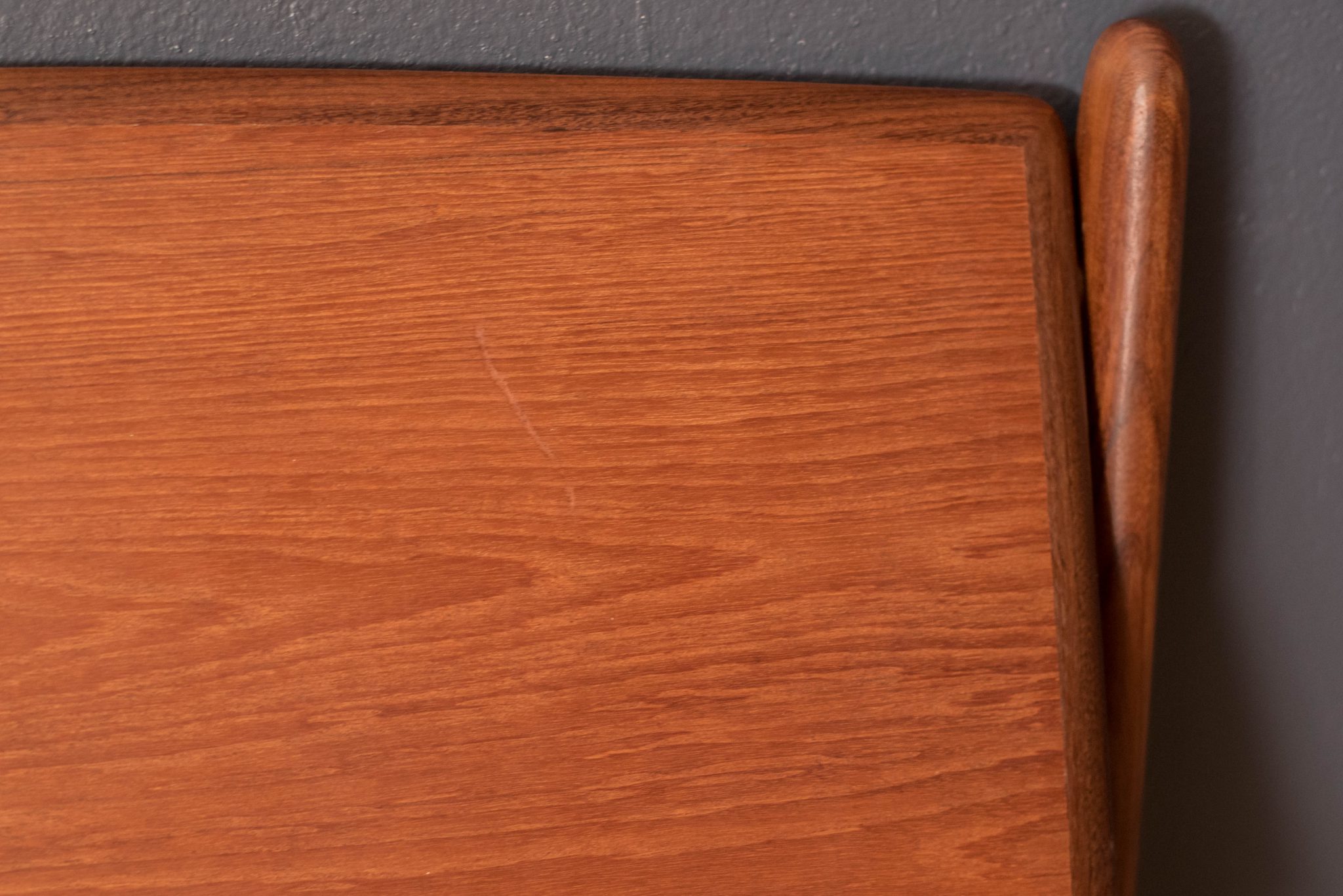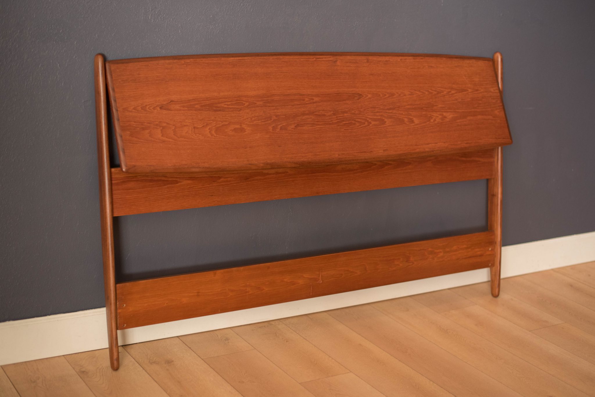 Mid century queen headboard frame designed by Svend A. Madsen for Karl Lindegaard in teak. This unique frame is made with a headboard tilting mechanism that adjusts to three different settings.