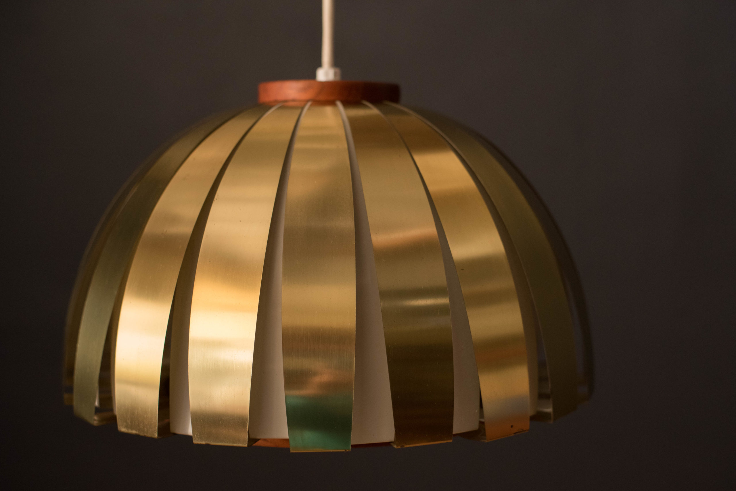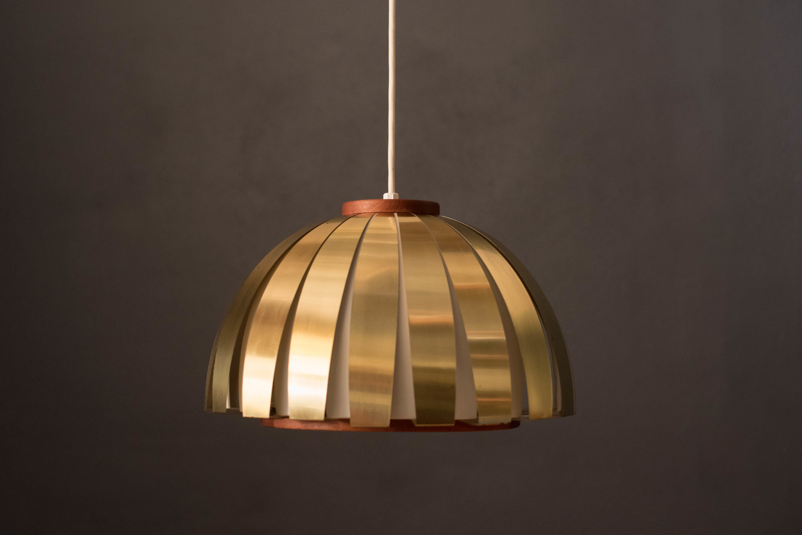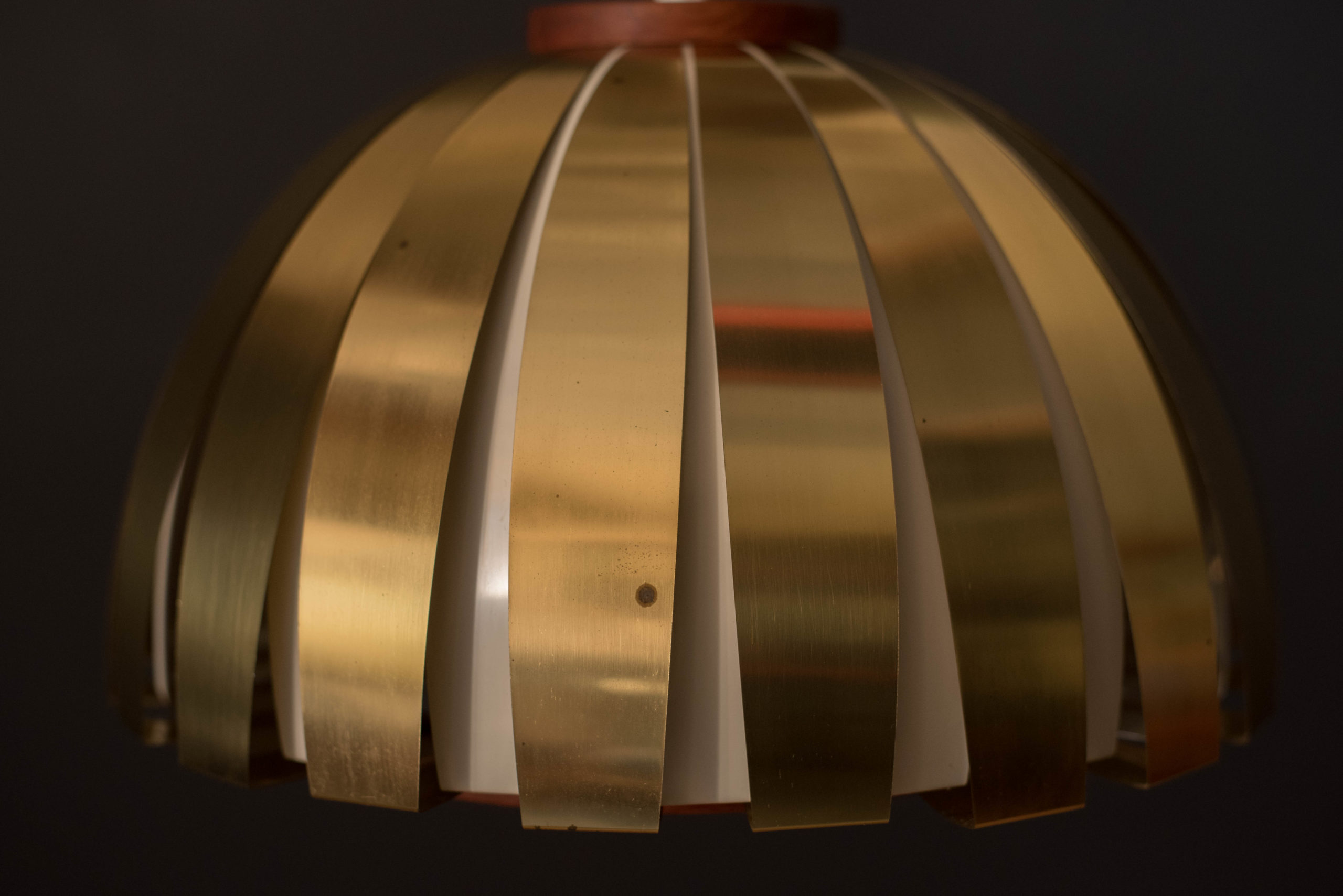 Vintage Danish Teak and Brass Fiesta Pendant Light Fixture