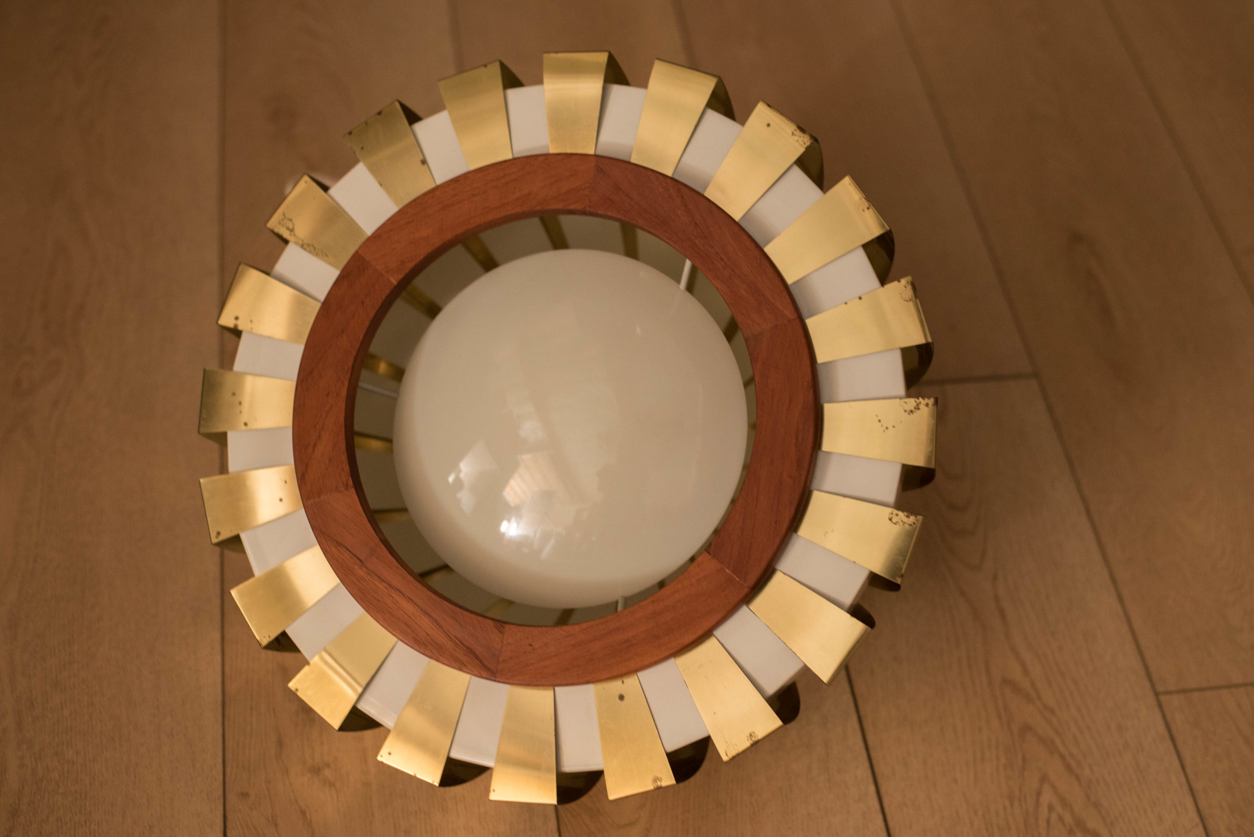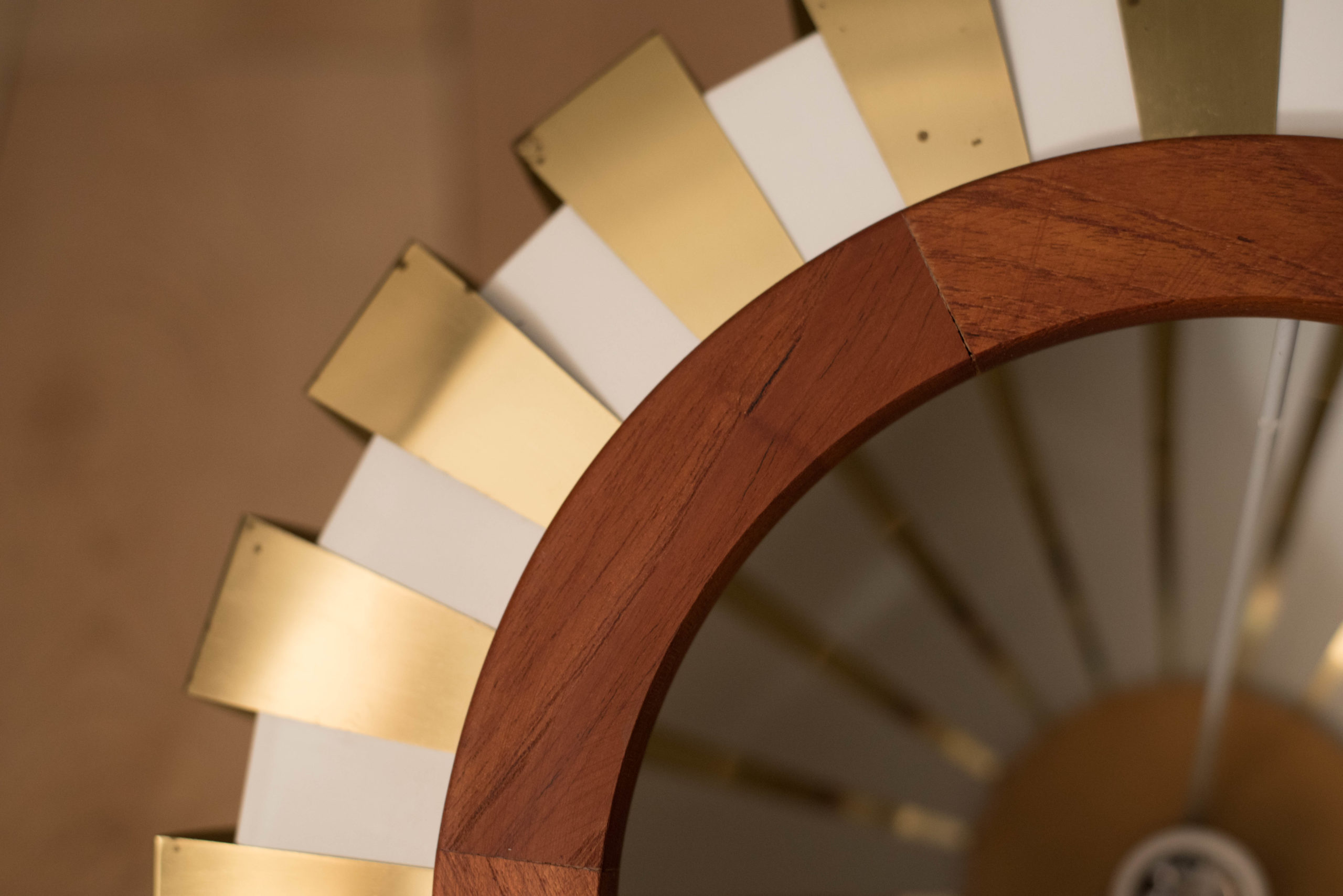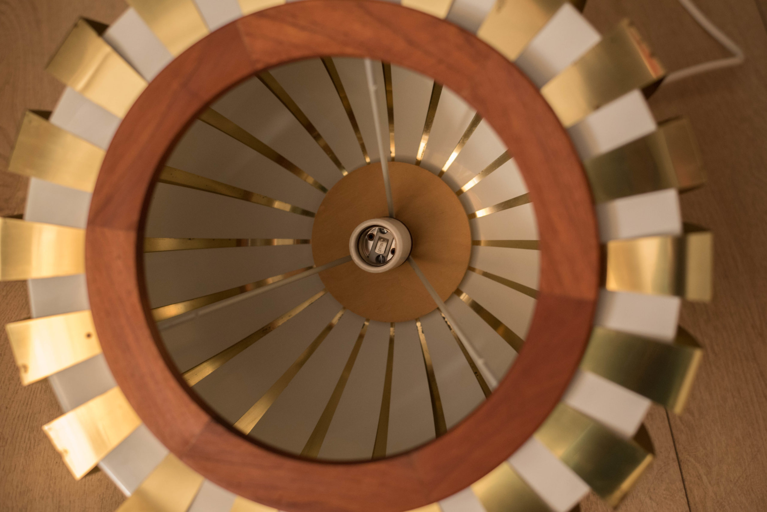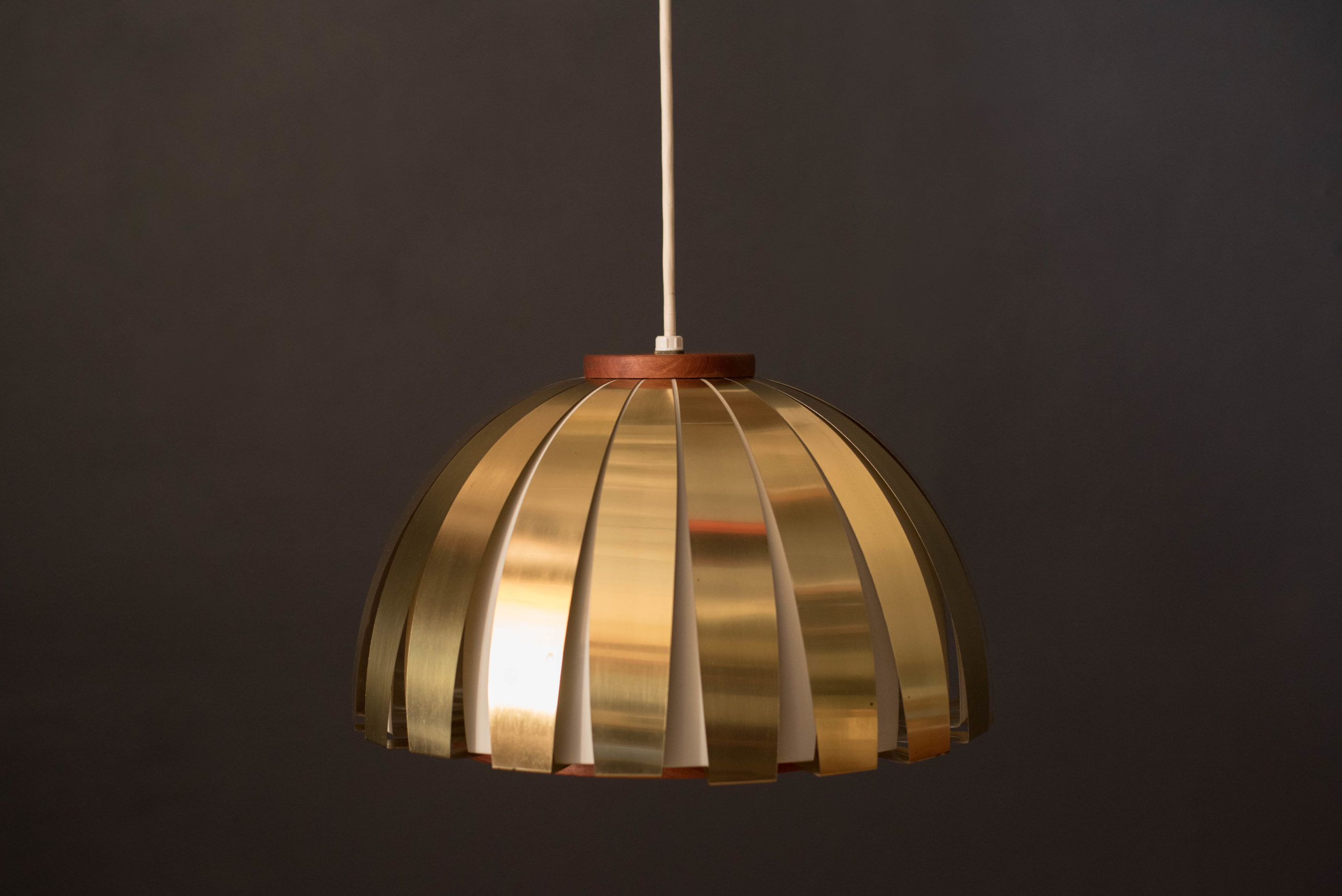 Vintage Danish Teak and Brass Fiesta Pendant Light Fixture