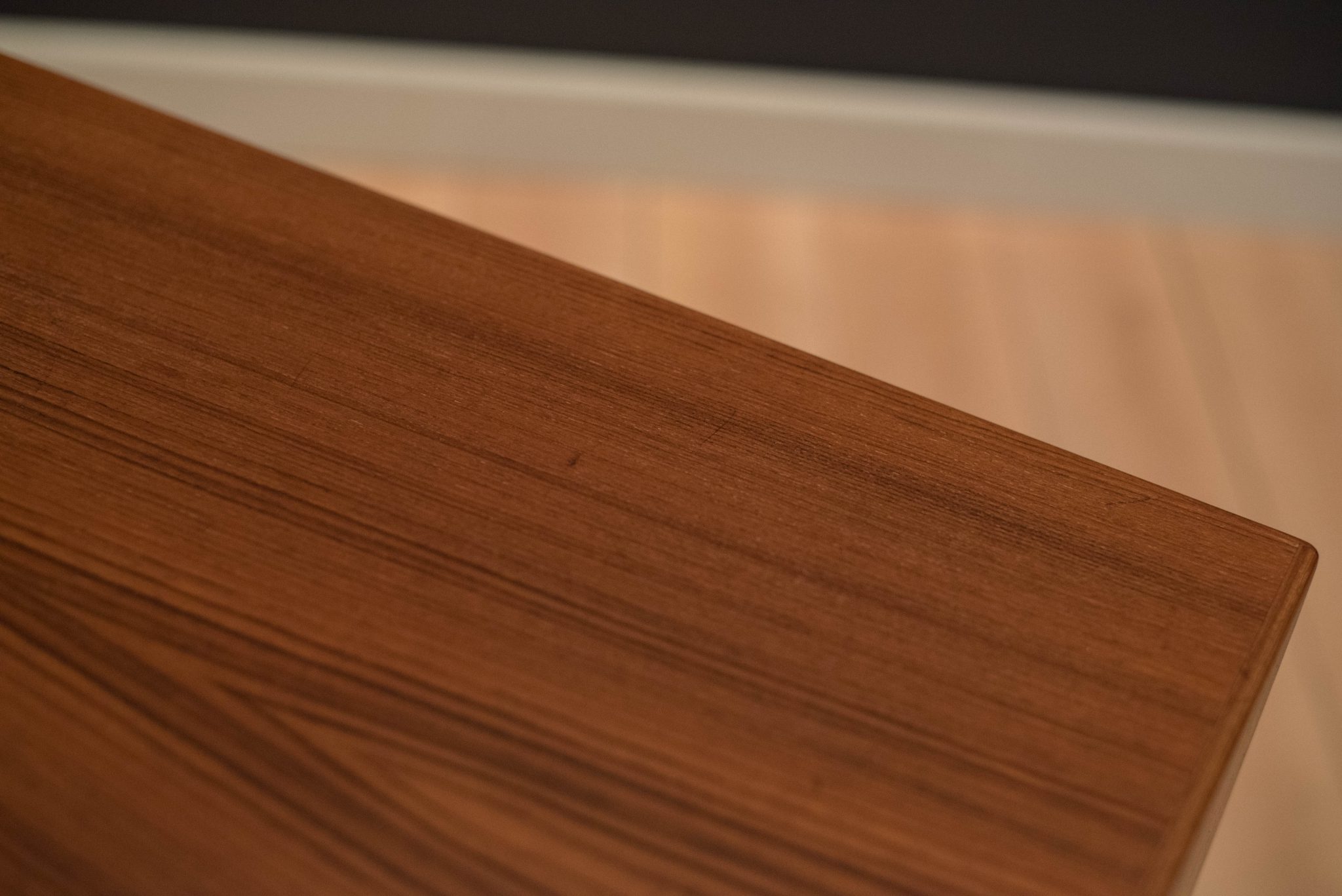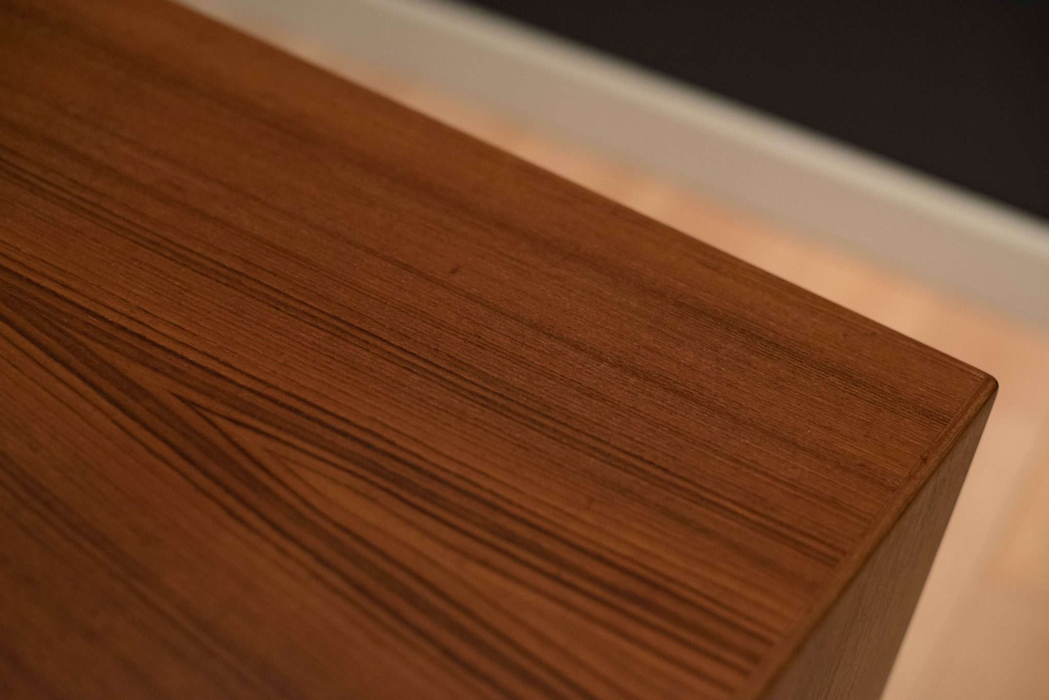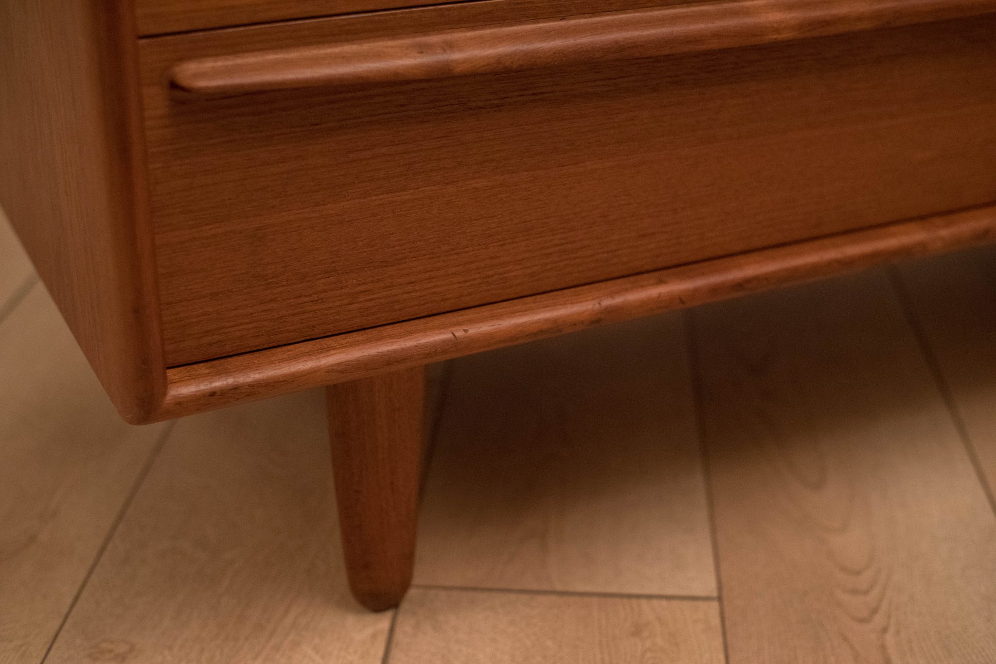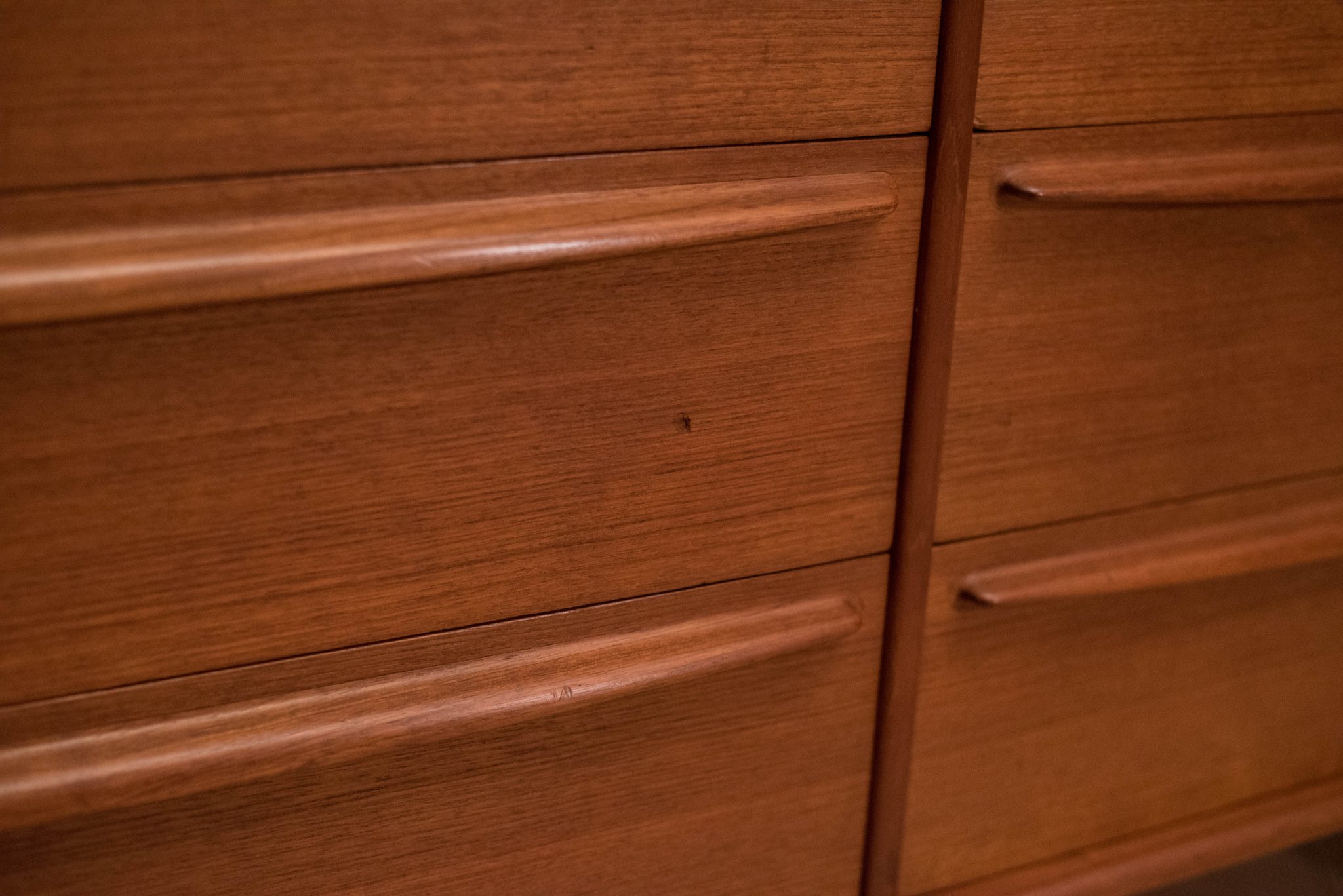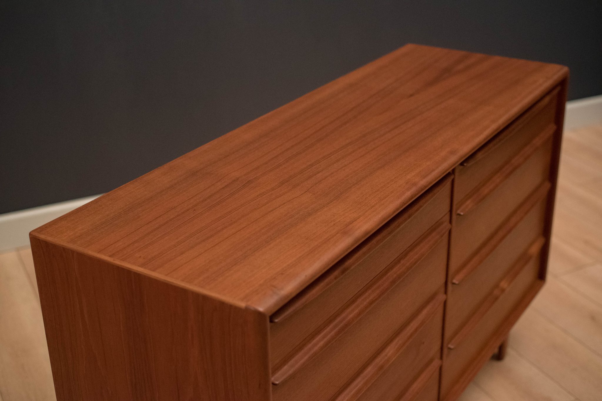 Mid-Century Modern dresser designed by Svend Madsen in teak. This piece features sculpted handles and includes eight dovetailed drawers.