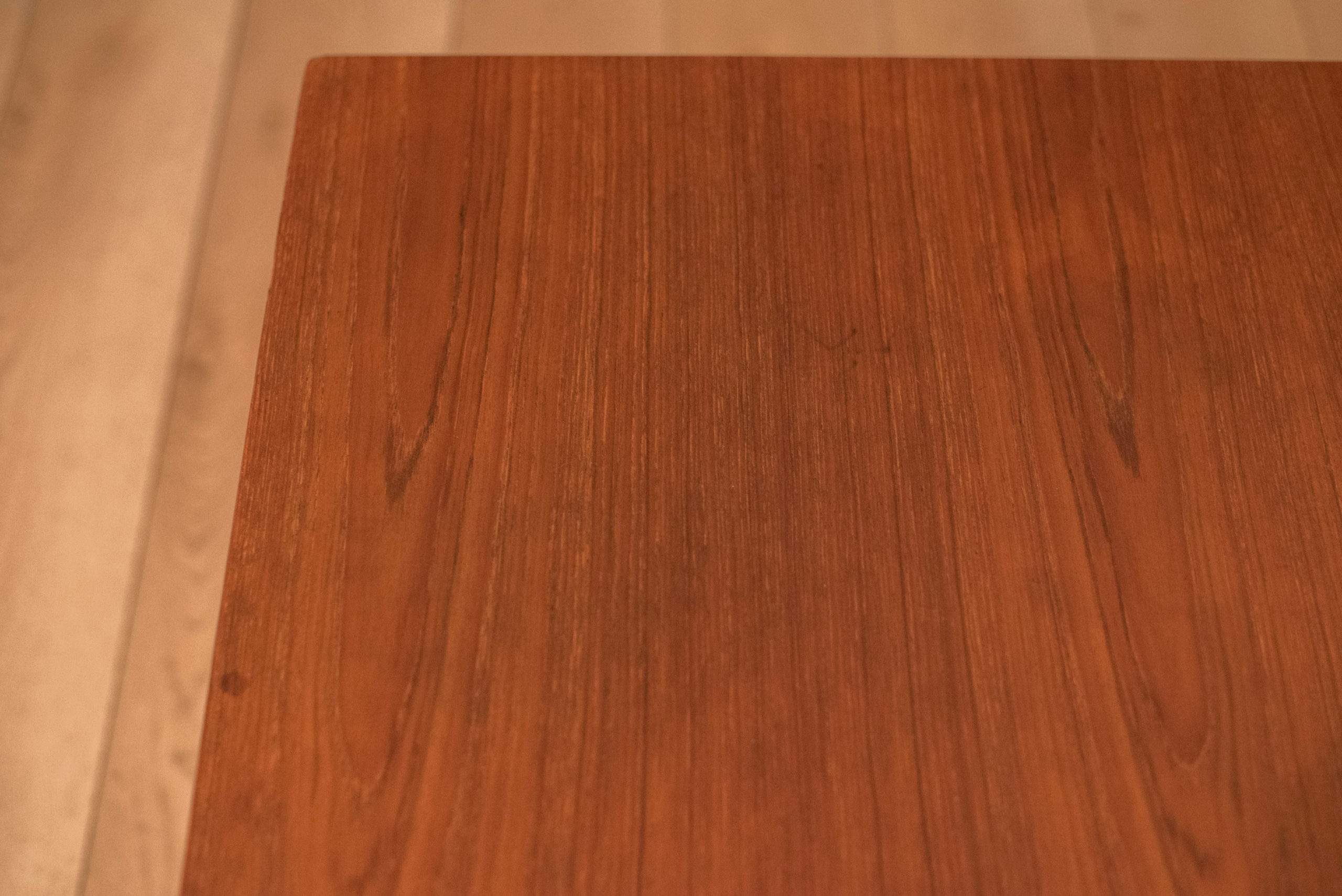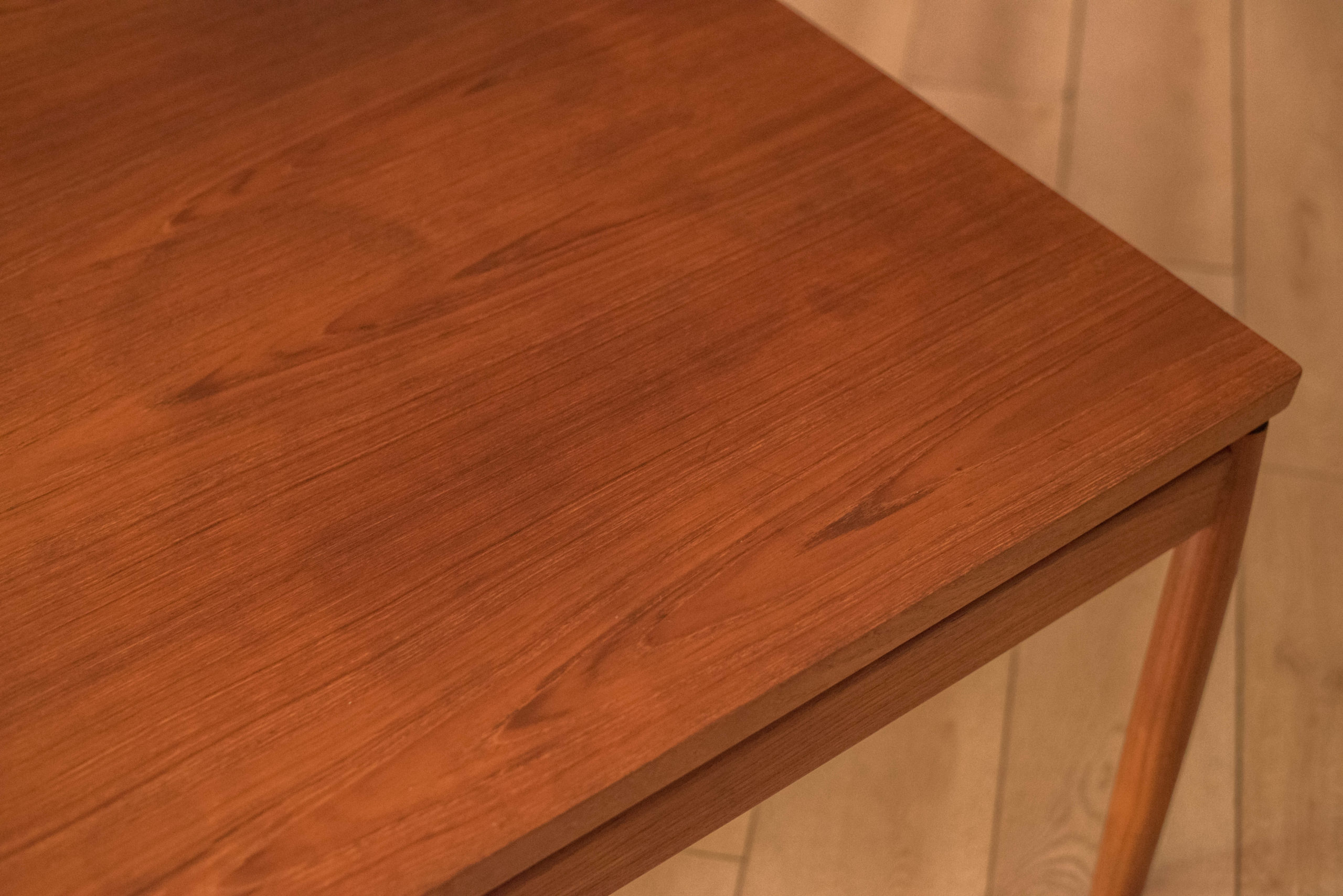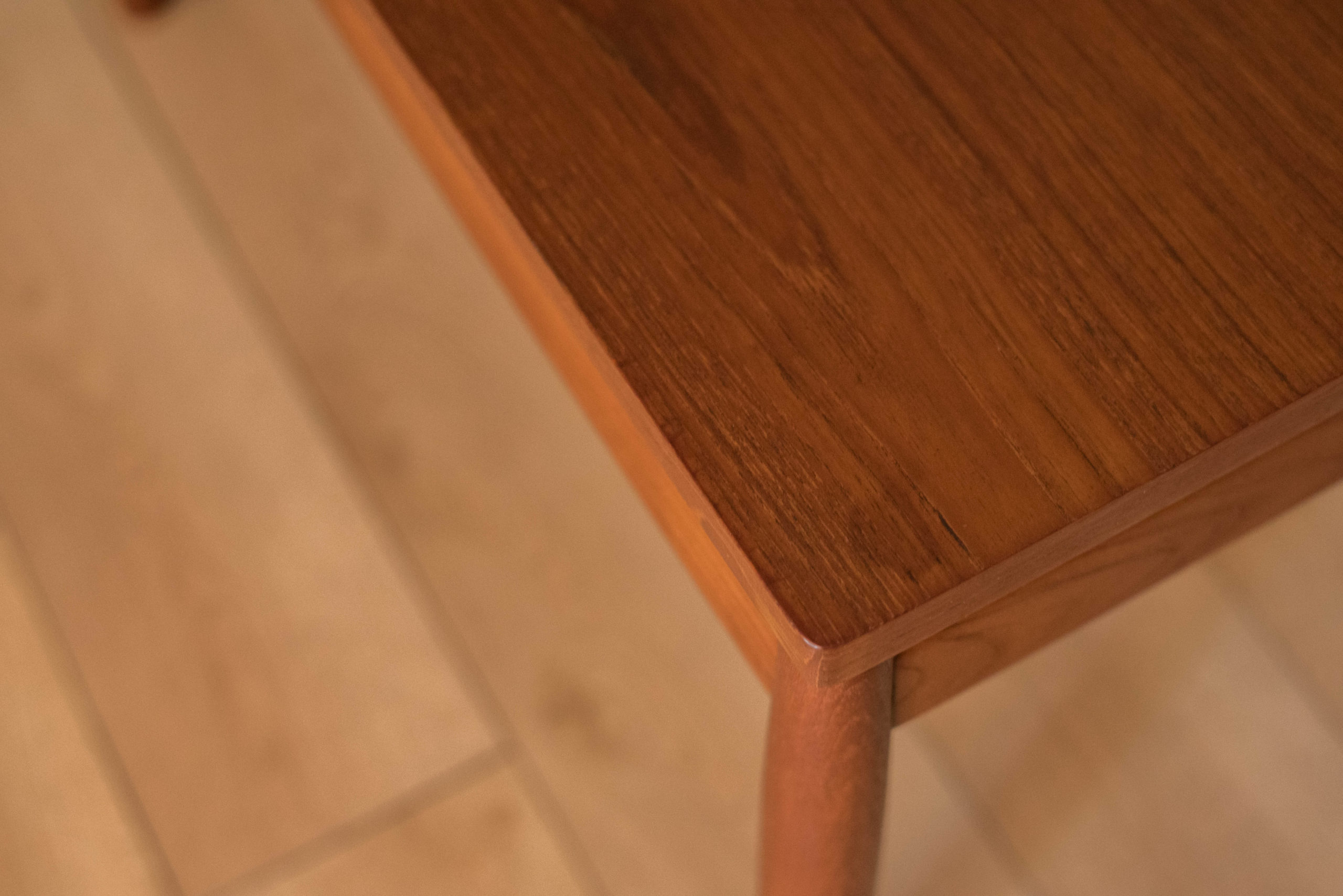 Mid century modern square coffee table designed by Grete Jalk for France & Daverkosen in teak. This timeless piece features brass accents and functions as a coffee table, occasional table, or sectional sofa end table.
