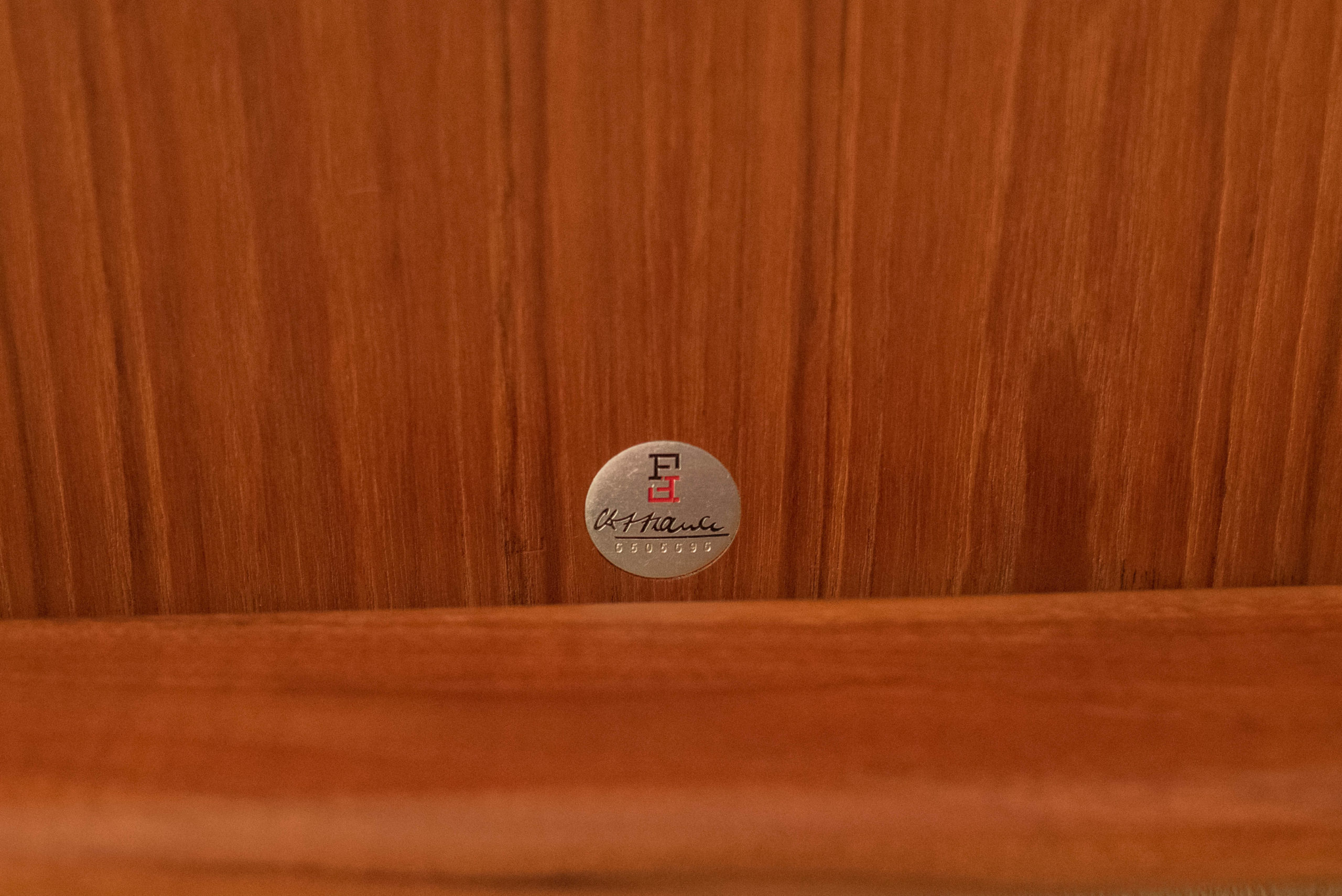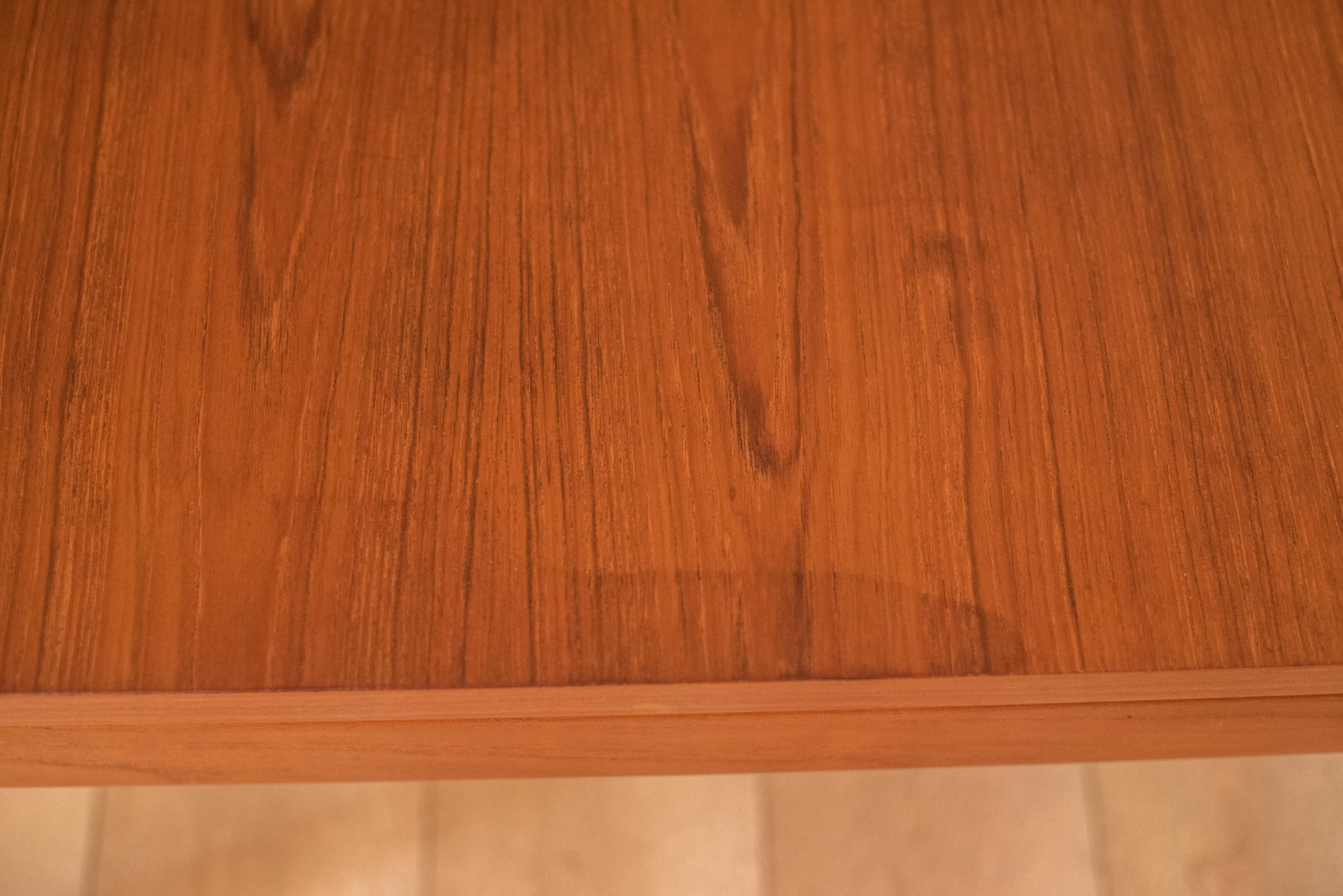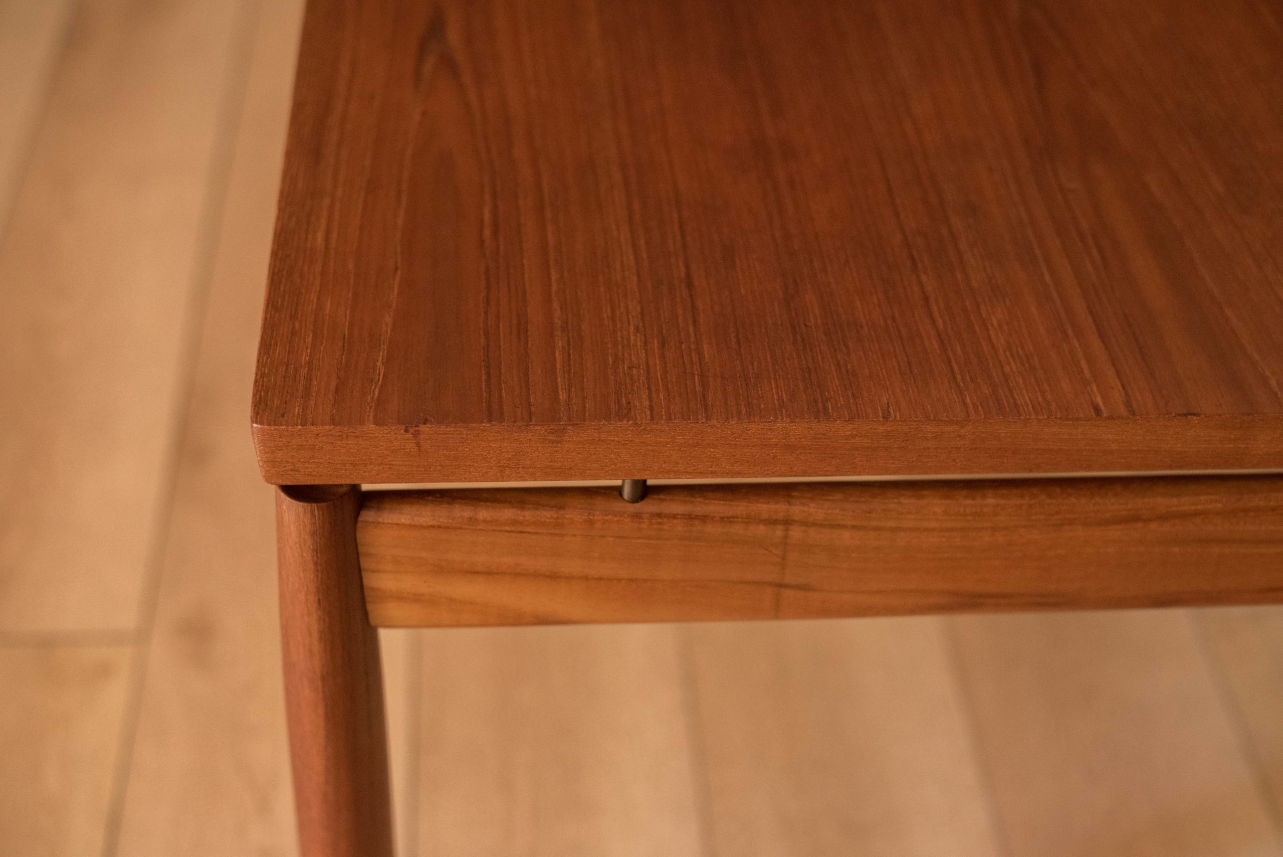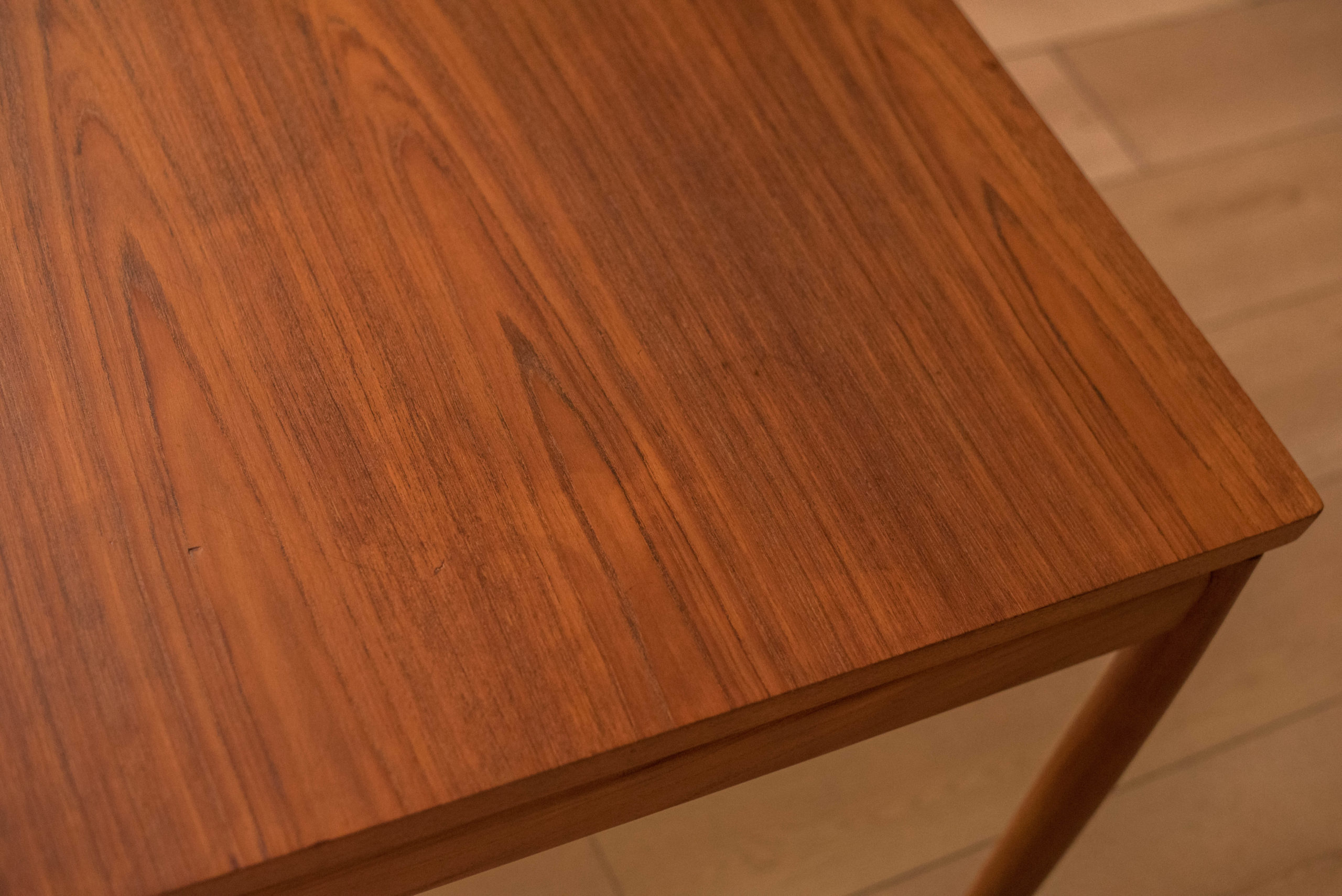 Mid century modern square coffee table designed by Grete Jalk for France & Daverkosen in teak. This timeless piece features brass accents and functions as a coffee table, occasional table, or sectional sofa end table.