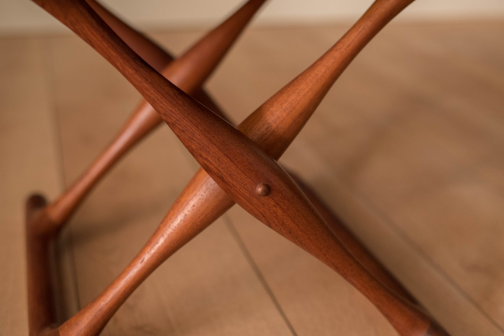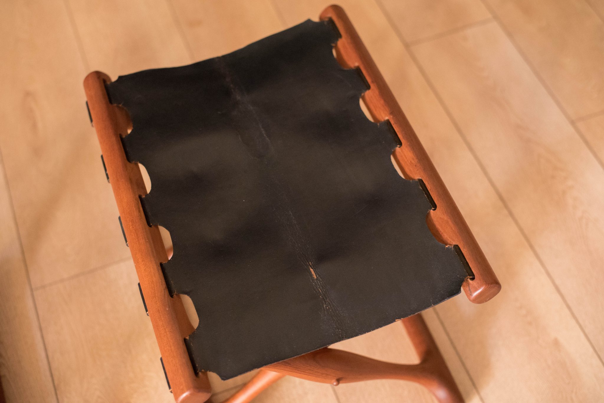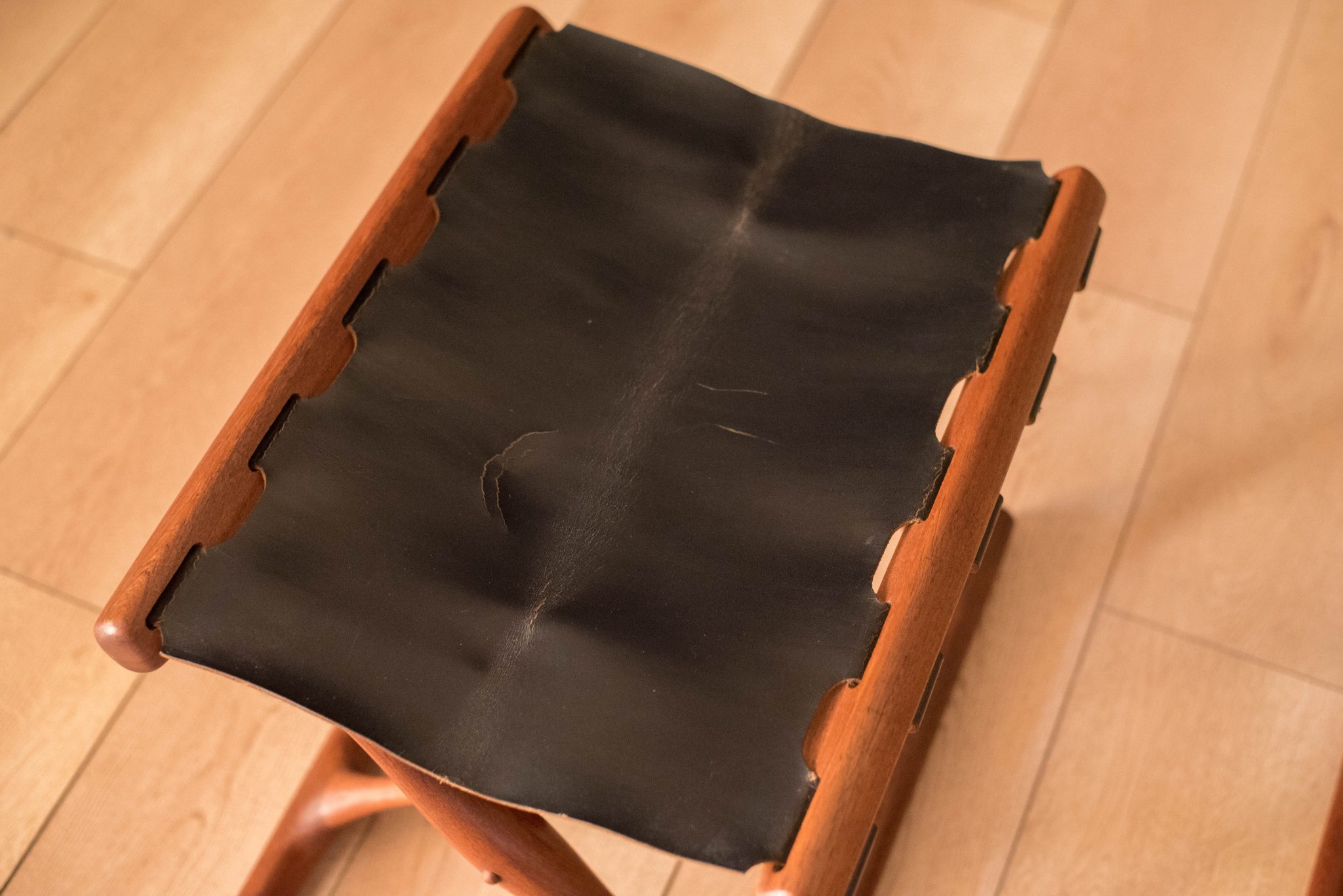 Vintage Leather and Teak Folding Stools by Poul Hundevad