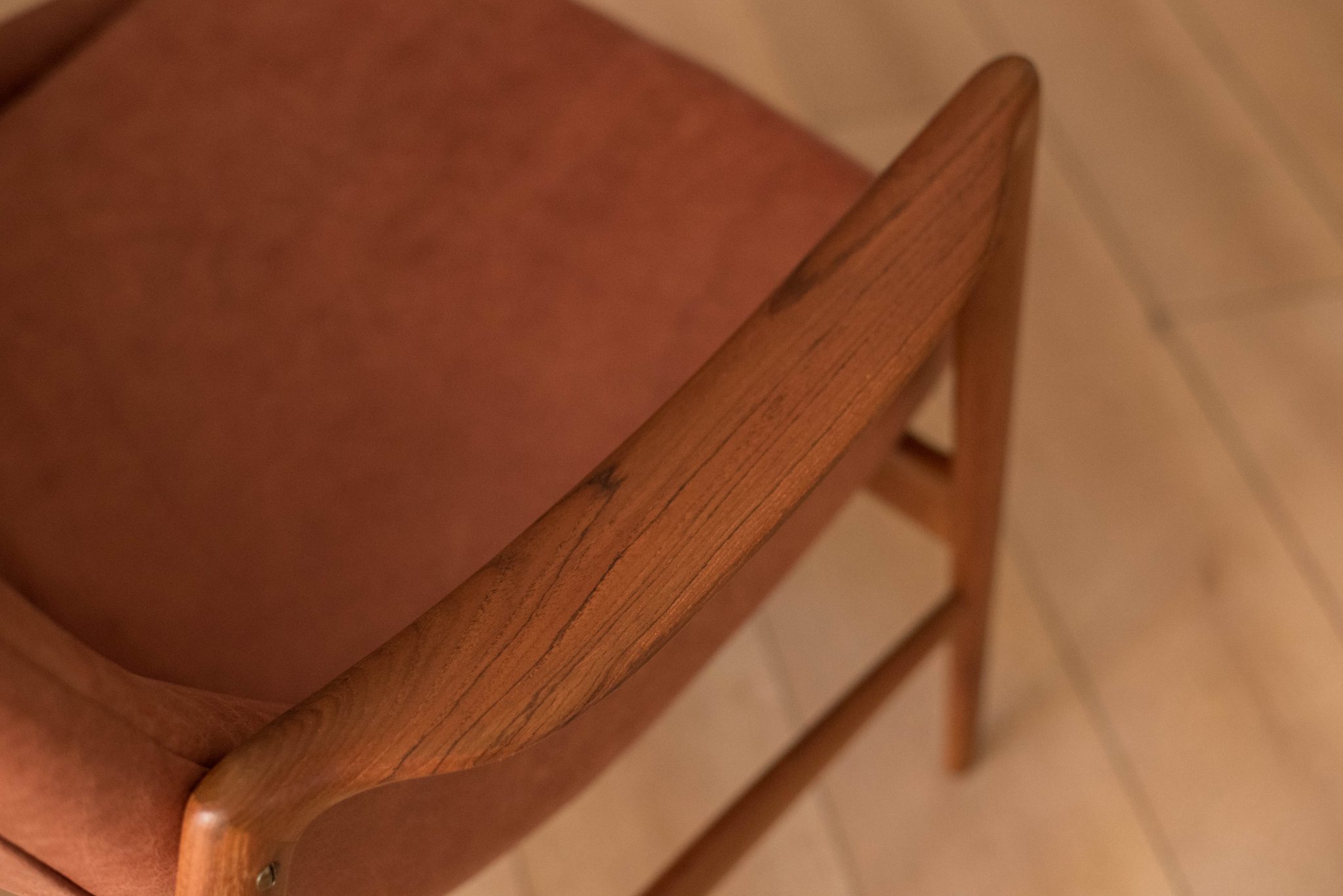 Mid-Century Modern easy armchair designed by Rolf Rastad & Adolf Relling for Dokka Möbler, circa 1950s. This piece features a sculptural teak frame and has been newly reupholstered in a natural camel tone leather.