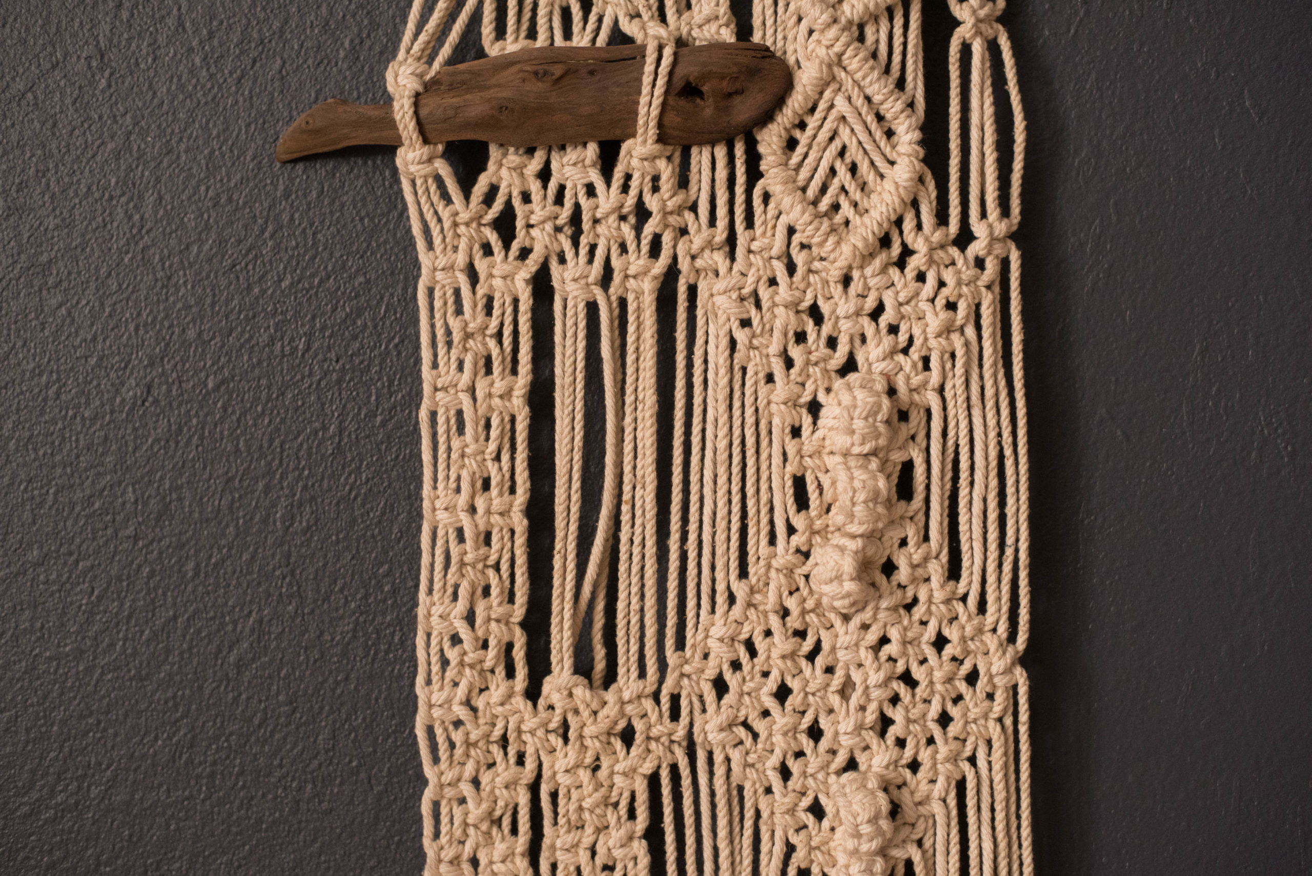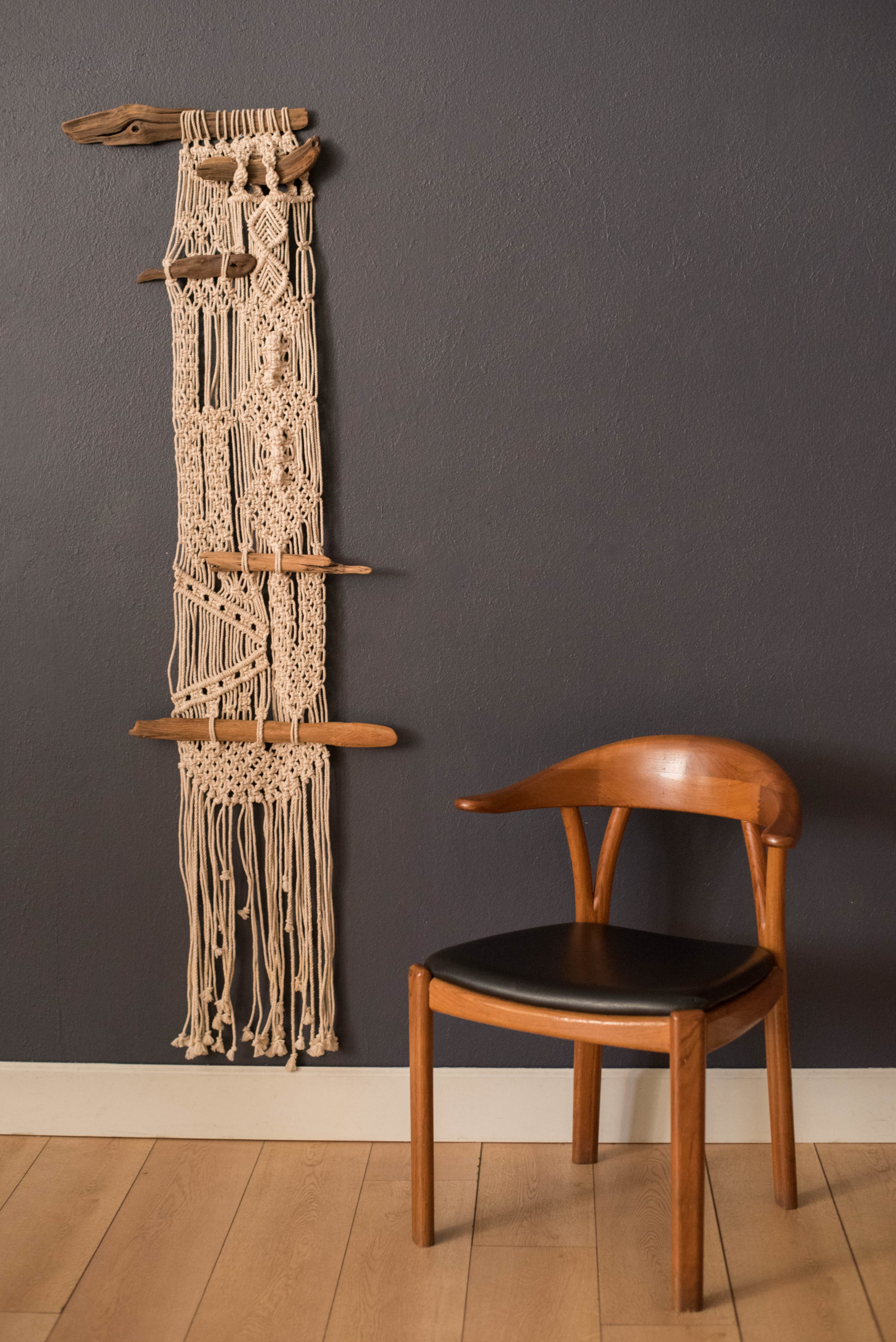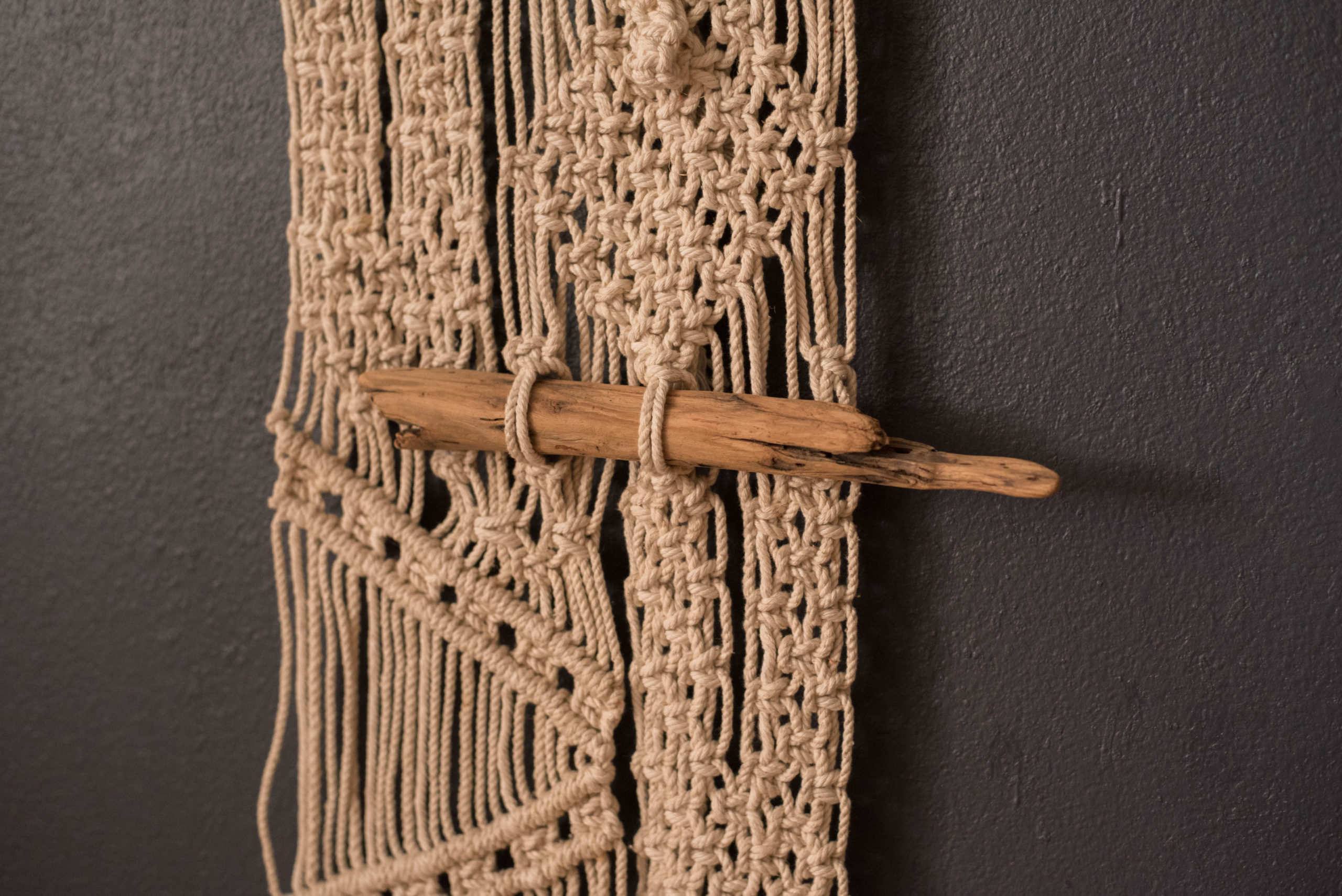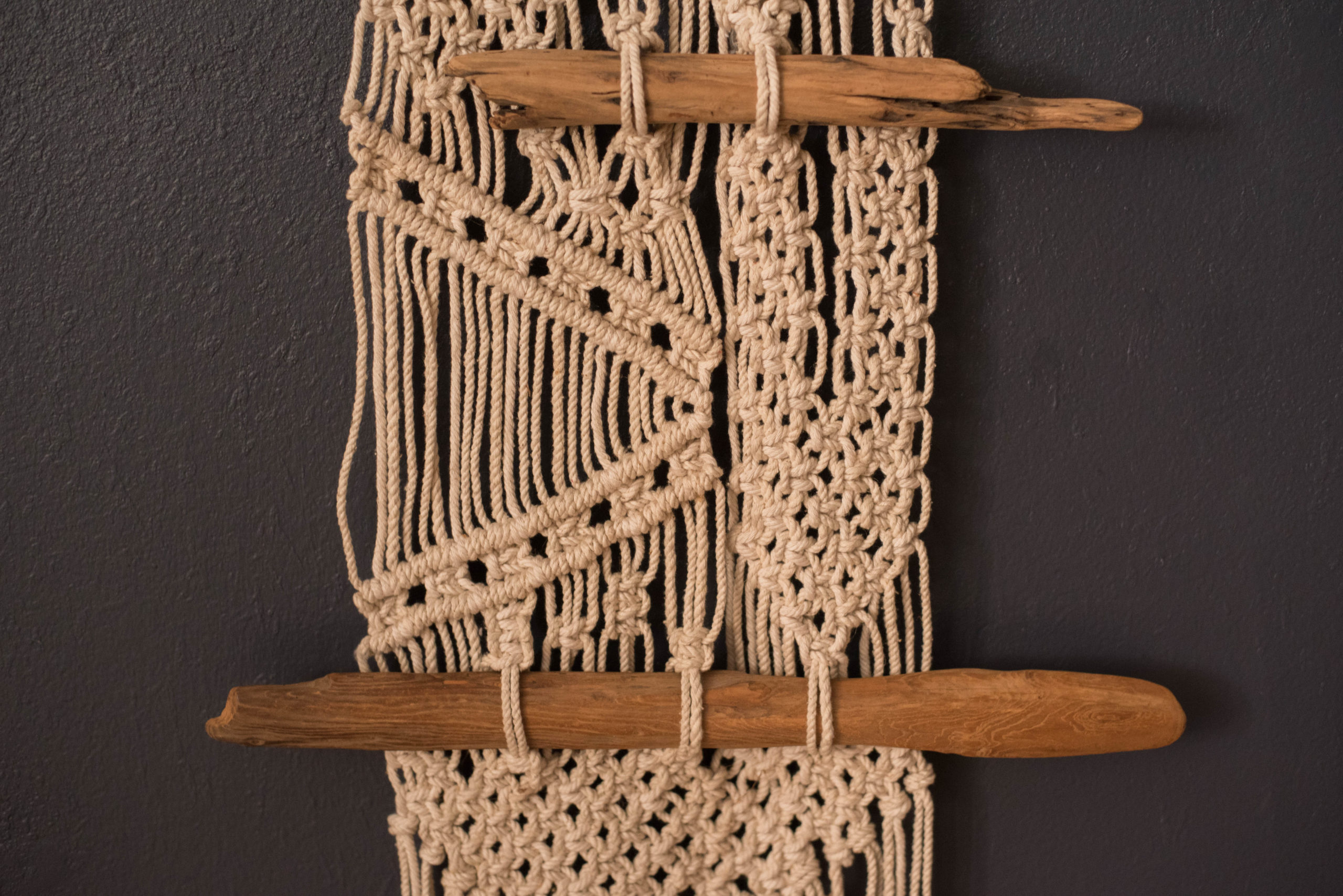 Vintage Macramé Driftwood Fiber Art Wall Hanging Tapestry