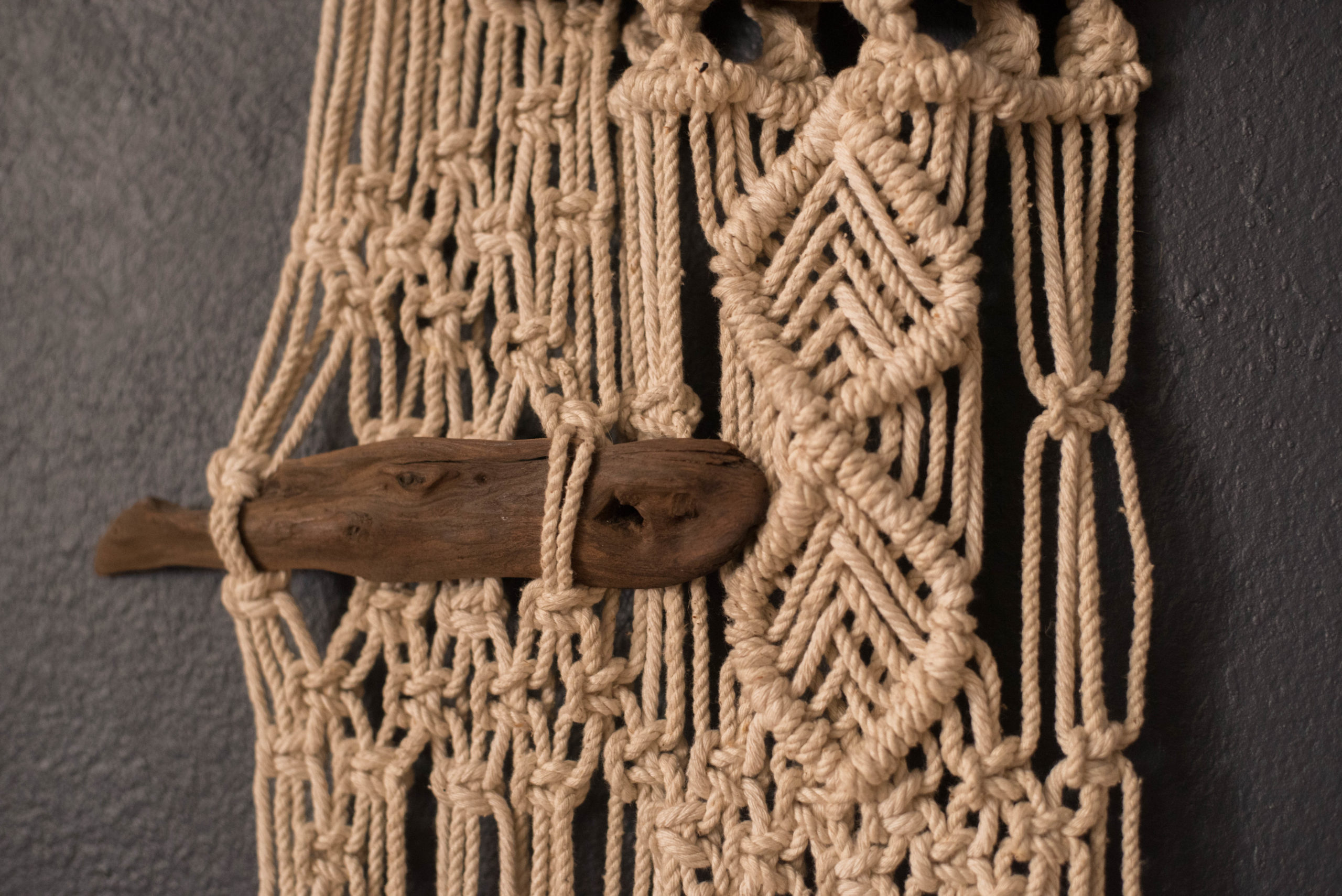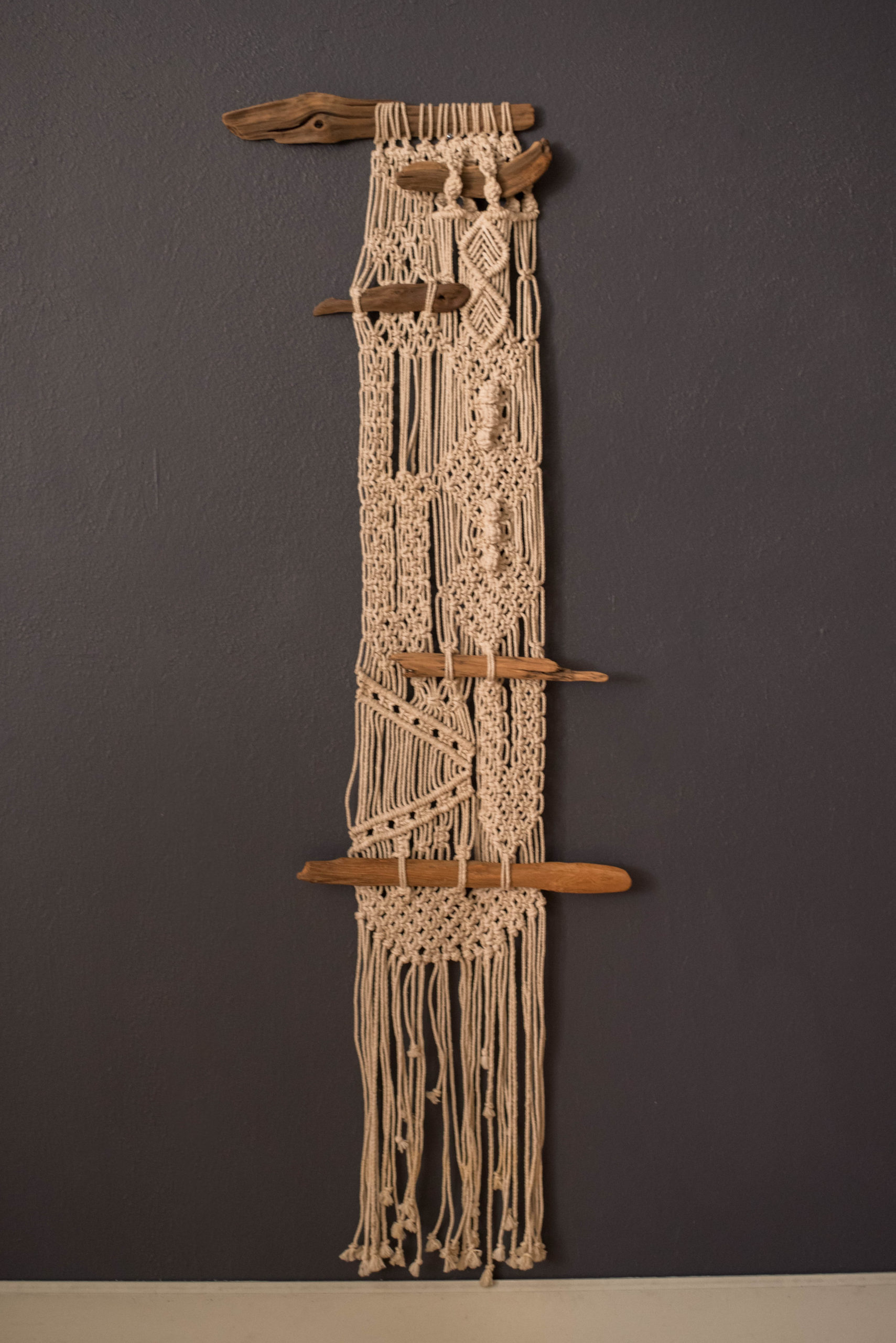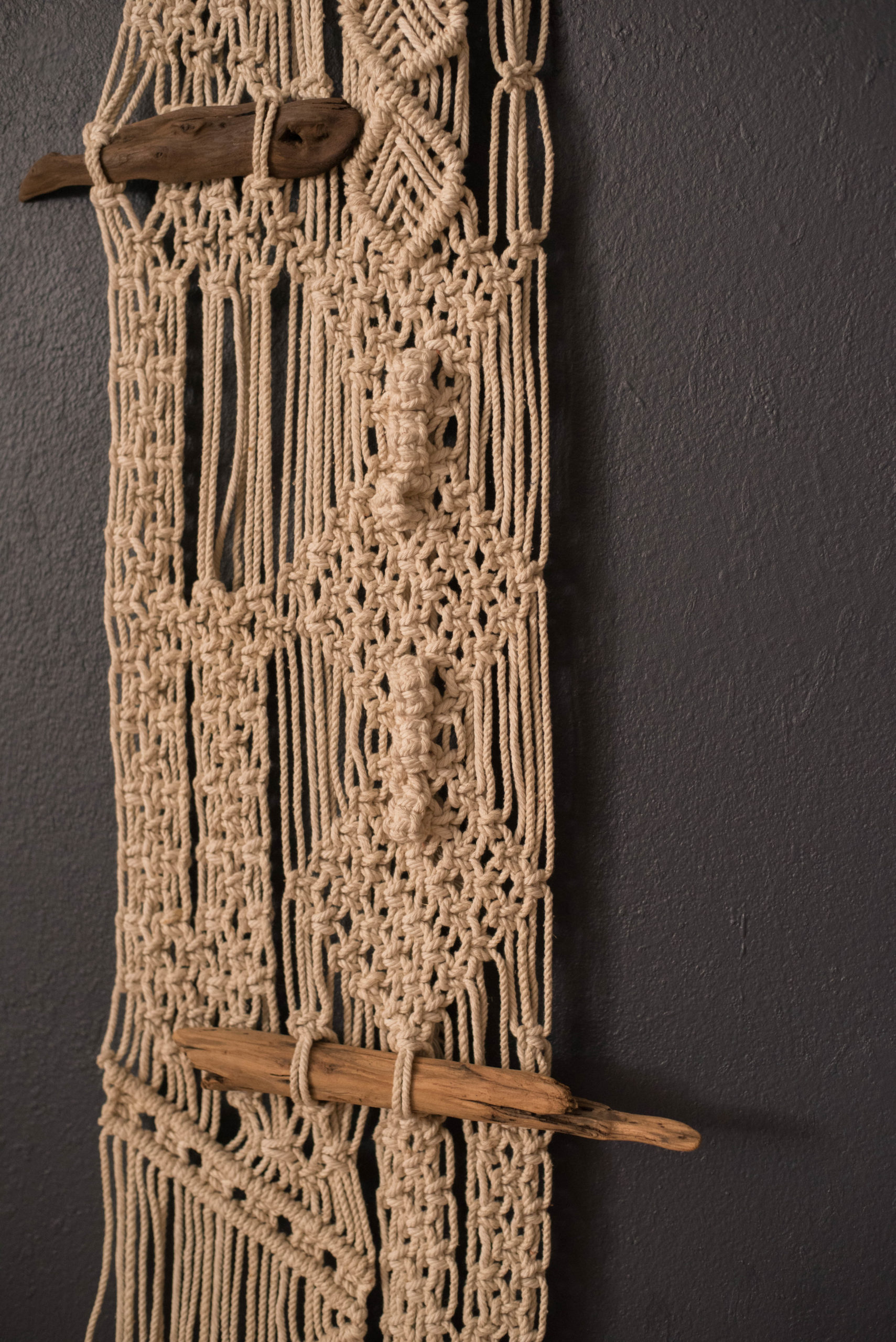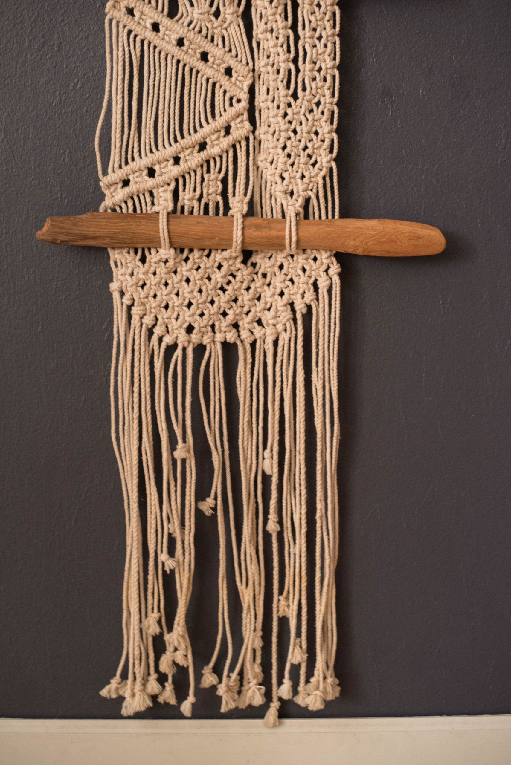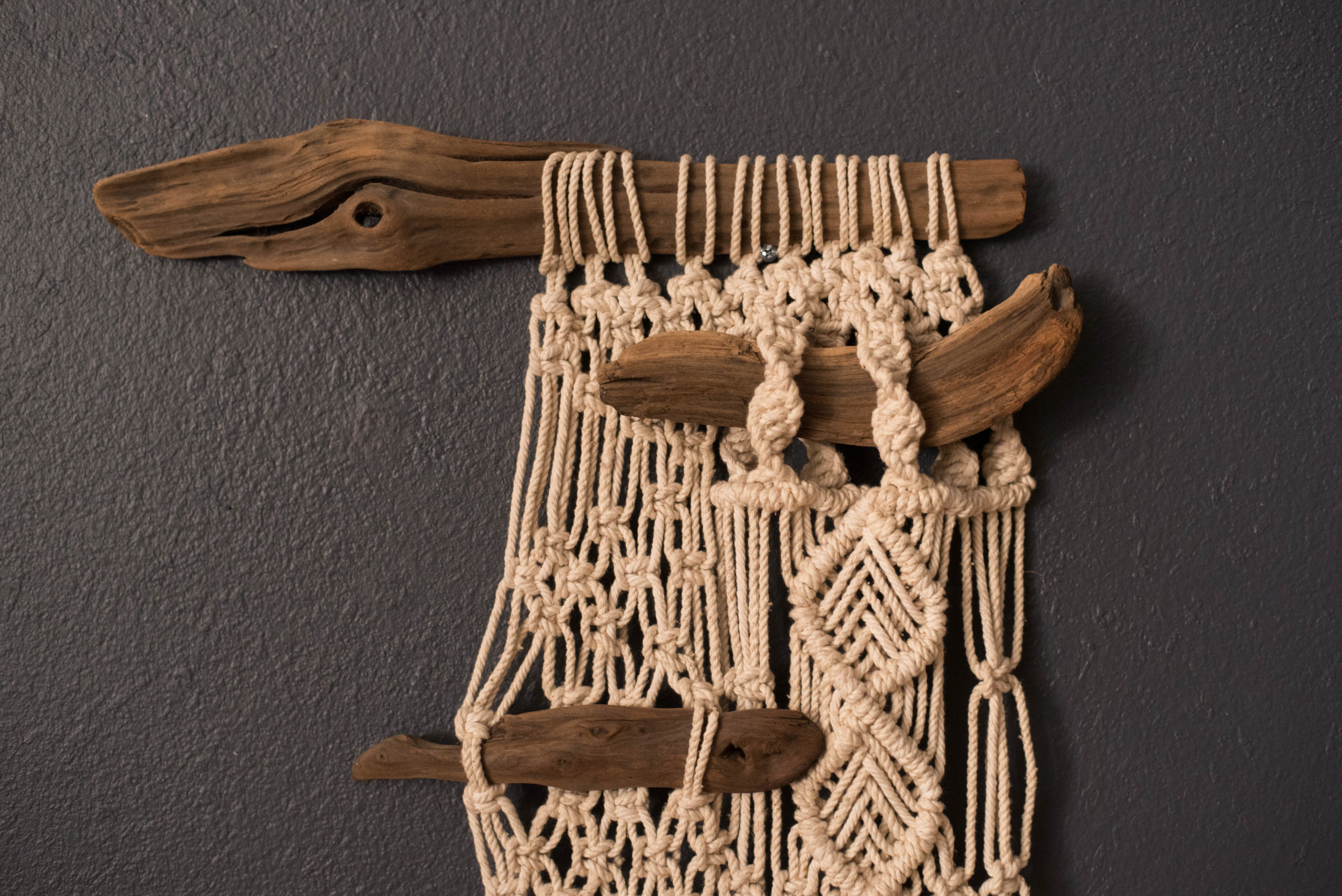 Vintage Macramé Driftwood Fiber Art Wall Hanging Tapestry
