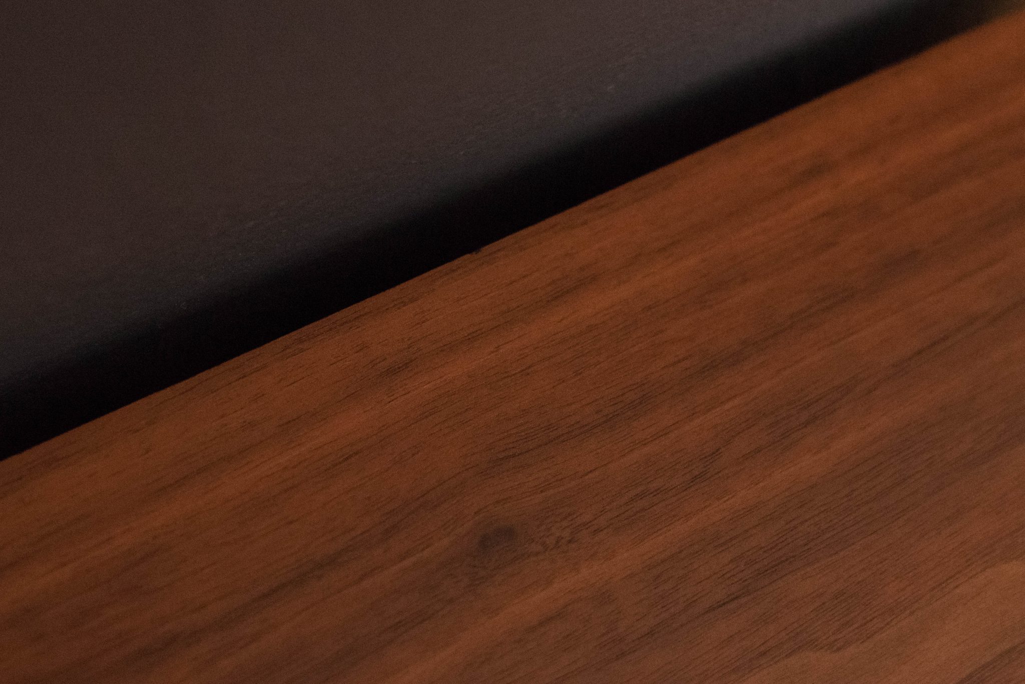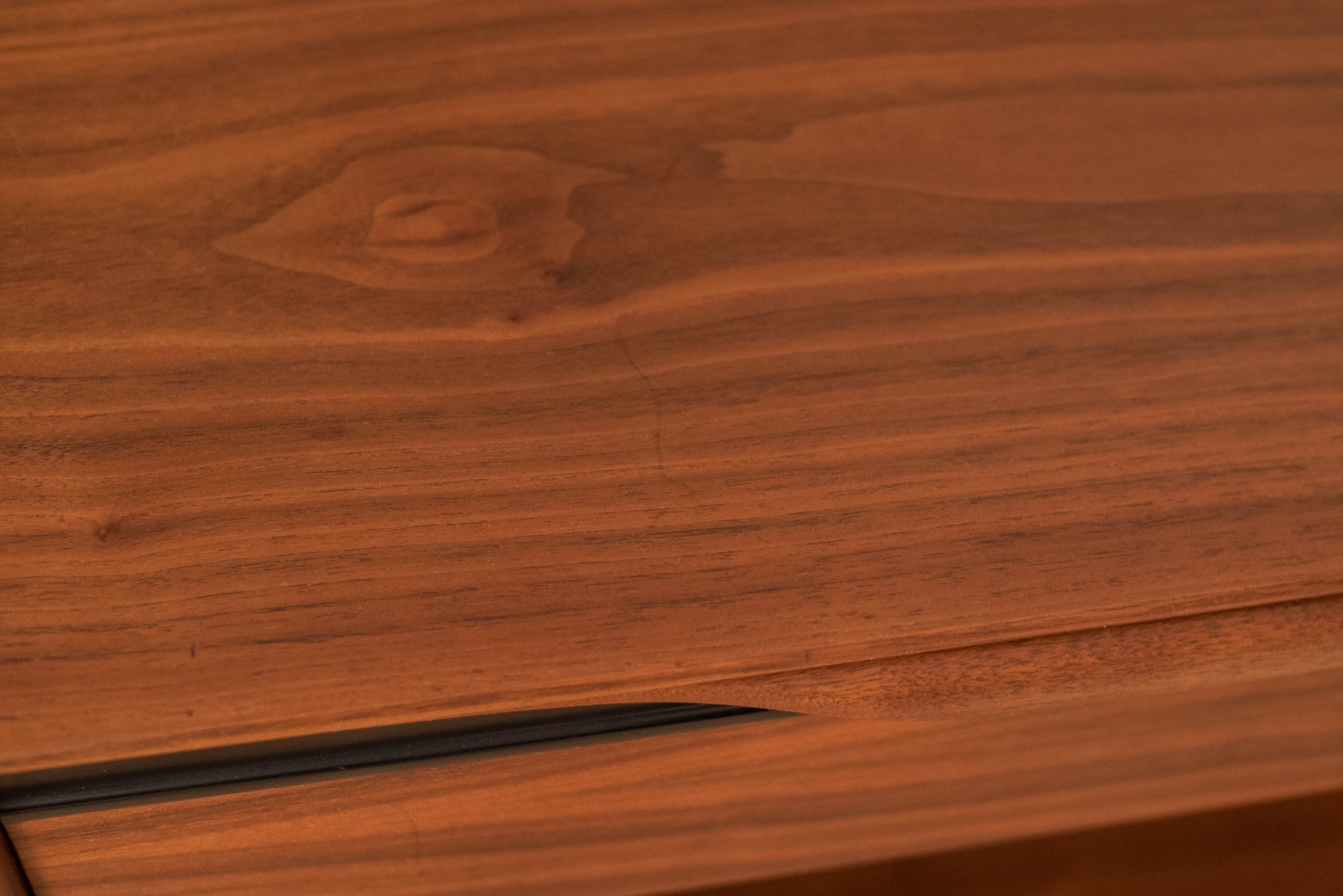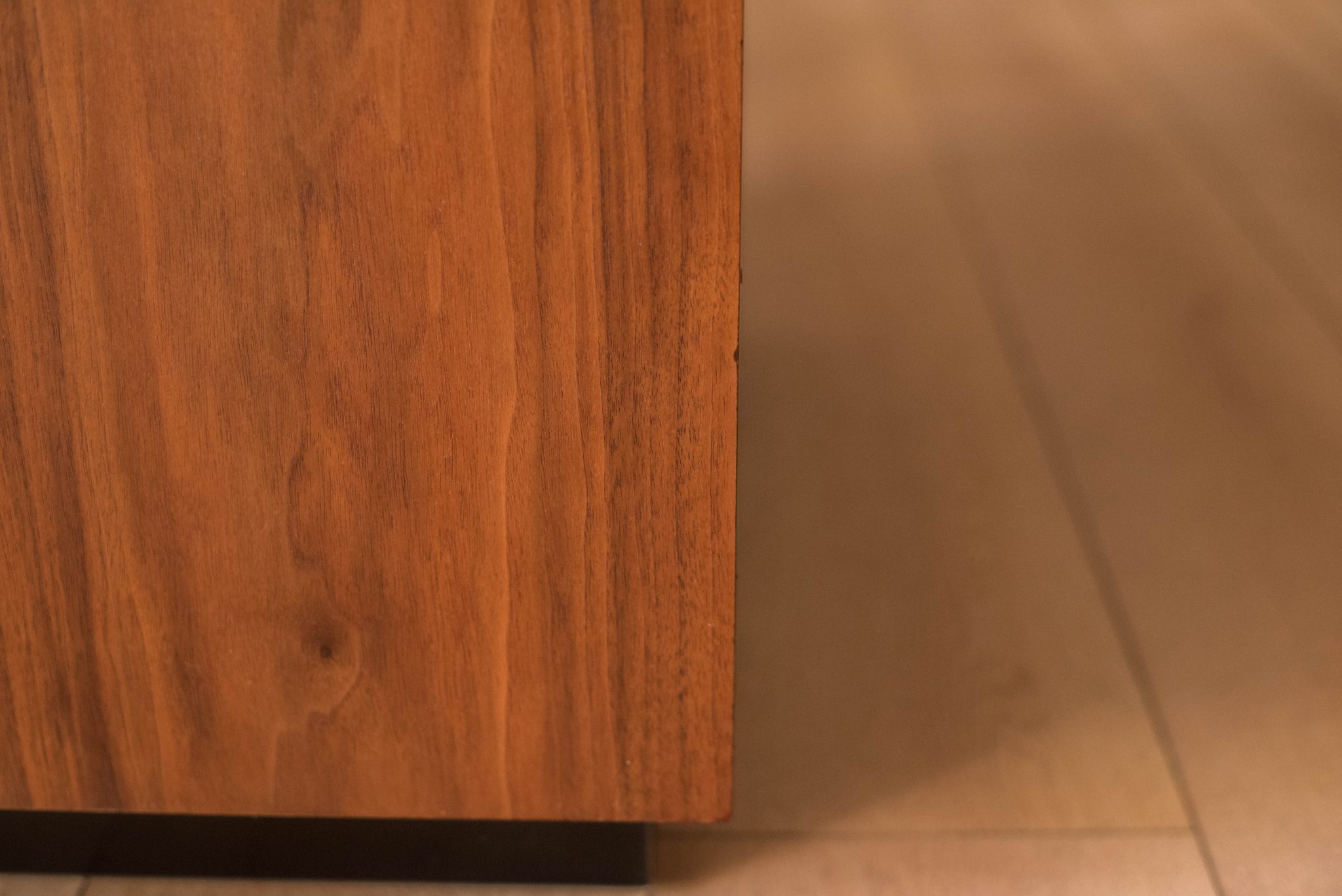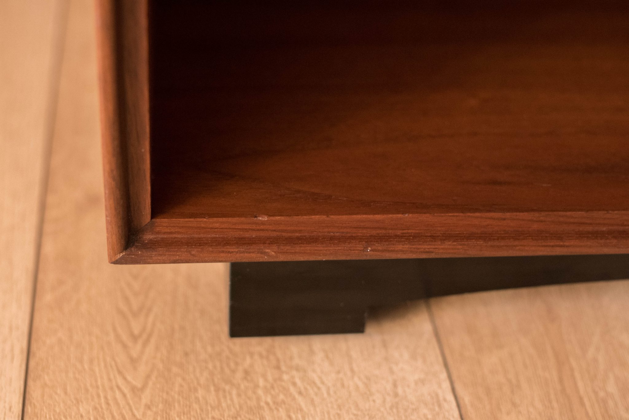 Mid-Century Modern pair of nightstands designed by John Kapel for Glenn of California in walnut. Includes one drawer and an adjustable shelf on each bedside table. Matching tall dresser chest available in separate listing.