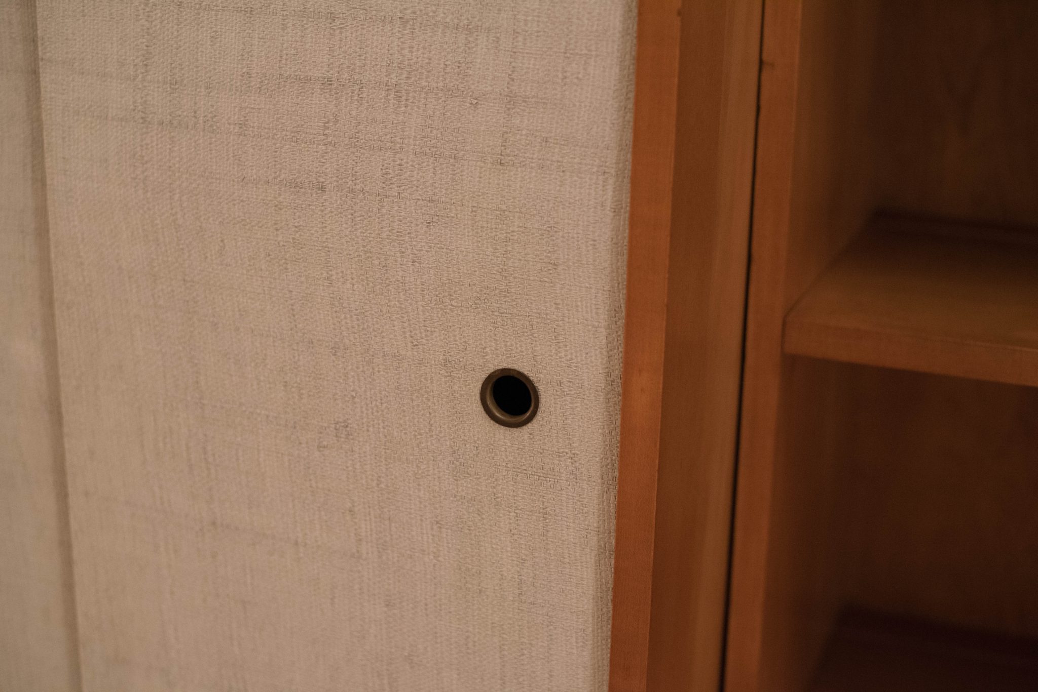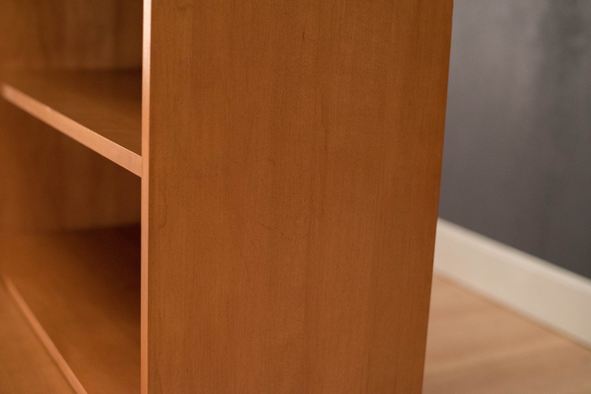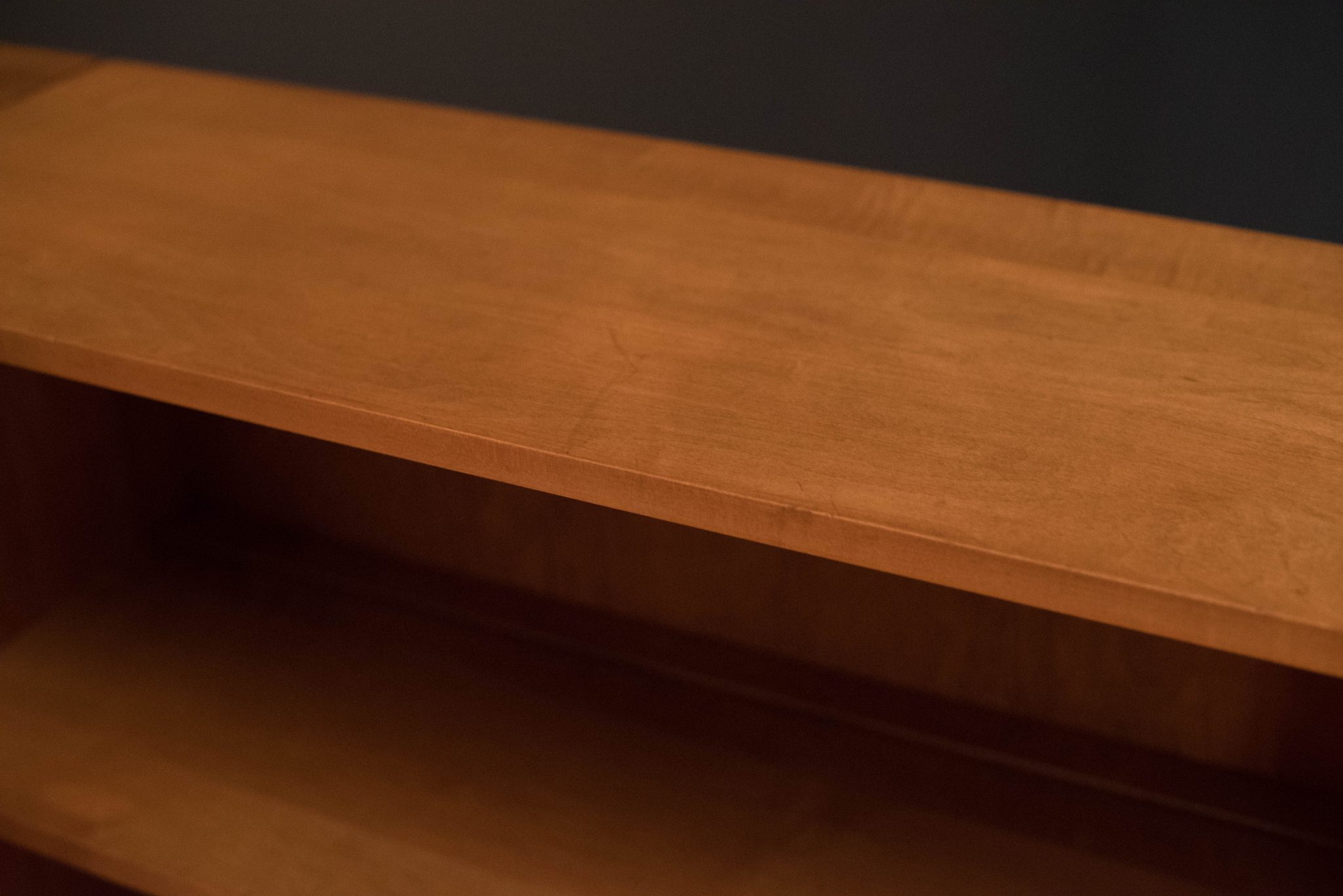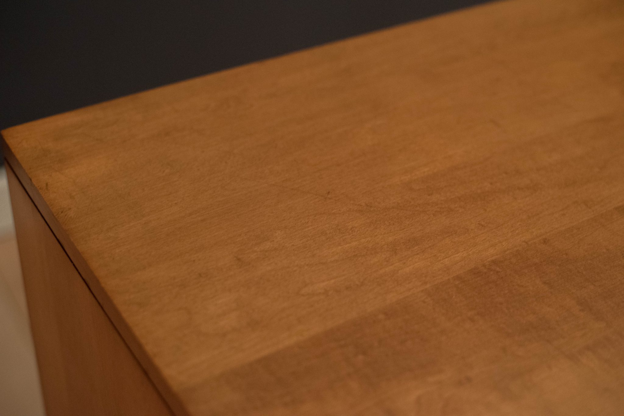Mid Century Planner Group Modular Credenza by Paul McCobb for Winchedon Furniture. This set comes in three separate pieces and can be configured in any arrangement. Includes a fixed shelf cabinet with the original white grass cloth sliding doors, table bench and open bookcase with fixed shelving.