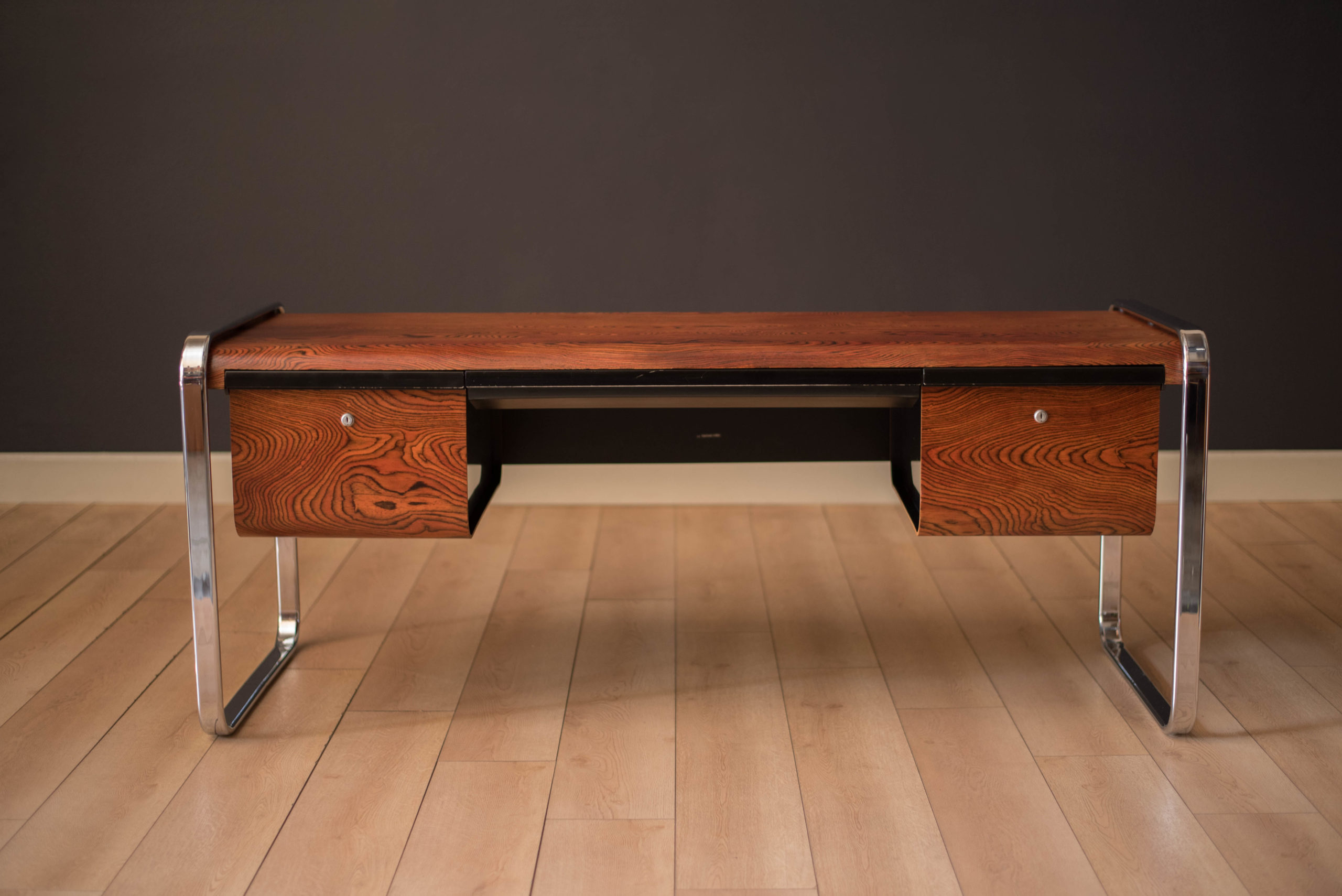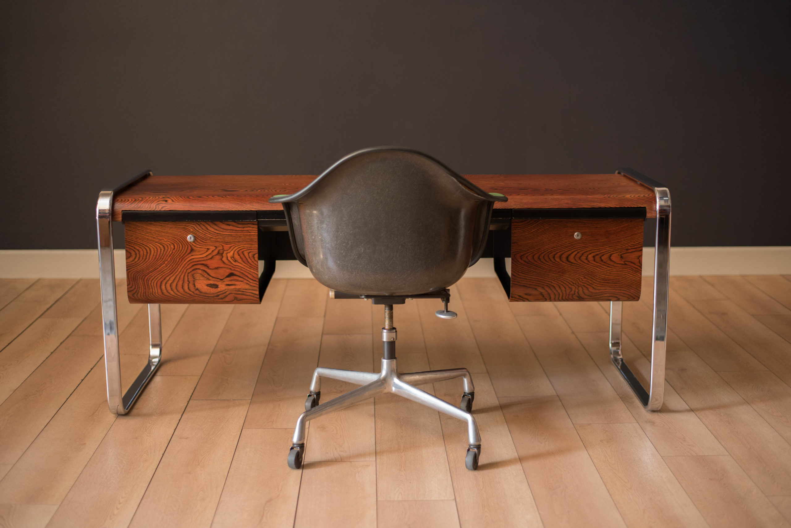Vintage Peter Protzman Zebrawood and Chrome Executive Desk for Herman Miller