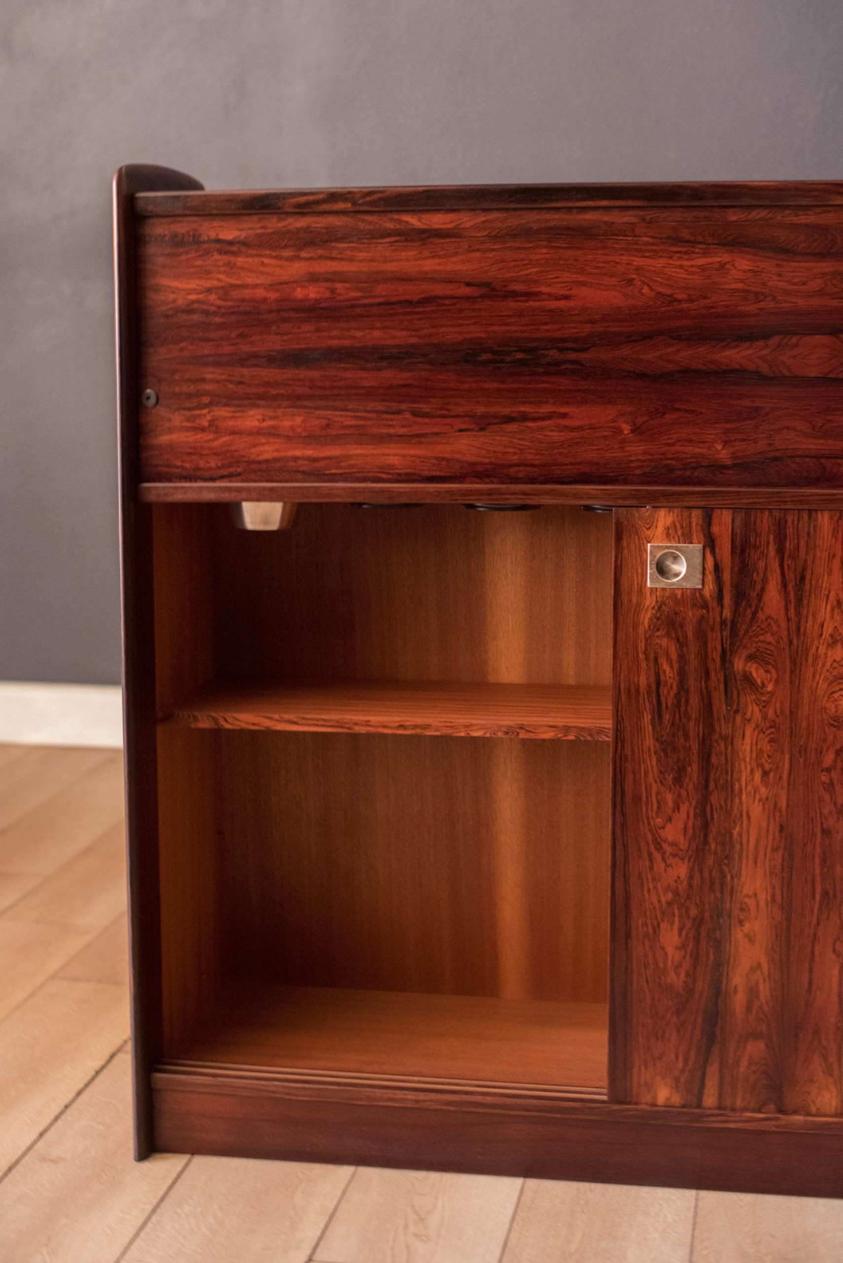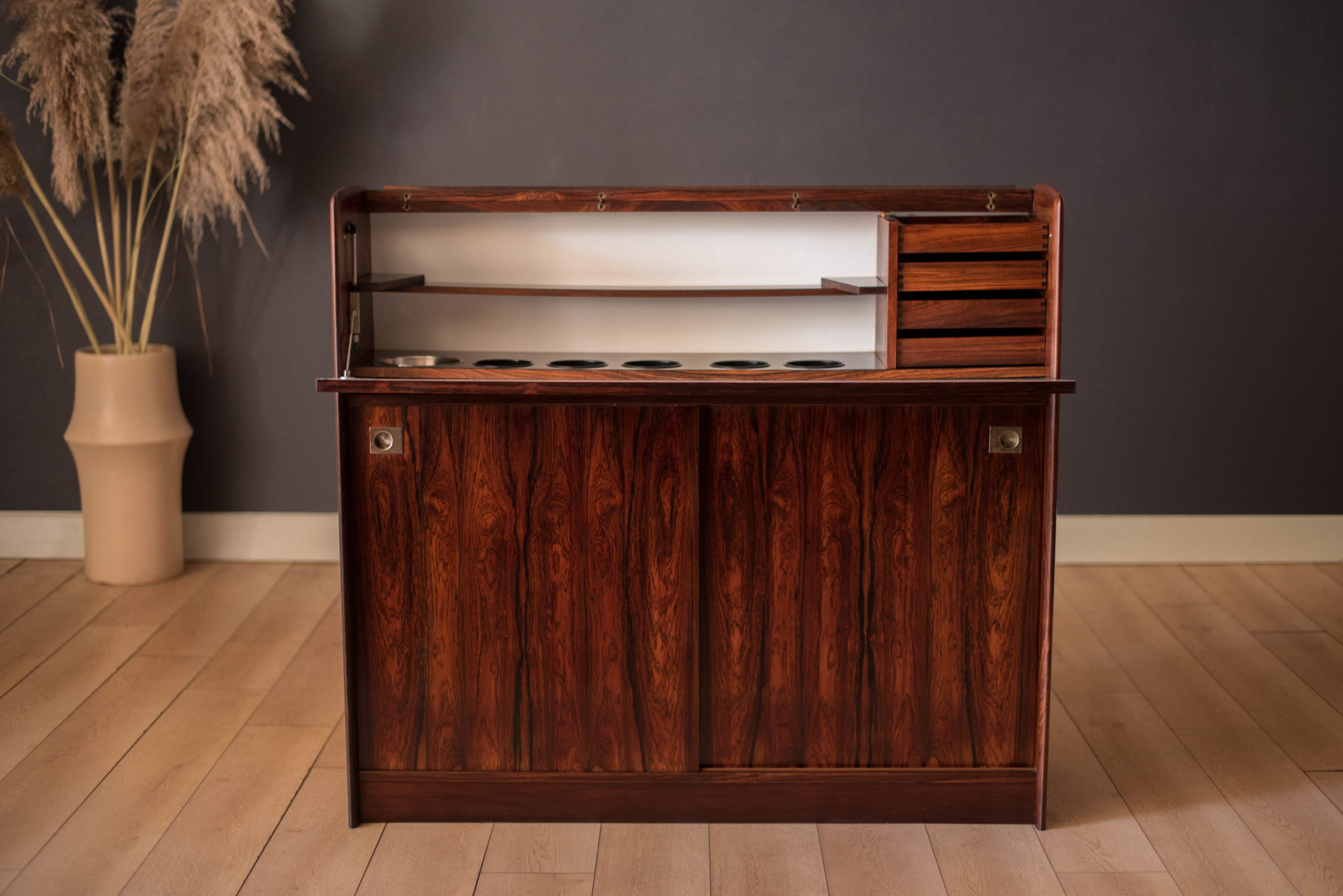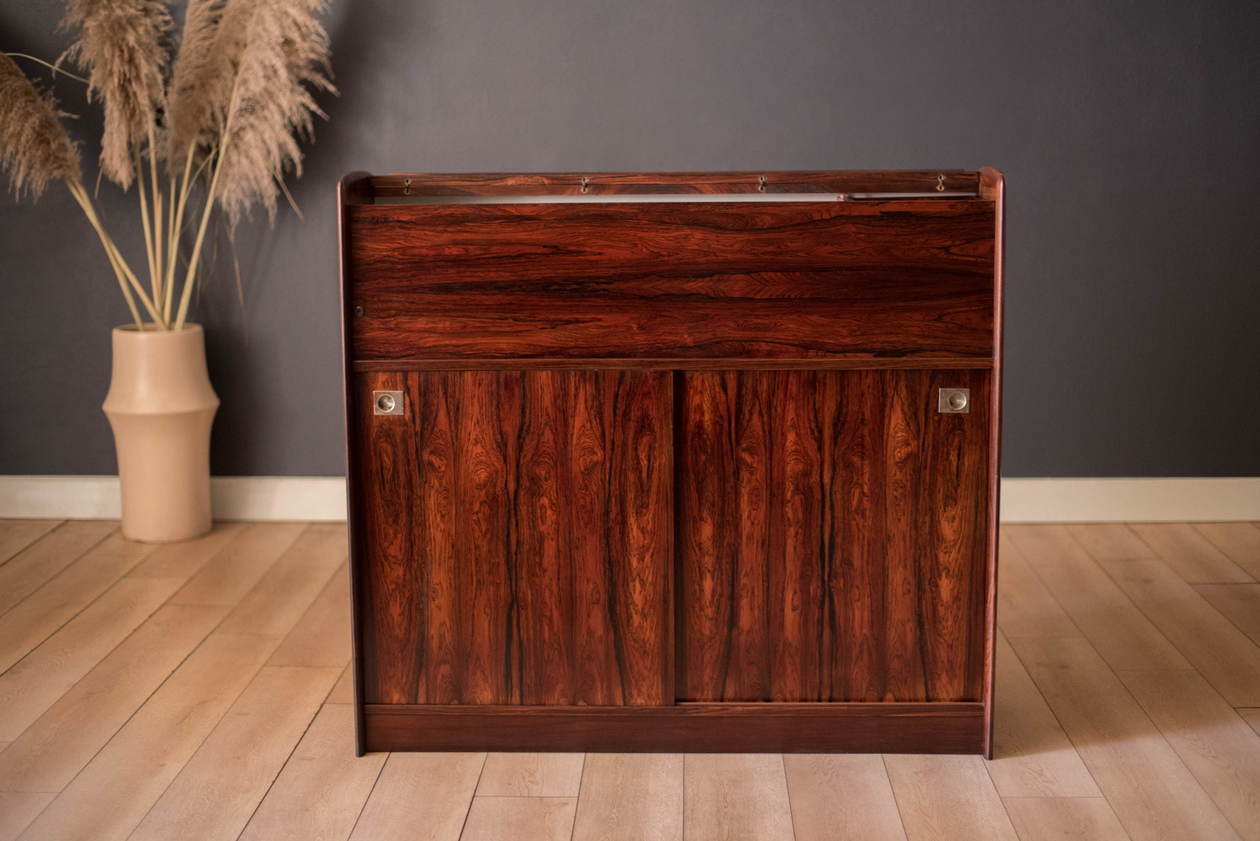 Vintage Rosewood Danish Dry Bar Credenza Cabinet