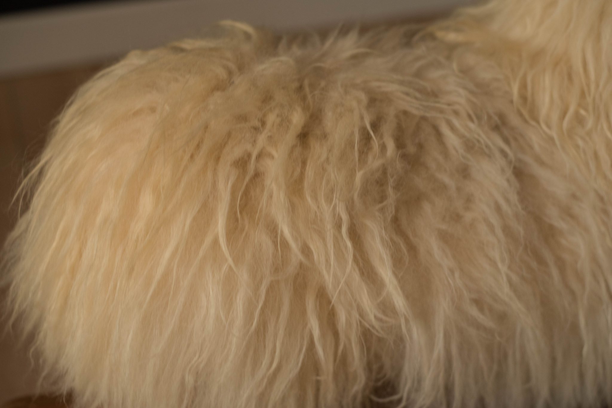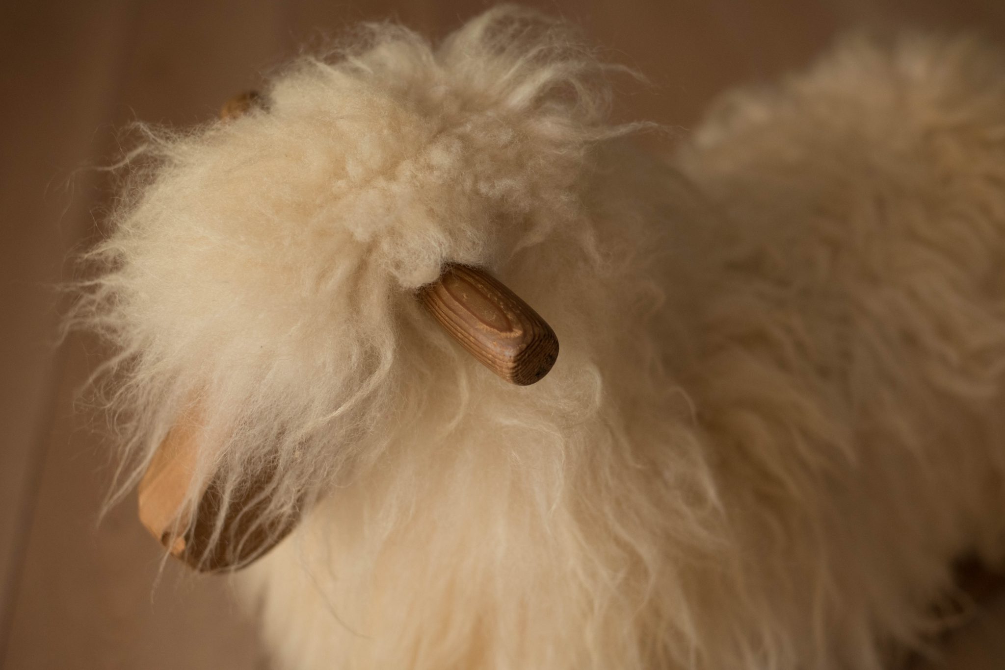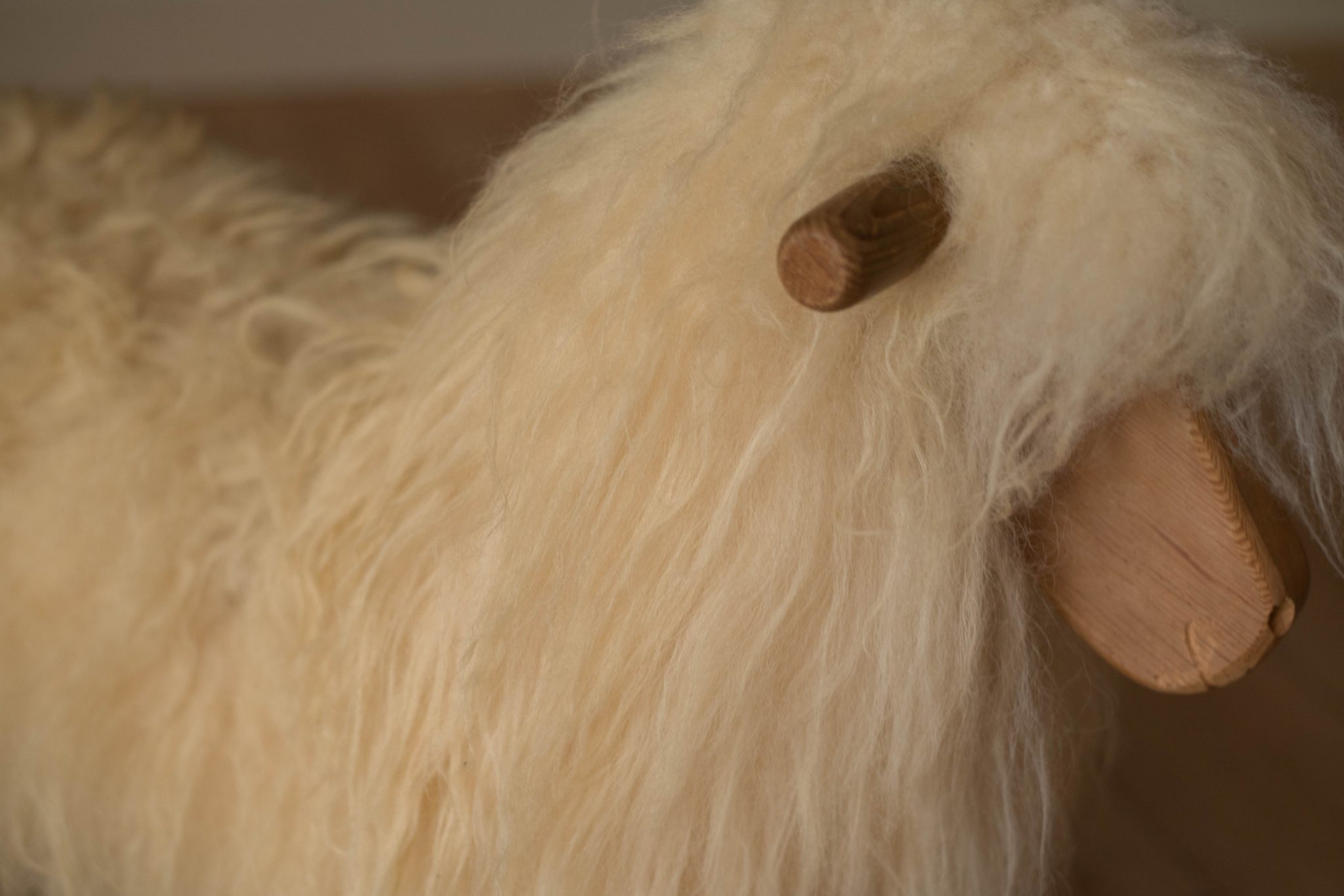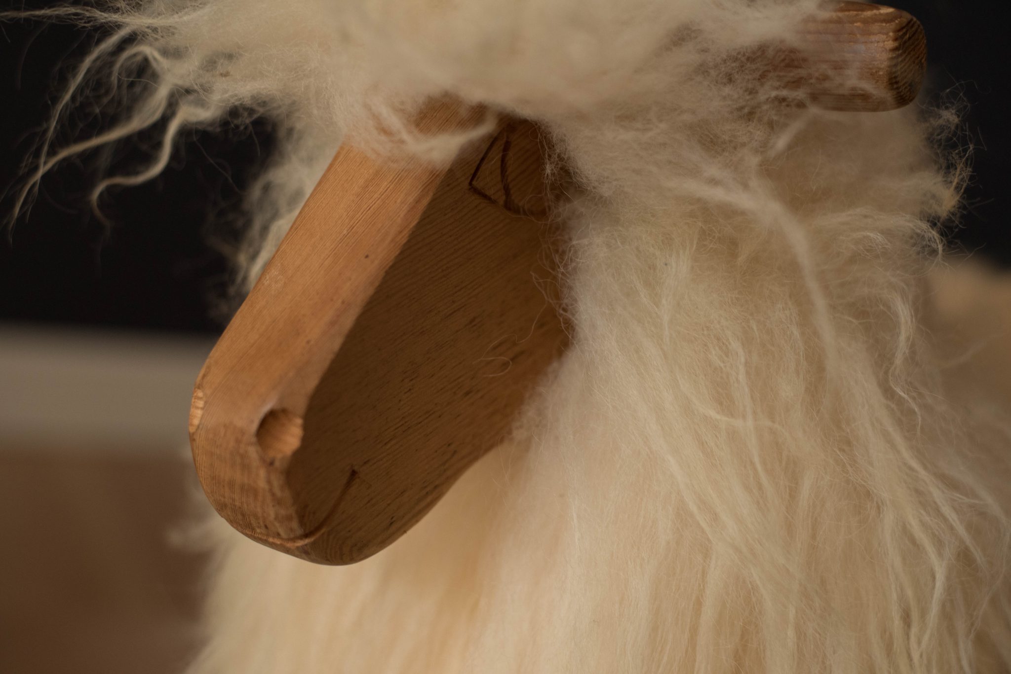 Vintage children’s rocker sheep designed by Povl Kjer. This decorative animal sculpture is a playful conversation for any space. Handcrafted in genuine wool and solid pine.