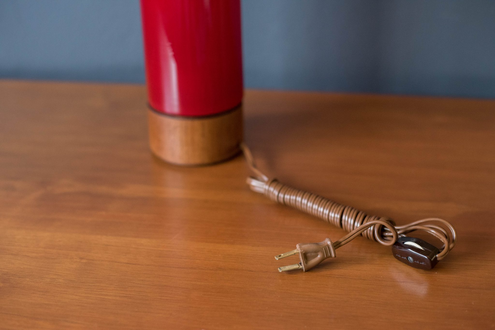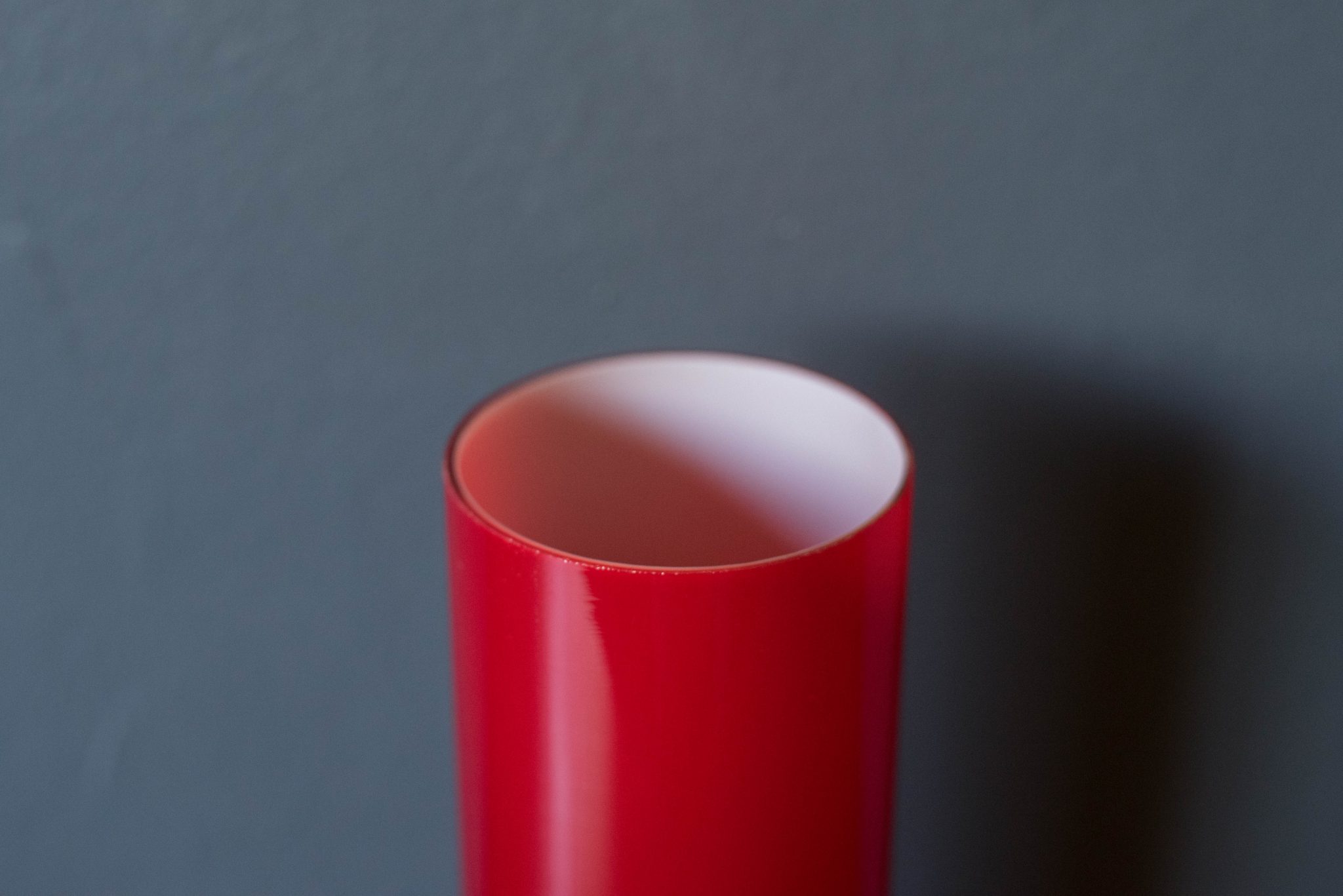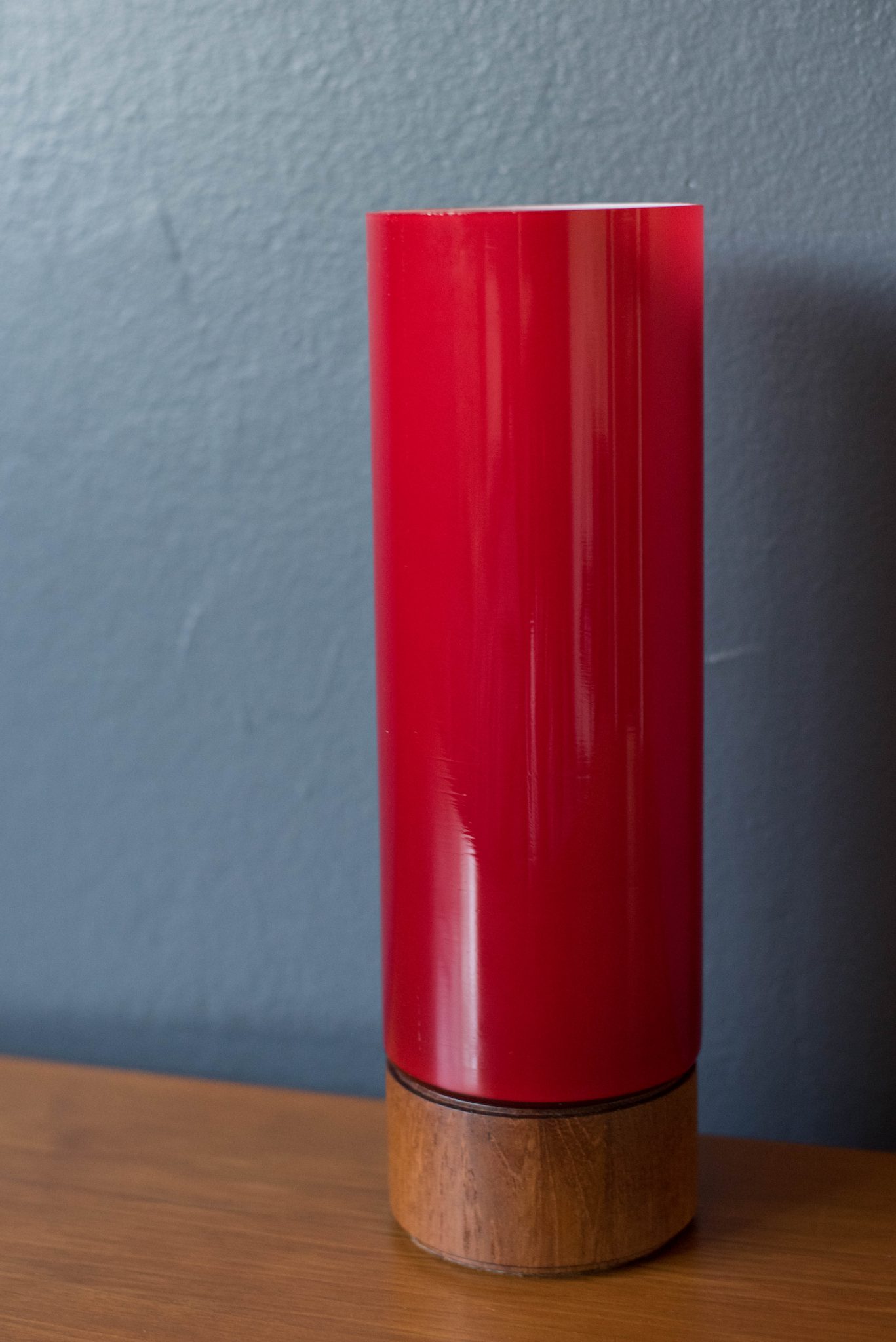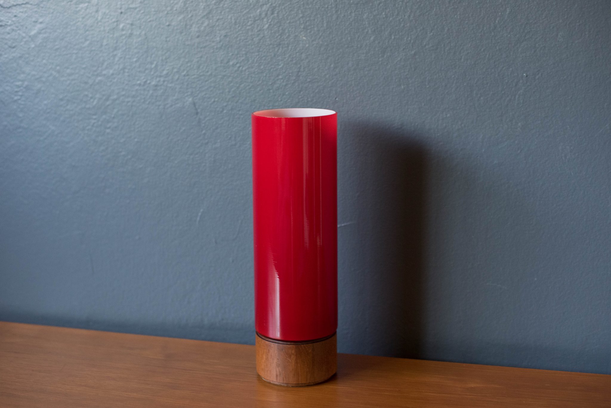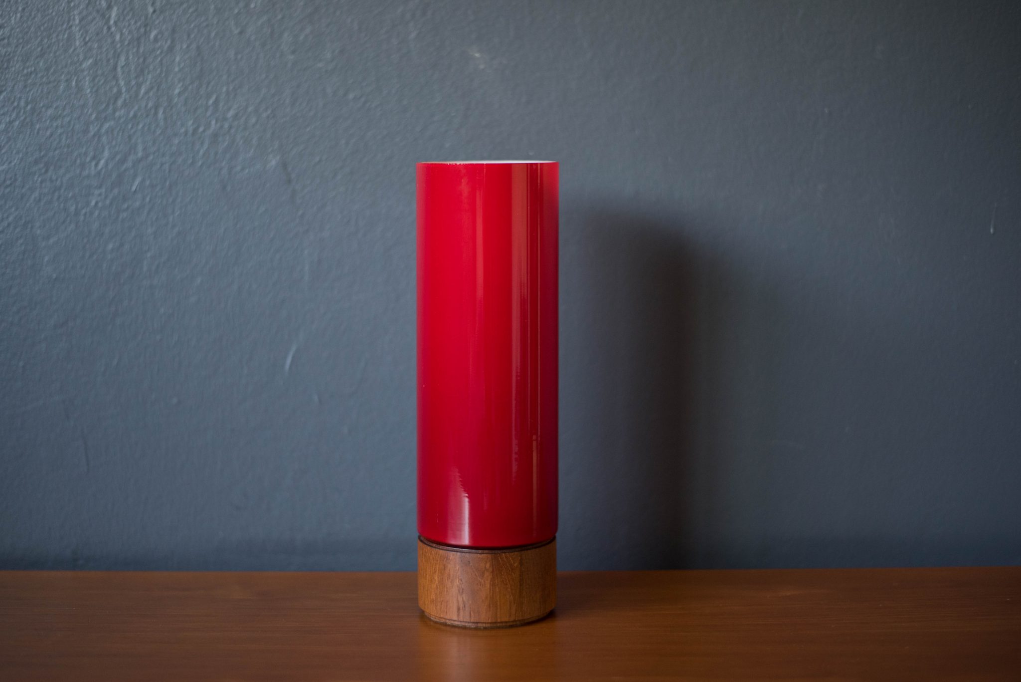 Vintage Scandinavian Red Glass Cylinder Table Lamp