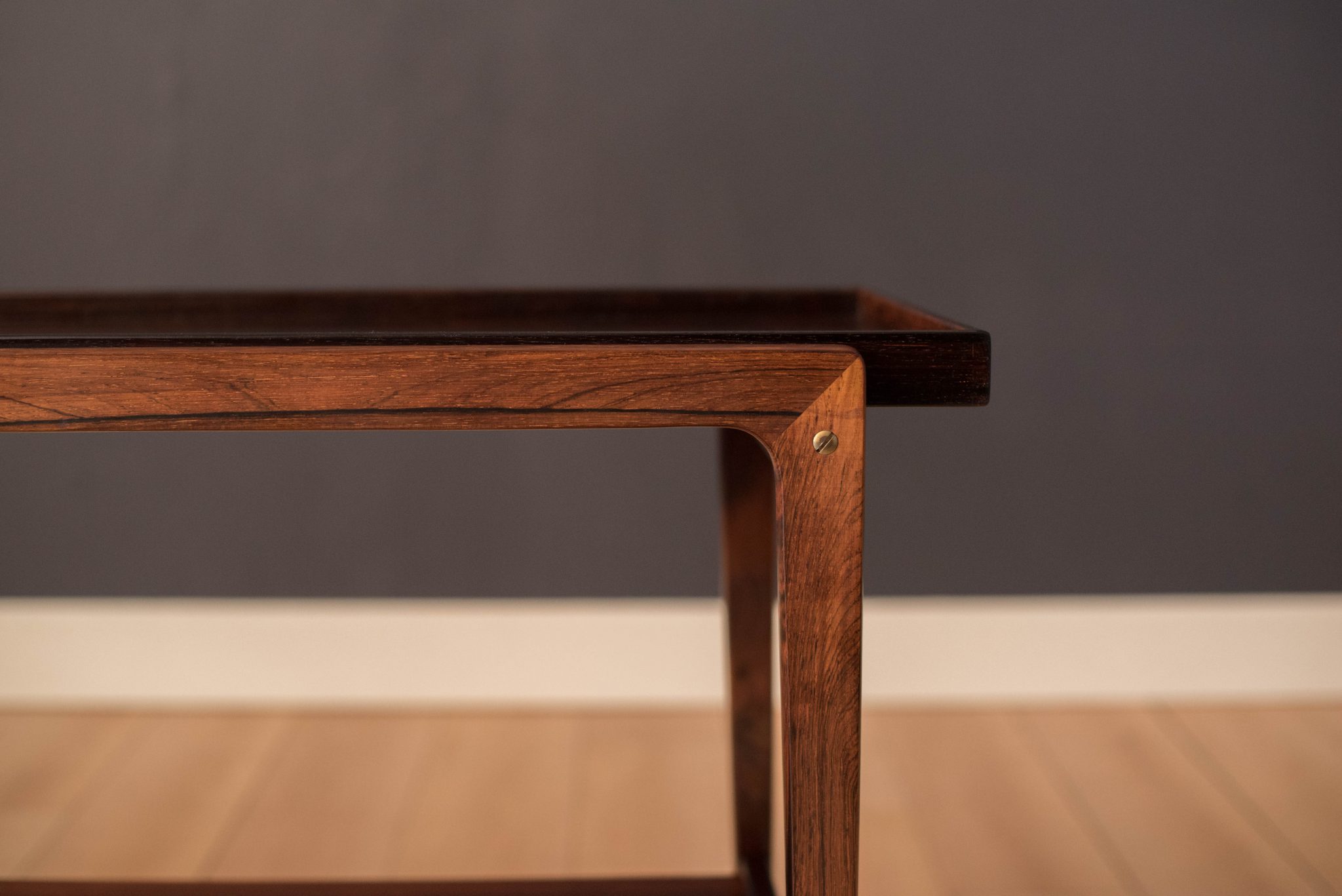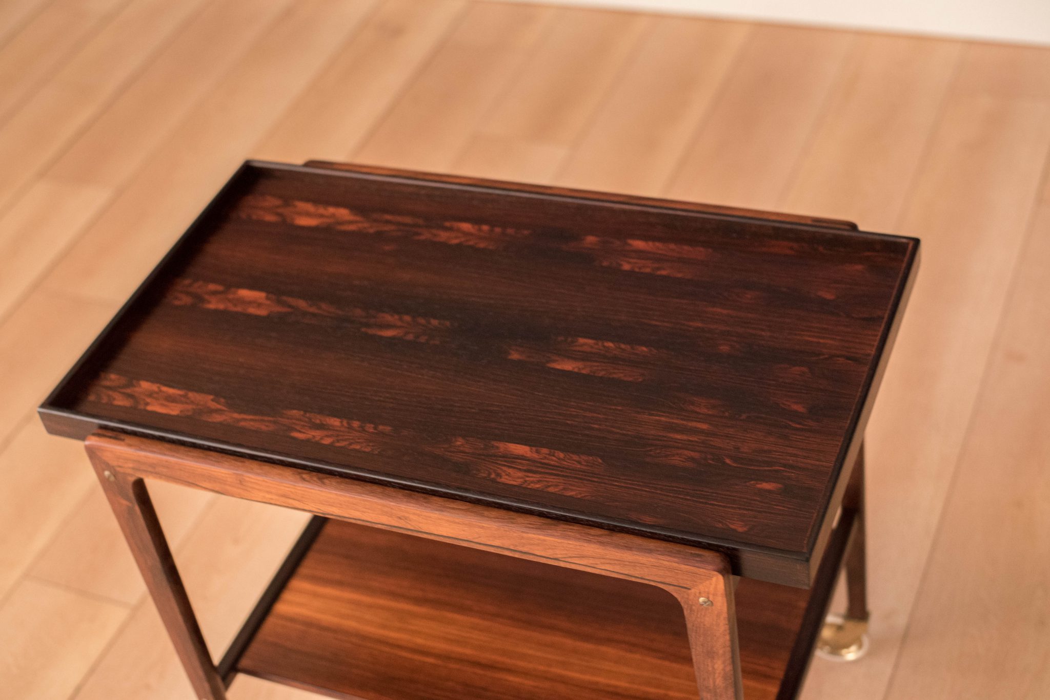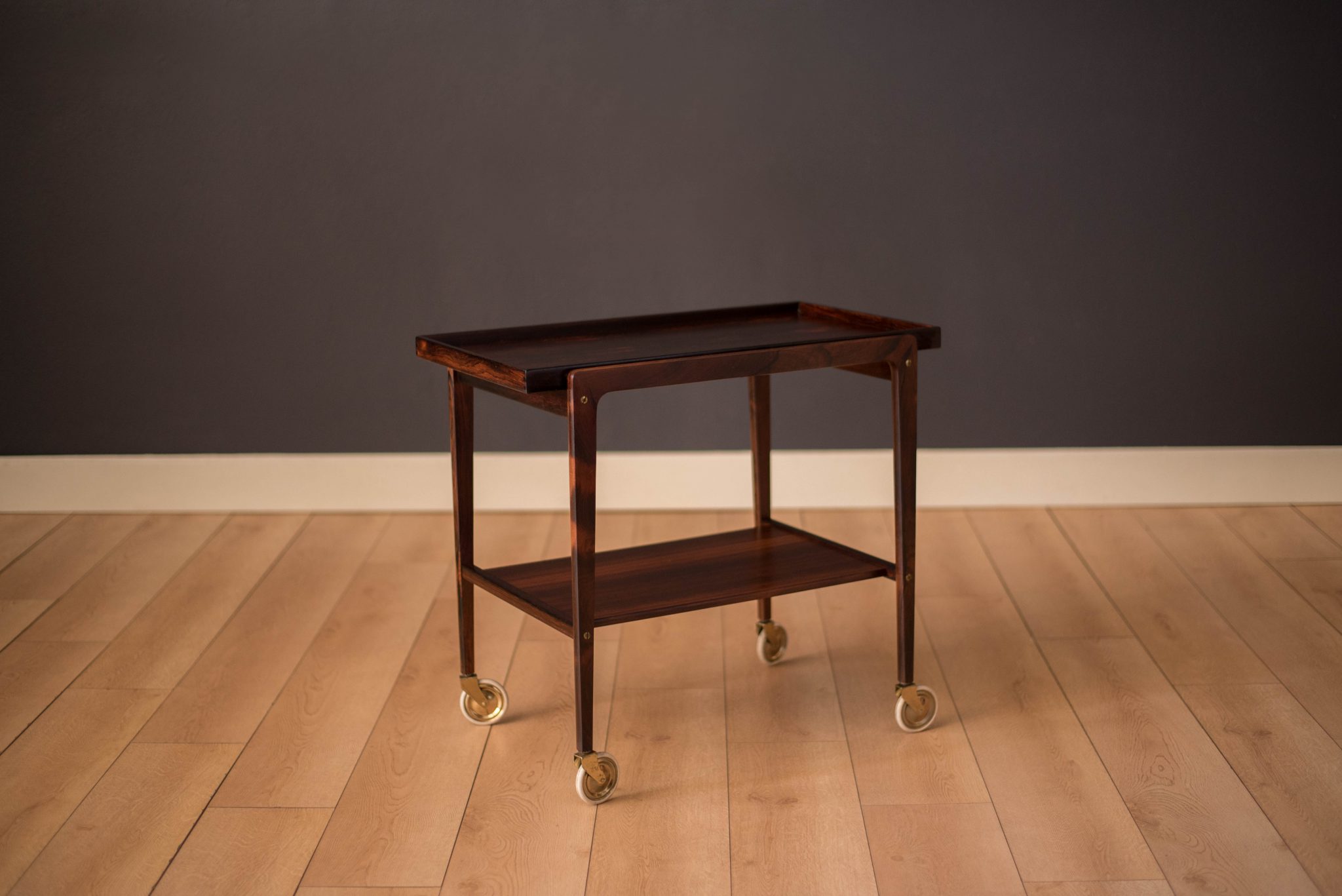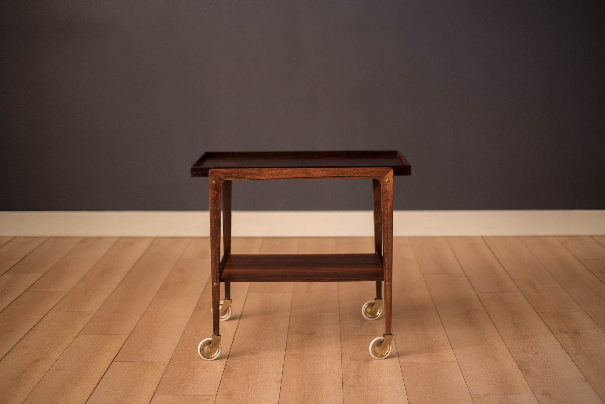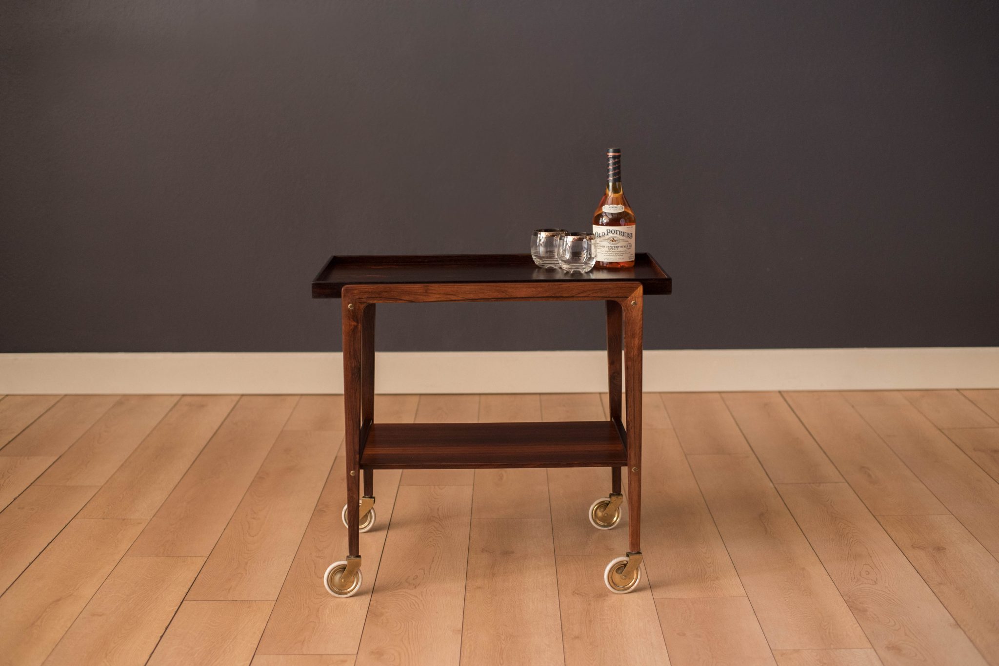 Vintage Scandinavian Rosewood Two-Tier Serving Bar Cart