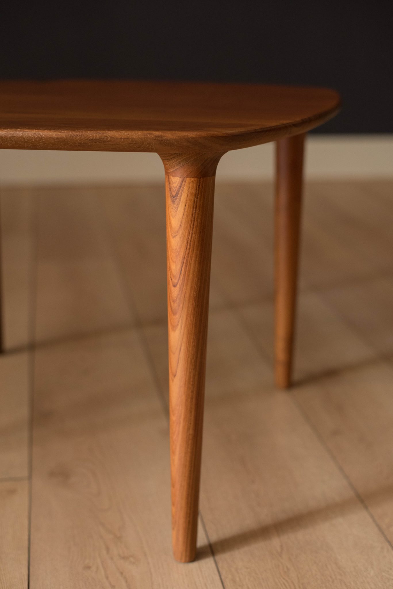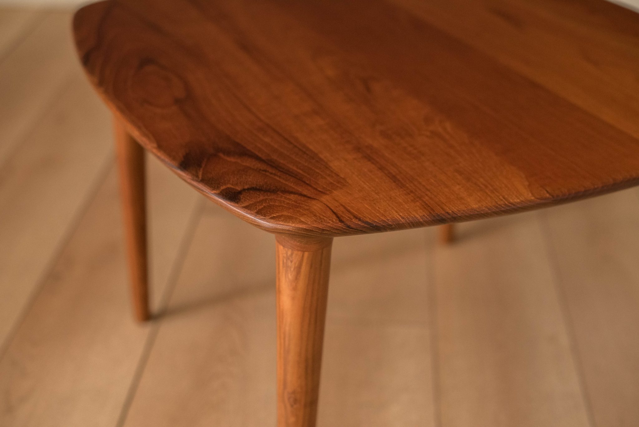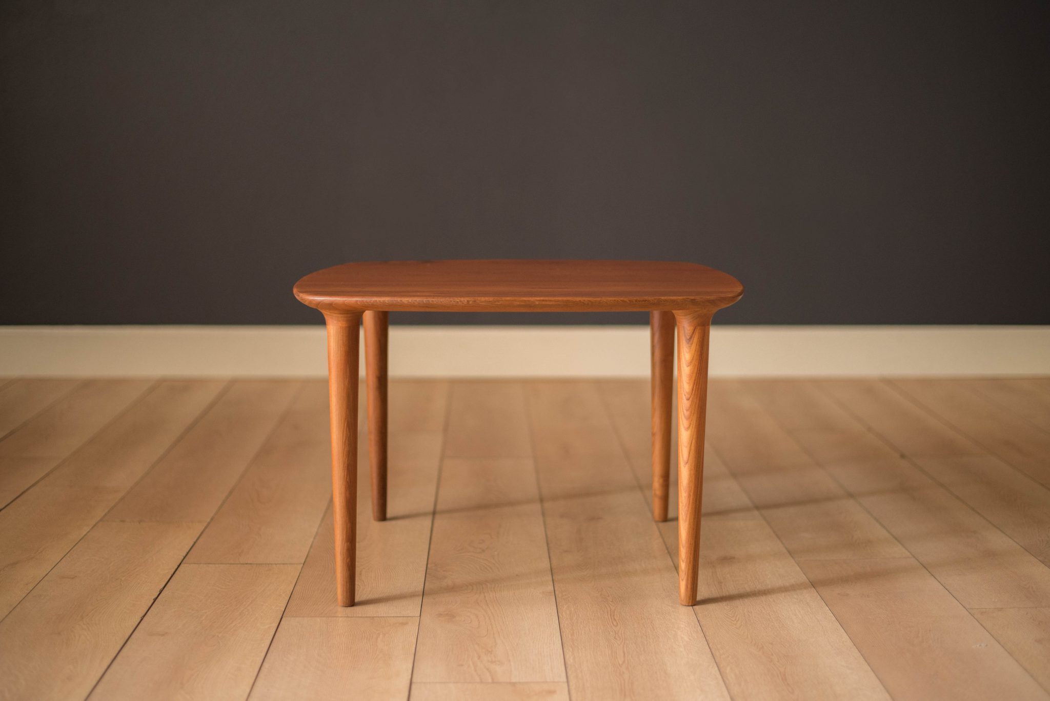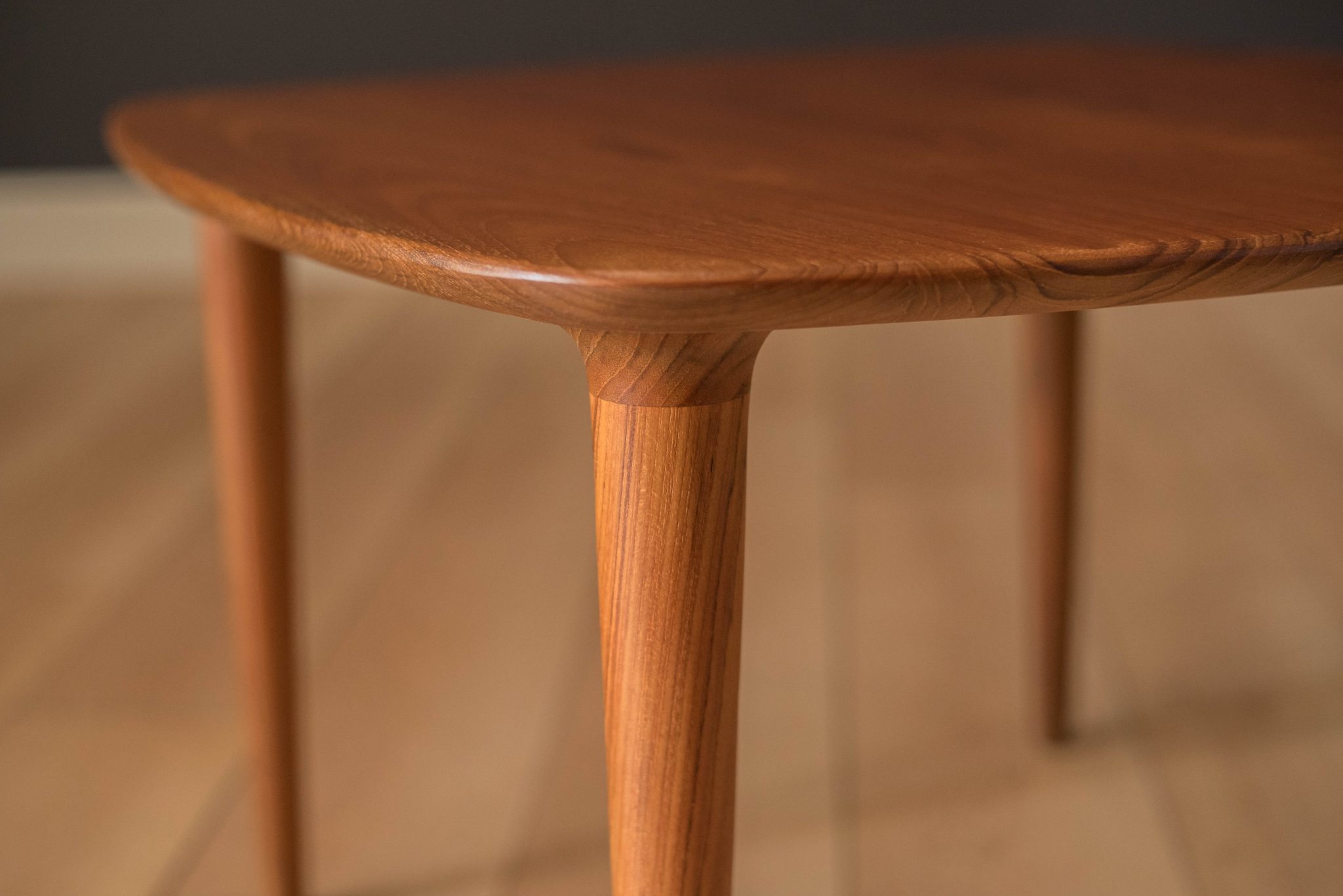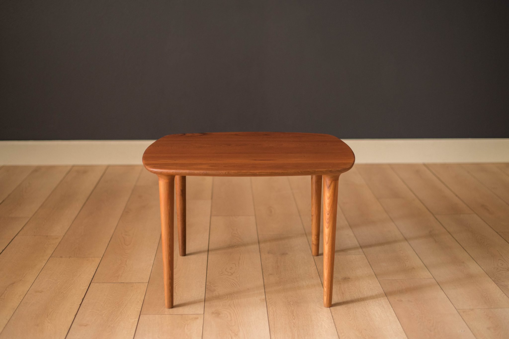 Mid-Century Modern side table manufactured by Gustav Bahus, Norway. This piece is constructed of solid planked teak featuring rounded edges and sculpted legs. Perfect to use as an end table or coffee table.