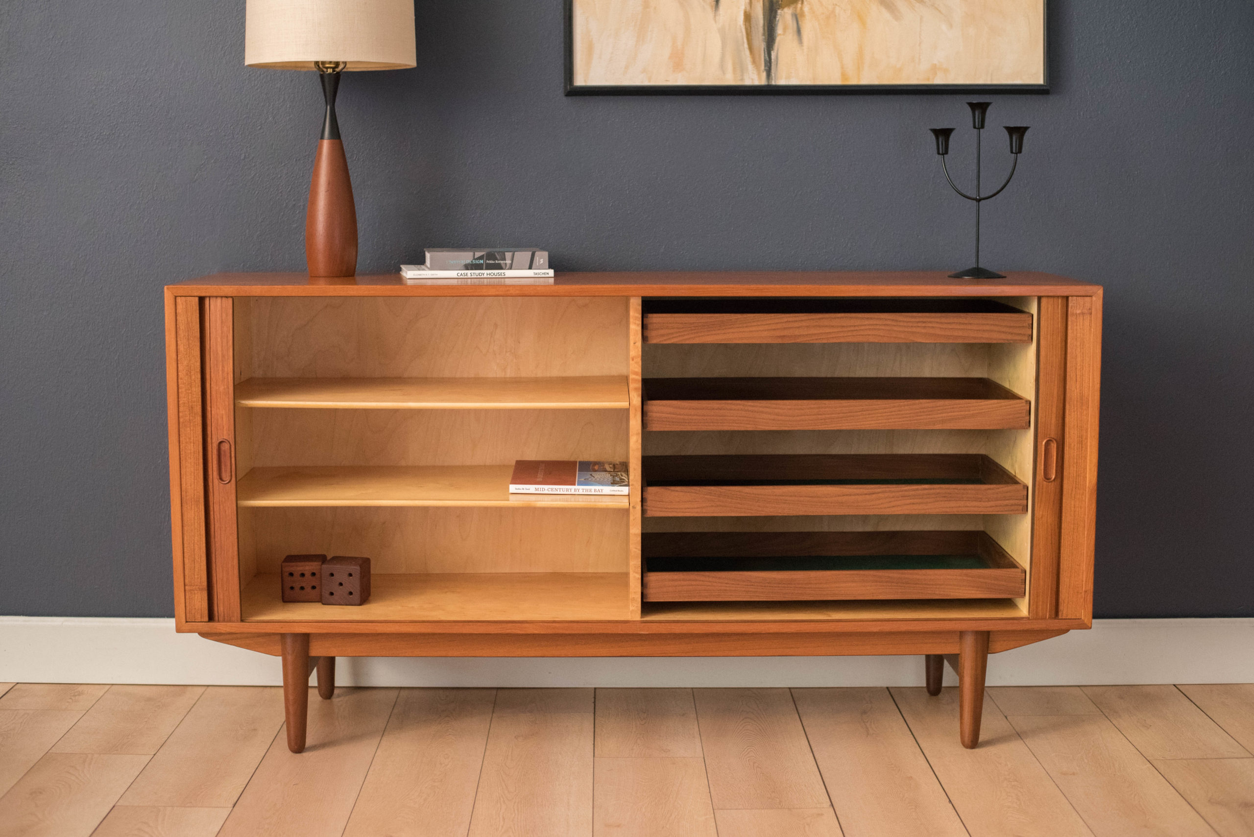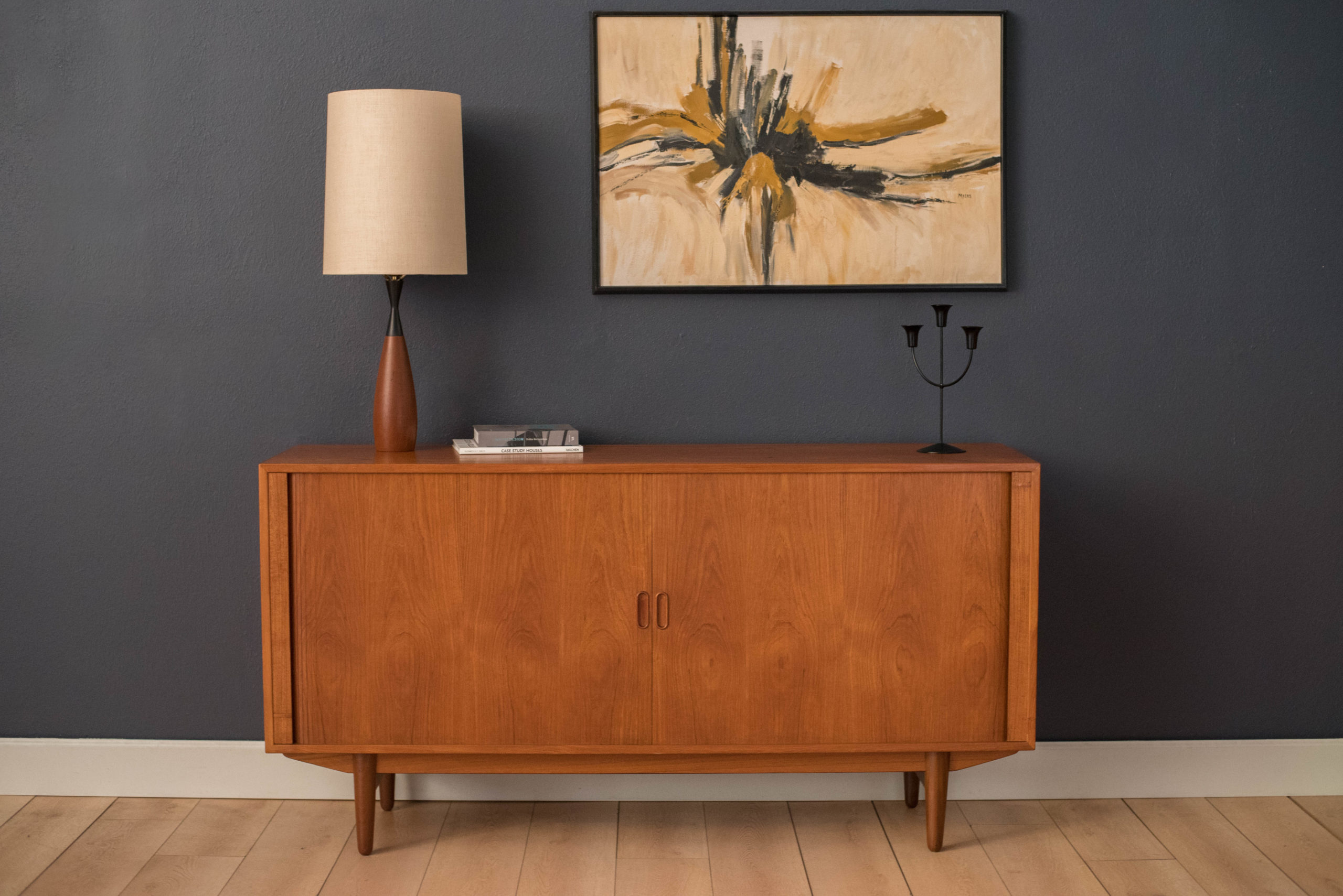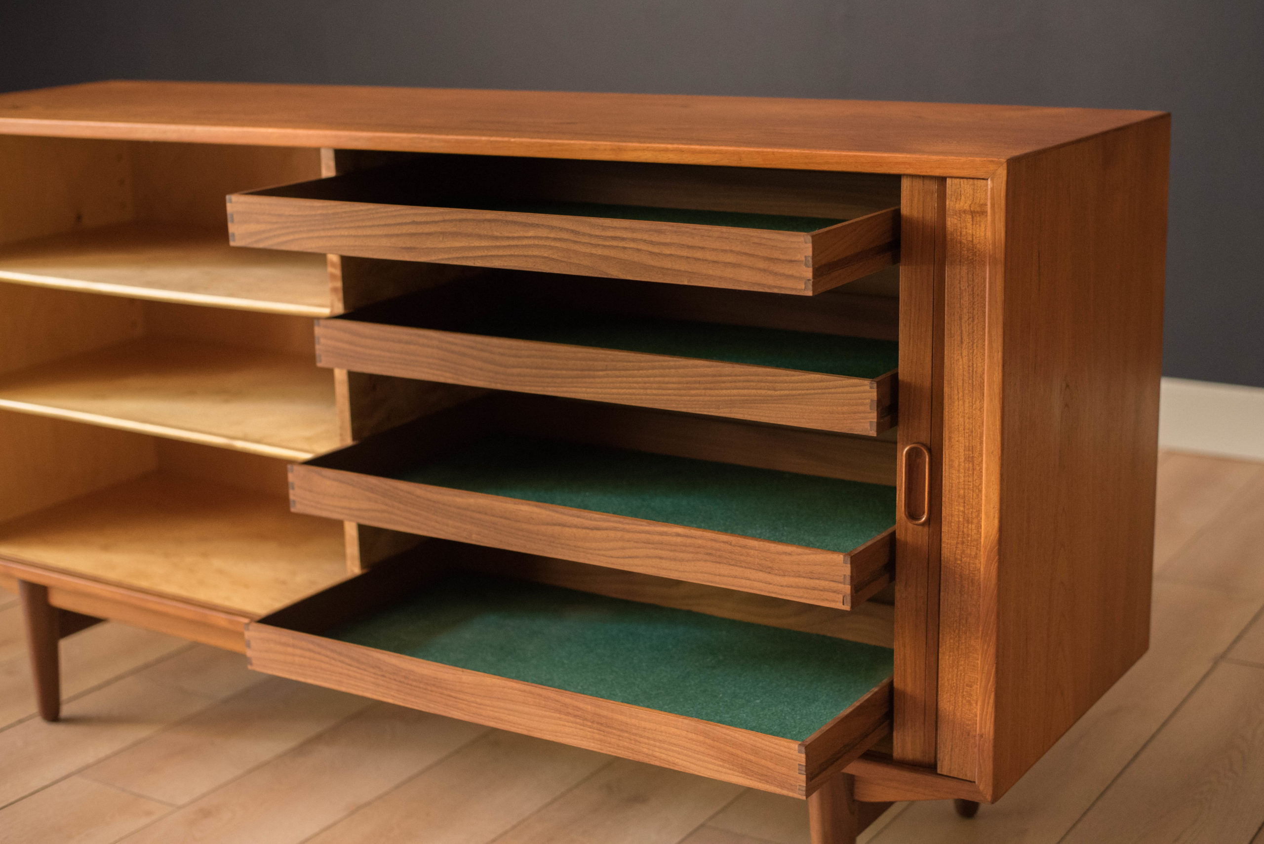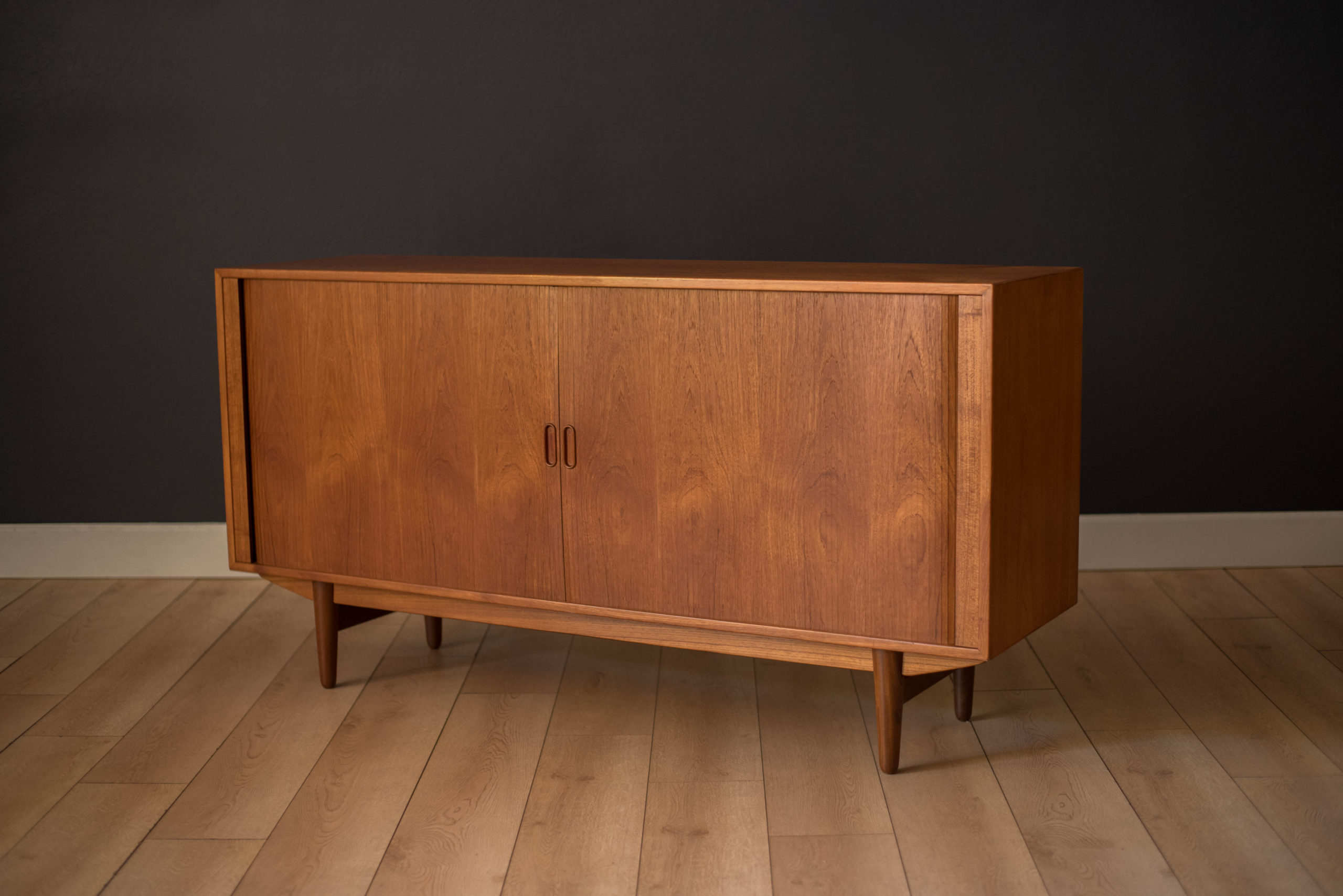 Vintage Scandinavian Teak Tambour Door Sideboard Credenza