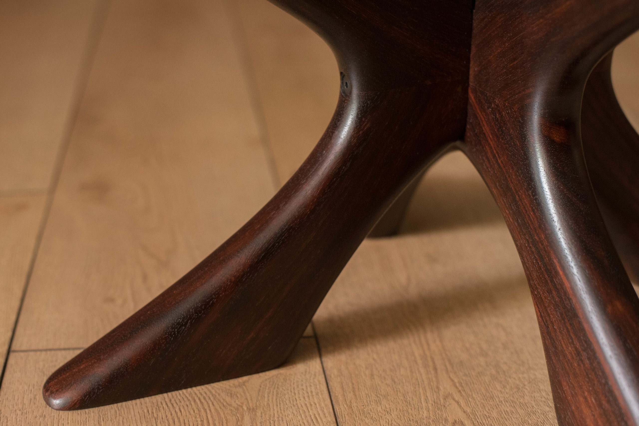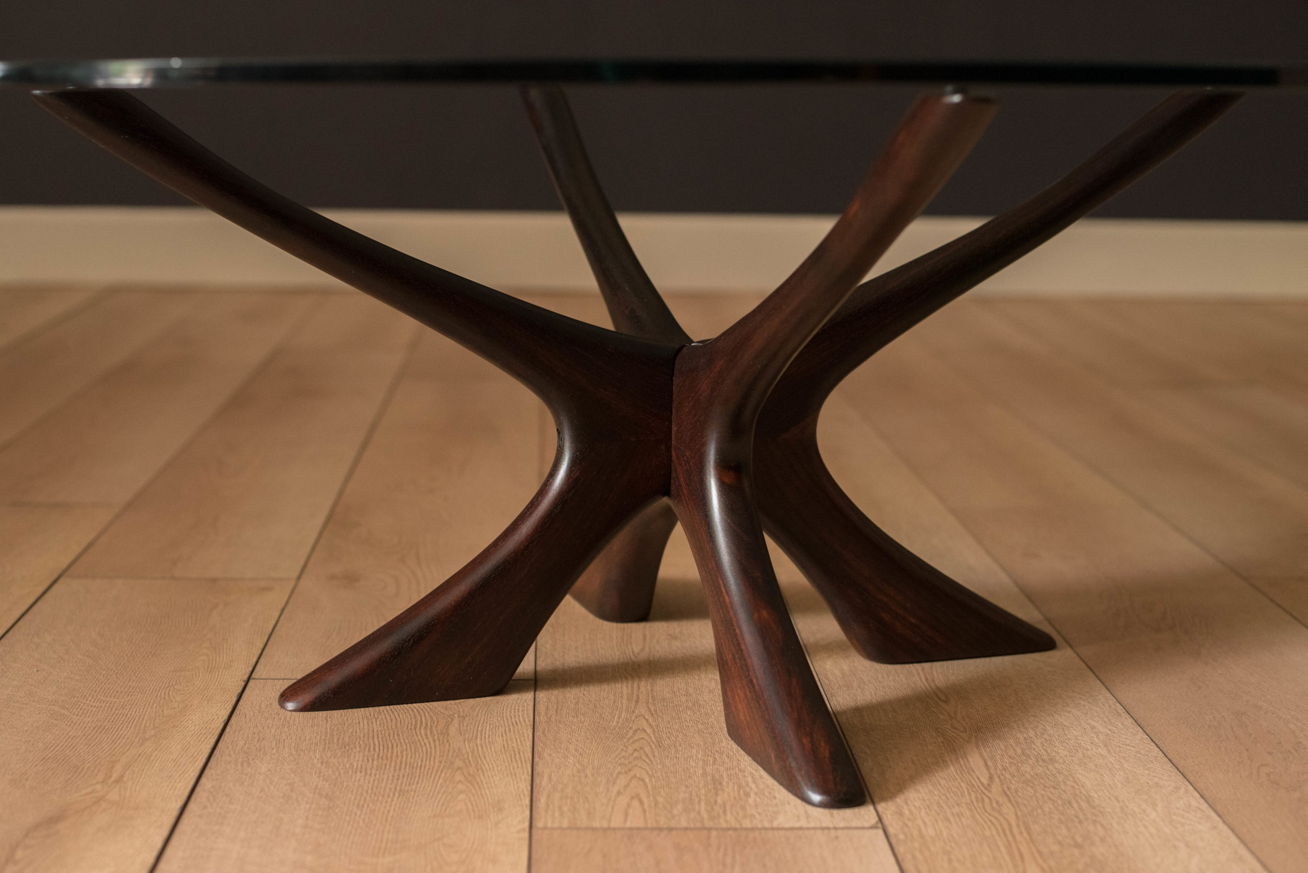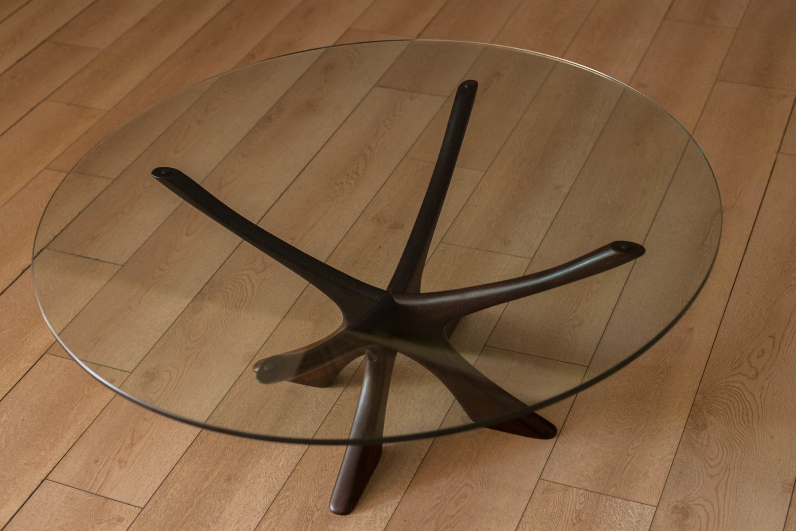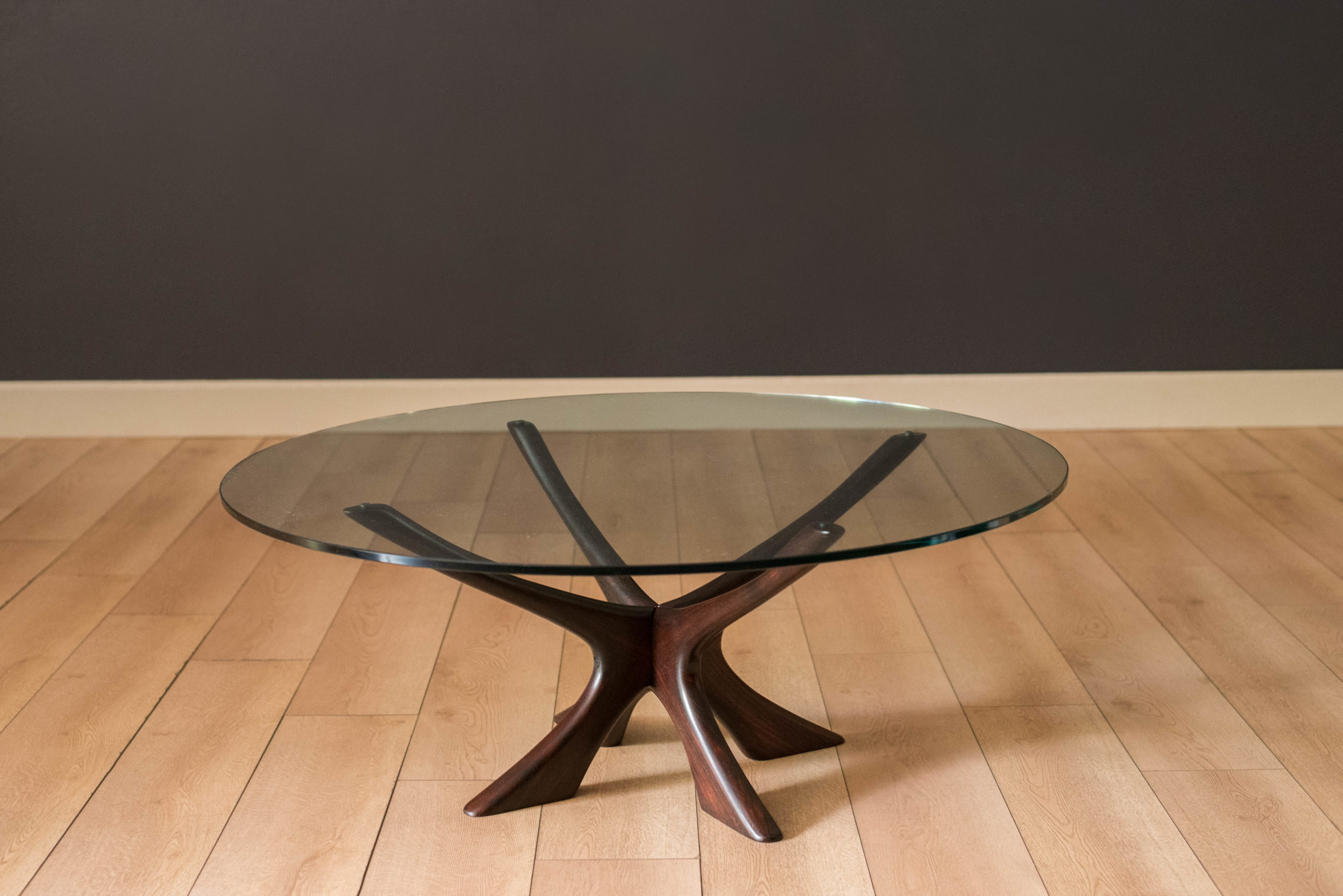 Mid-Century Modern coffee table designed by Illum Wikkelso for CFC Silkeborg, Denmark circa 1960s. Features a sculptural solid rosewood base and the original round glass top that showcases from any angle in the room. In good condition with wear such as scratches on the glass. See photos.