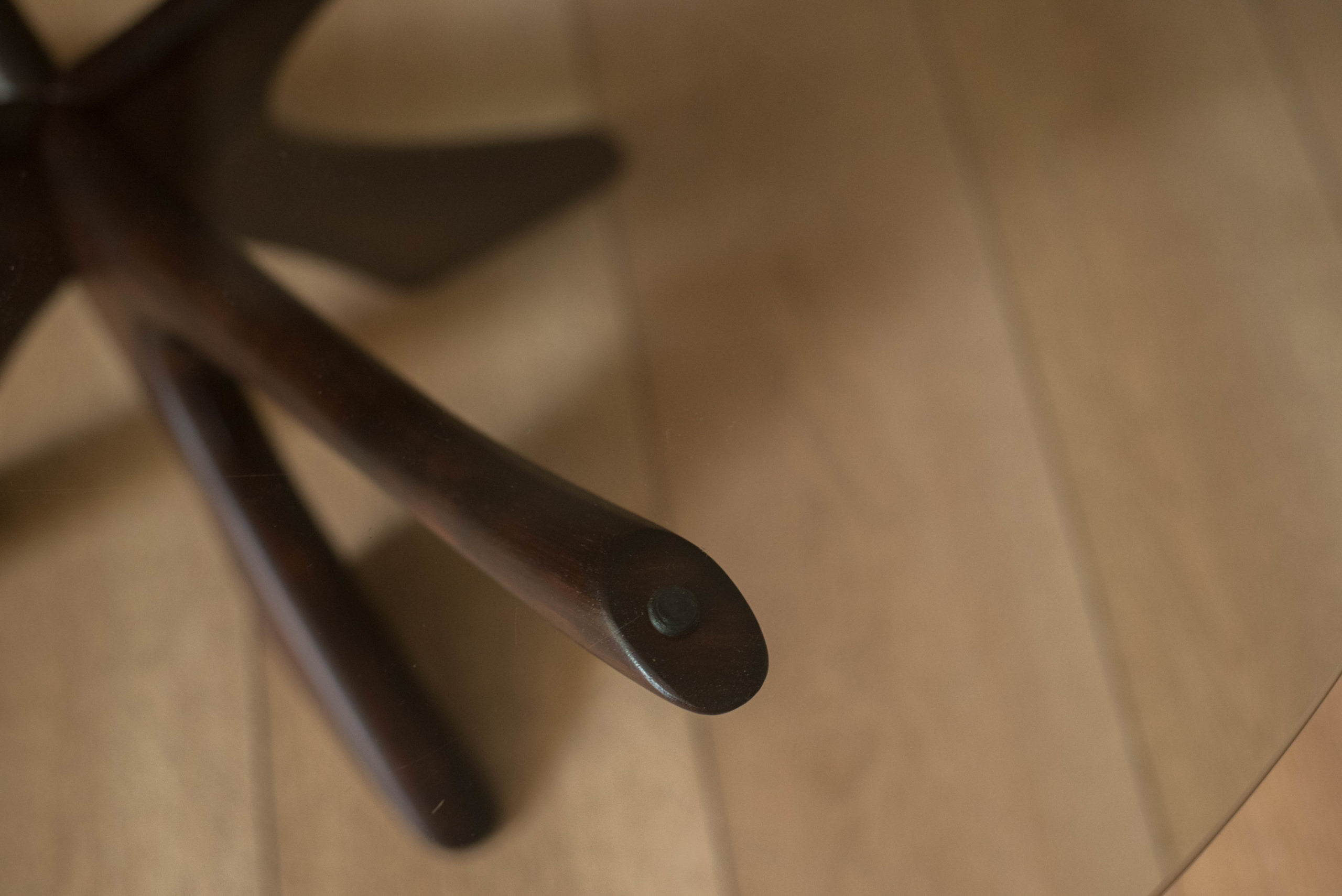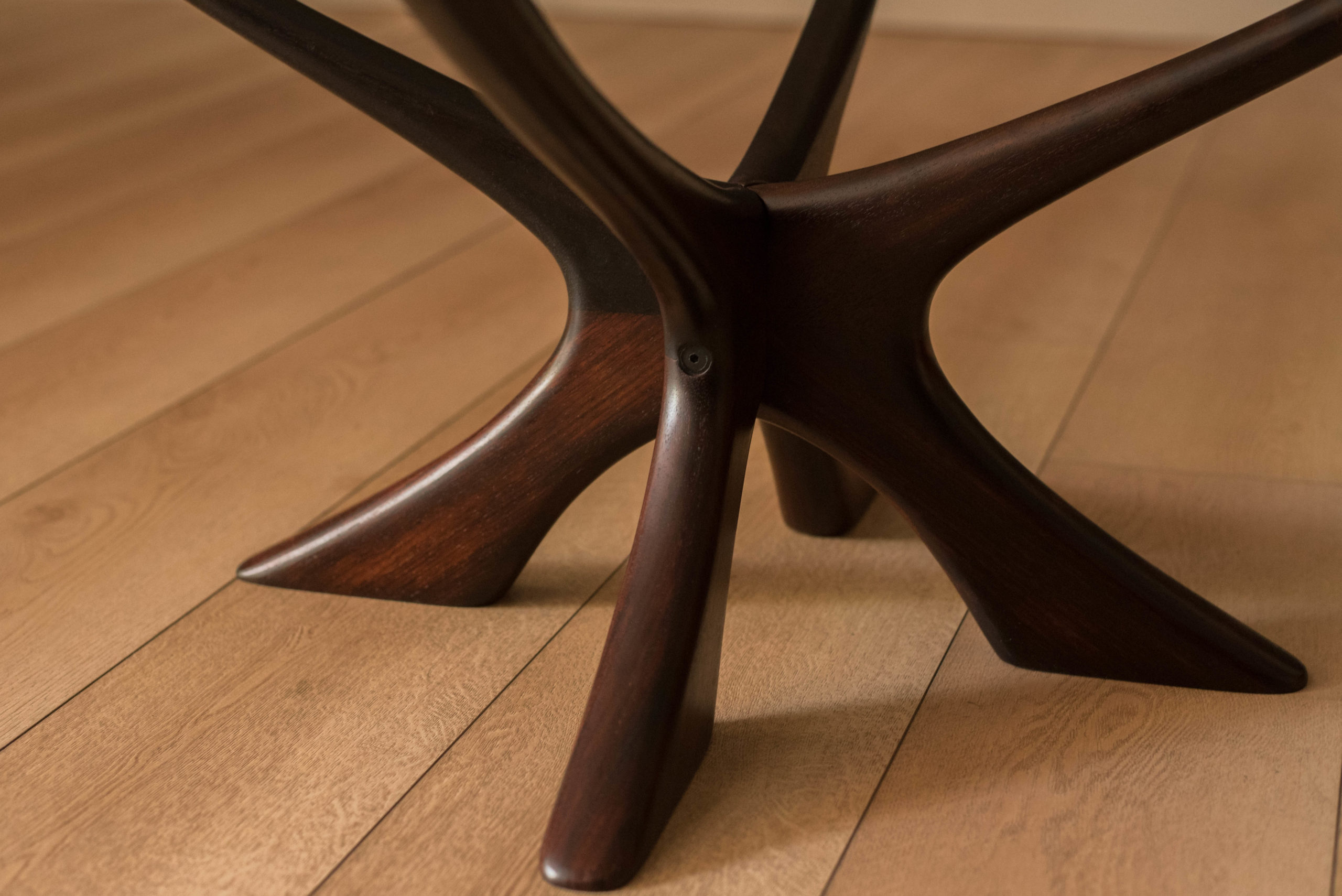 Vintage Sculptural Rosewood and Round Glass Coffee Table by Illum Wikkelsø