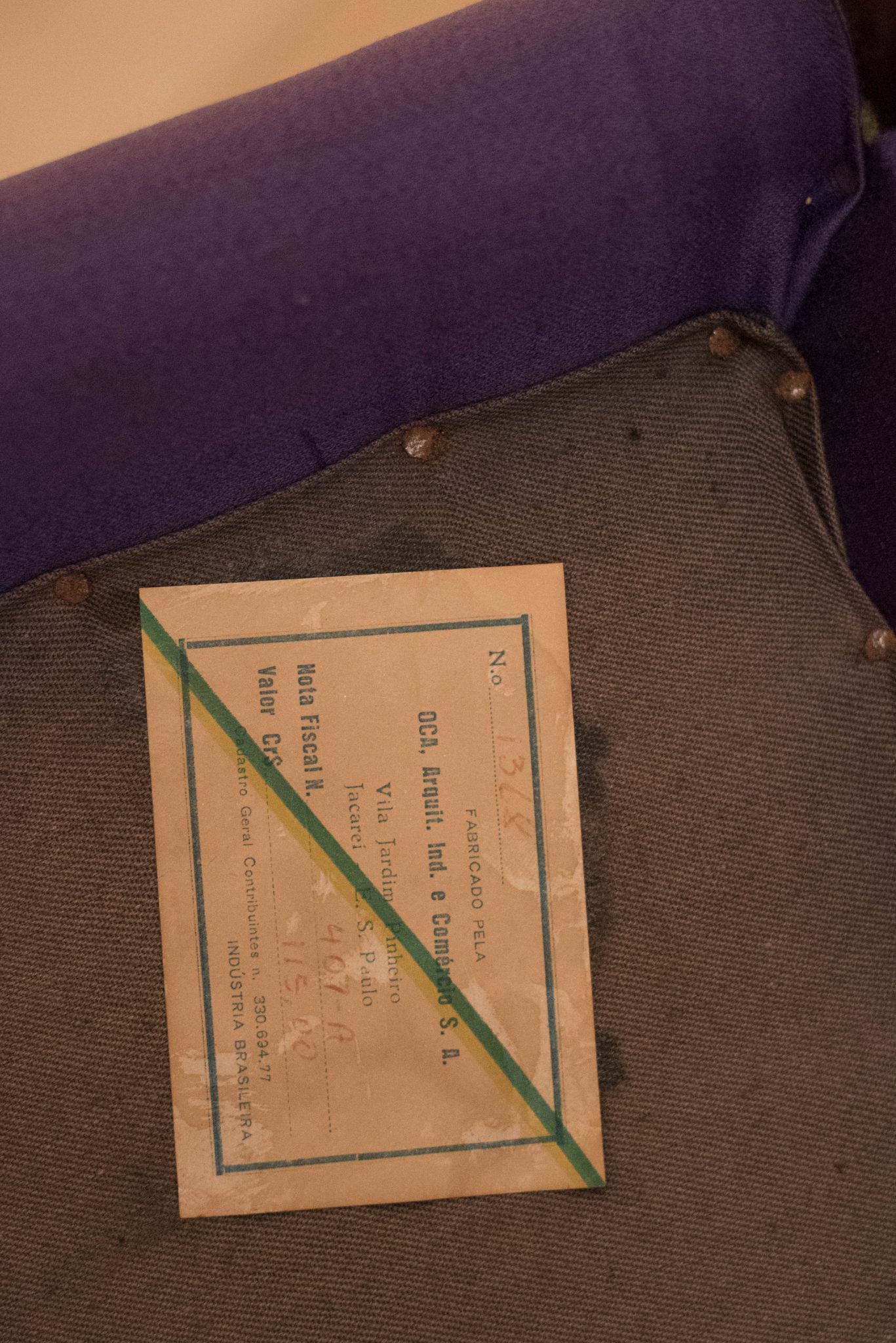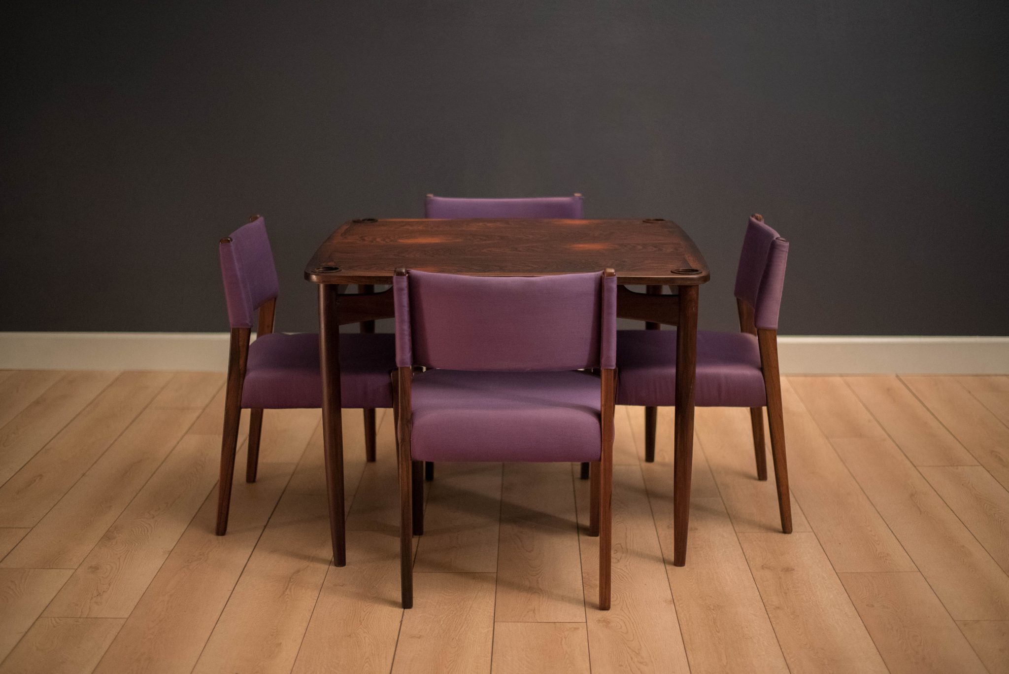 Mid century modern dining chairs in rosewood designed by Sergio Rodrigues for OCA, Brazil. This set includes four chairs with the original fabric. Upholstery can be customized with your choice of fabric at an additional cost, inquire for more information.