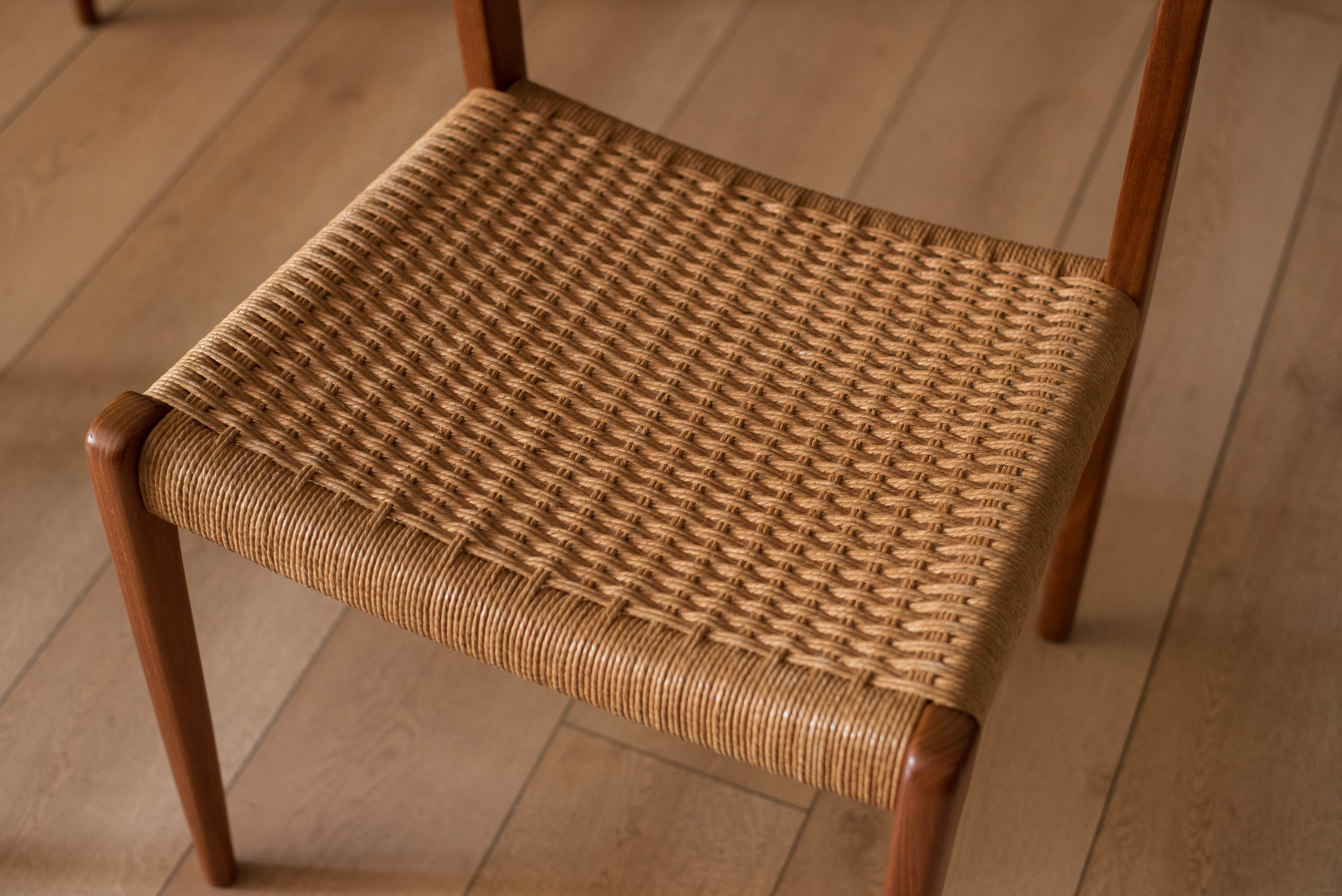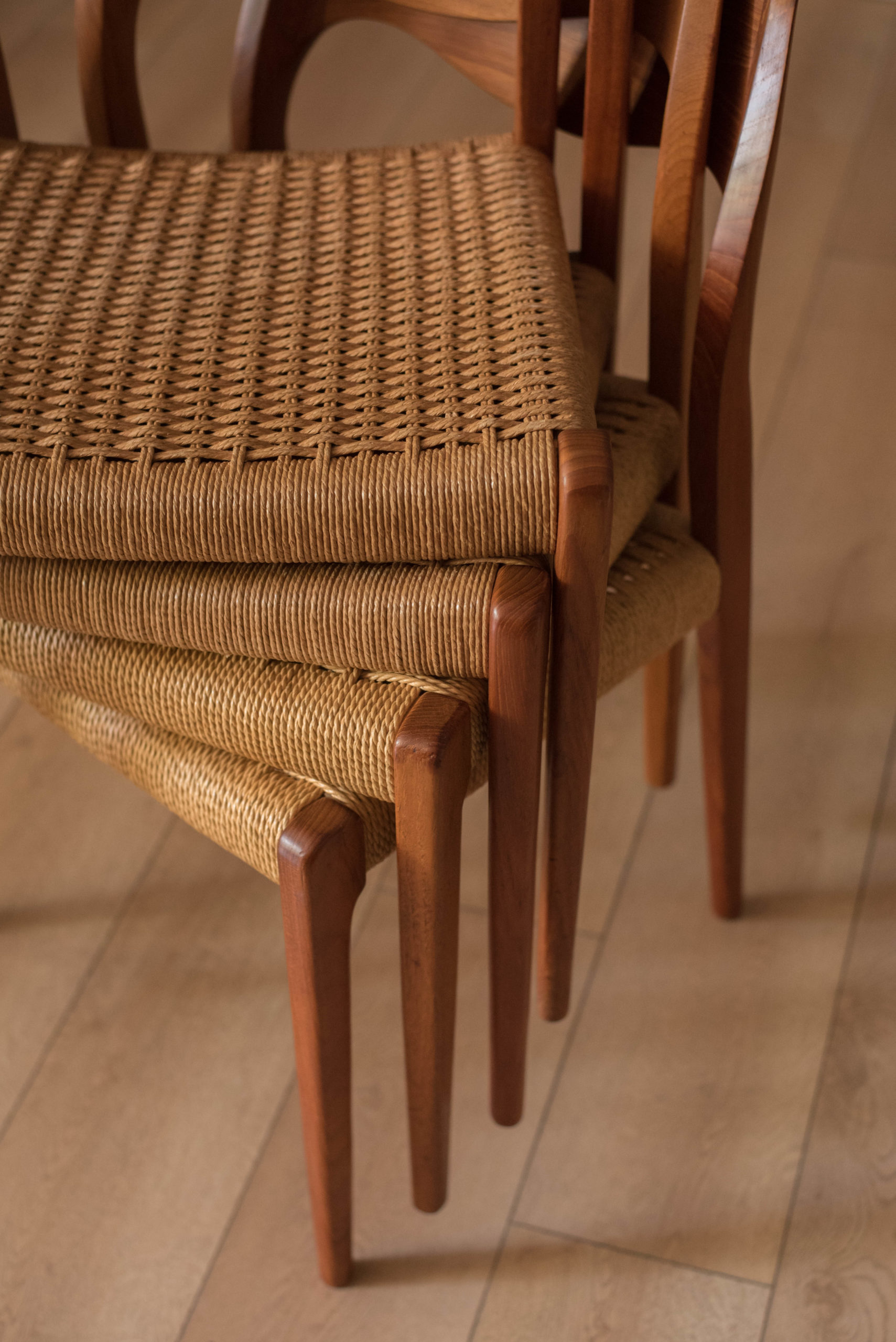 Vintage Set of Four Teak and Paper Cord Niels Otto Møller Dining Chairs No. 71