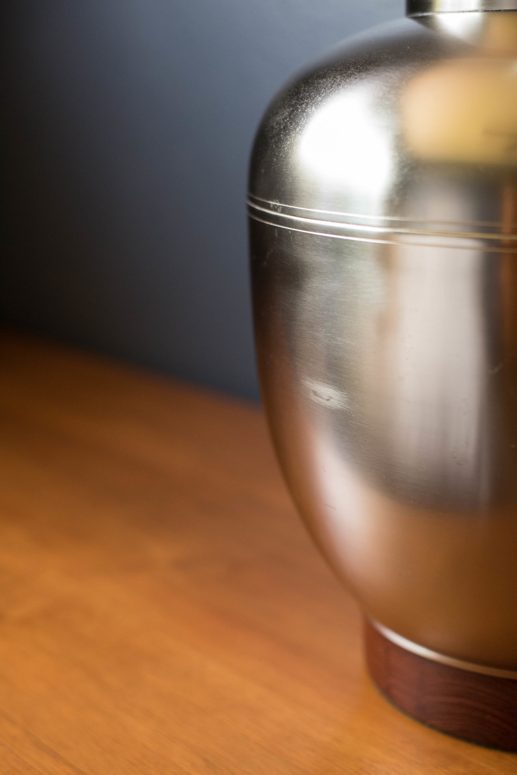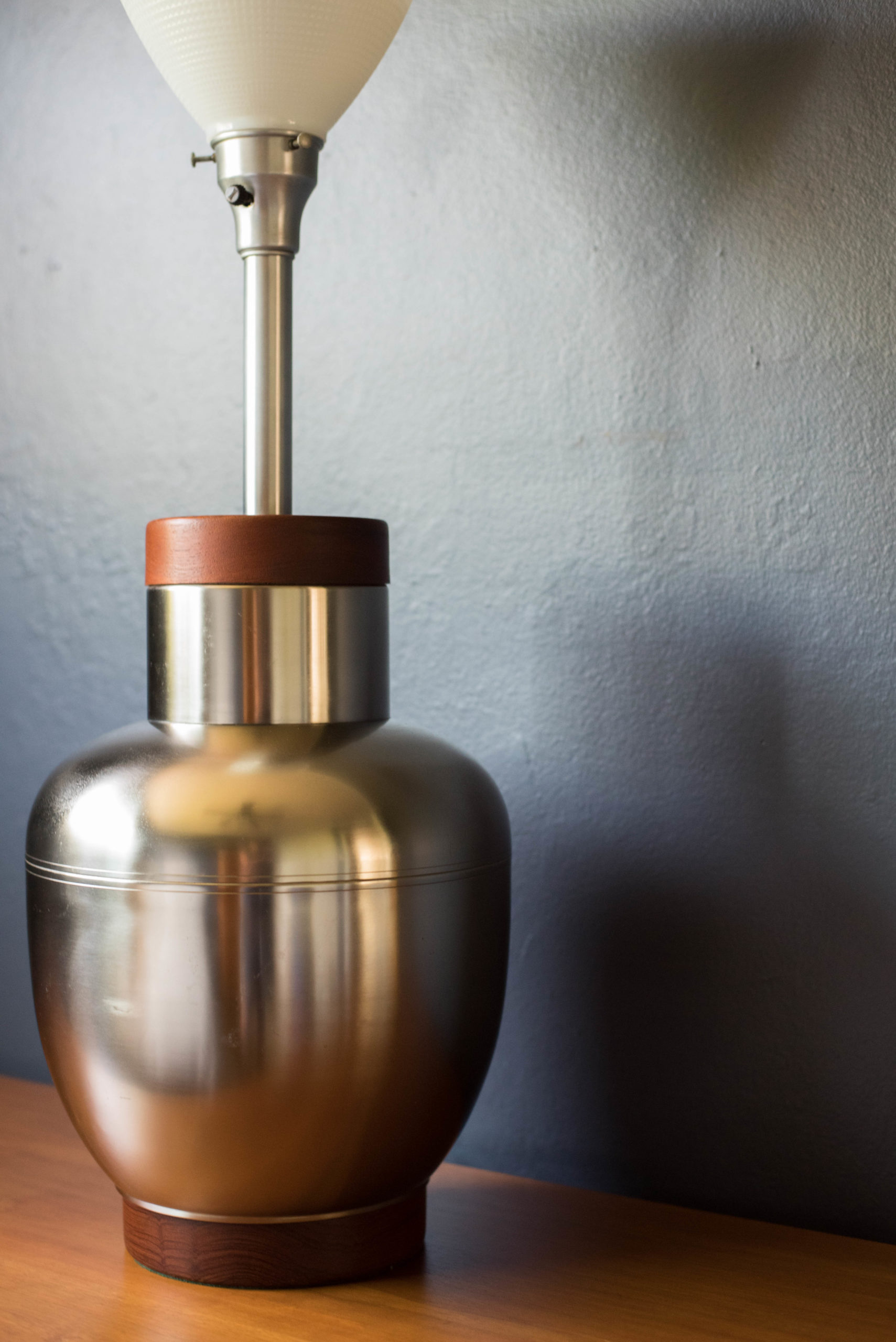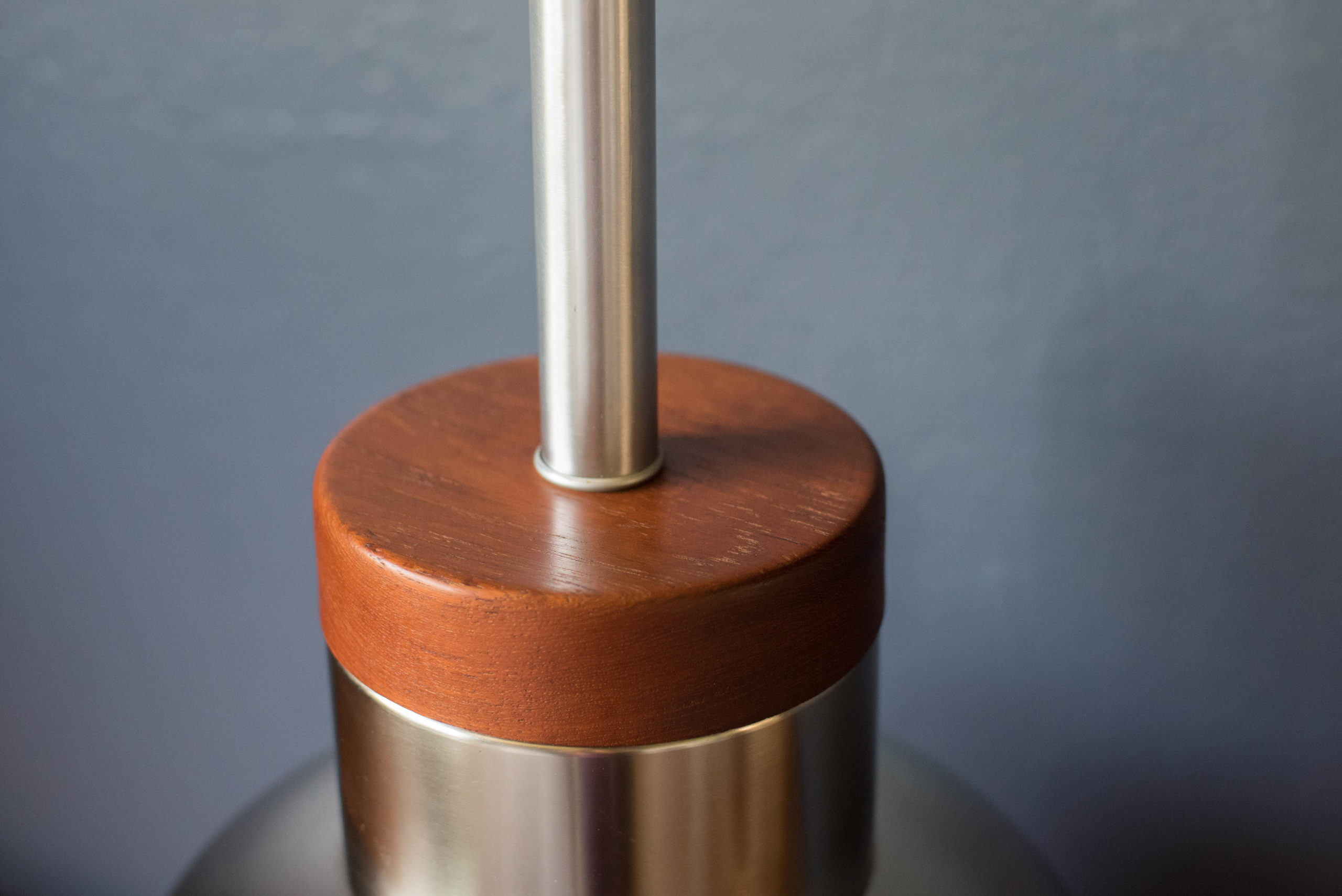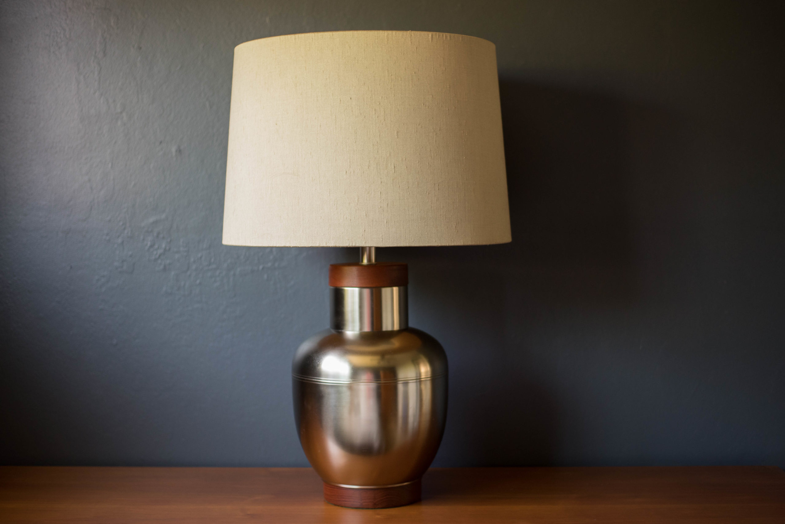 Vintage Stainless Steel and Teak Accent Table Lamp