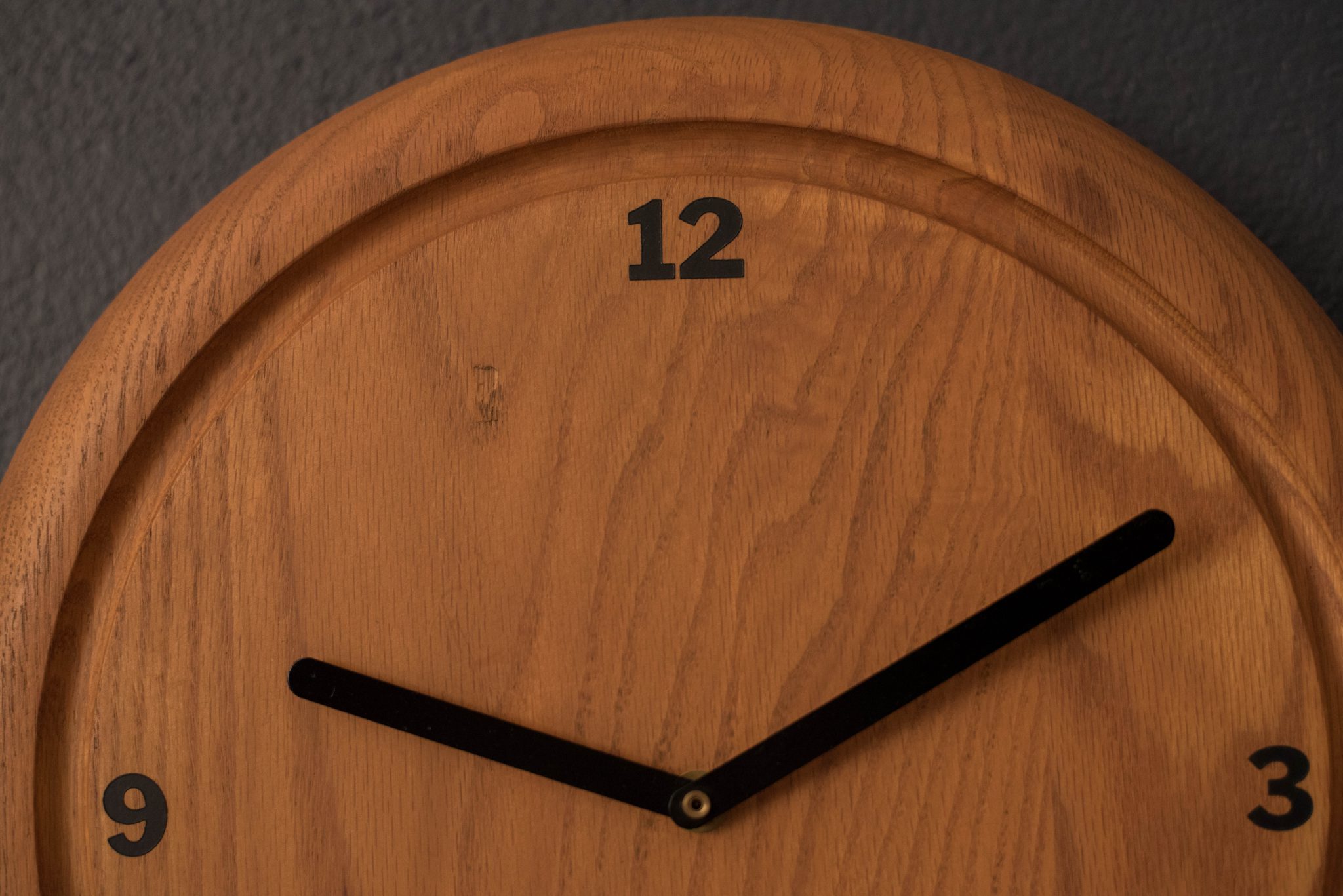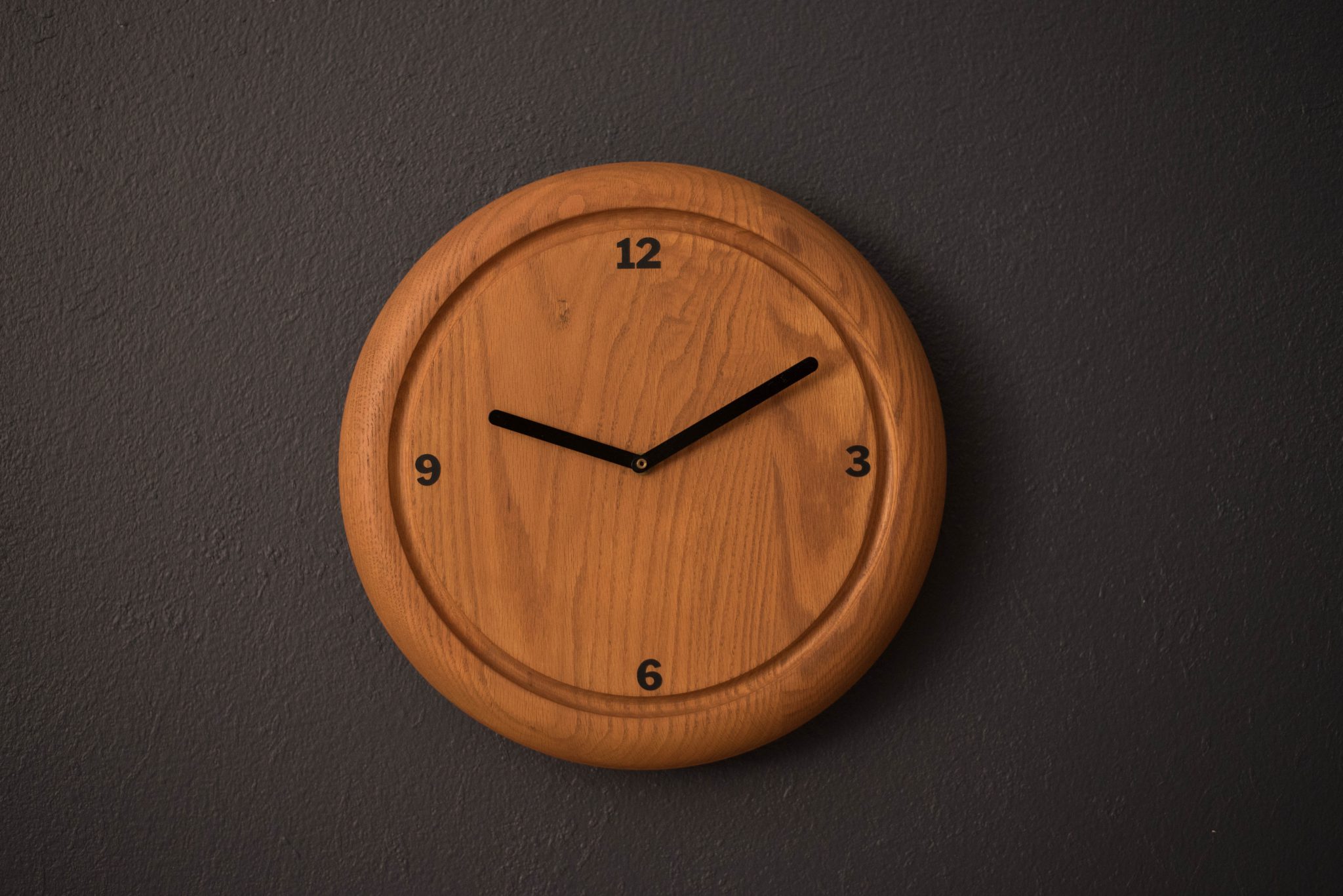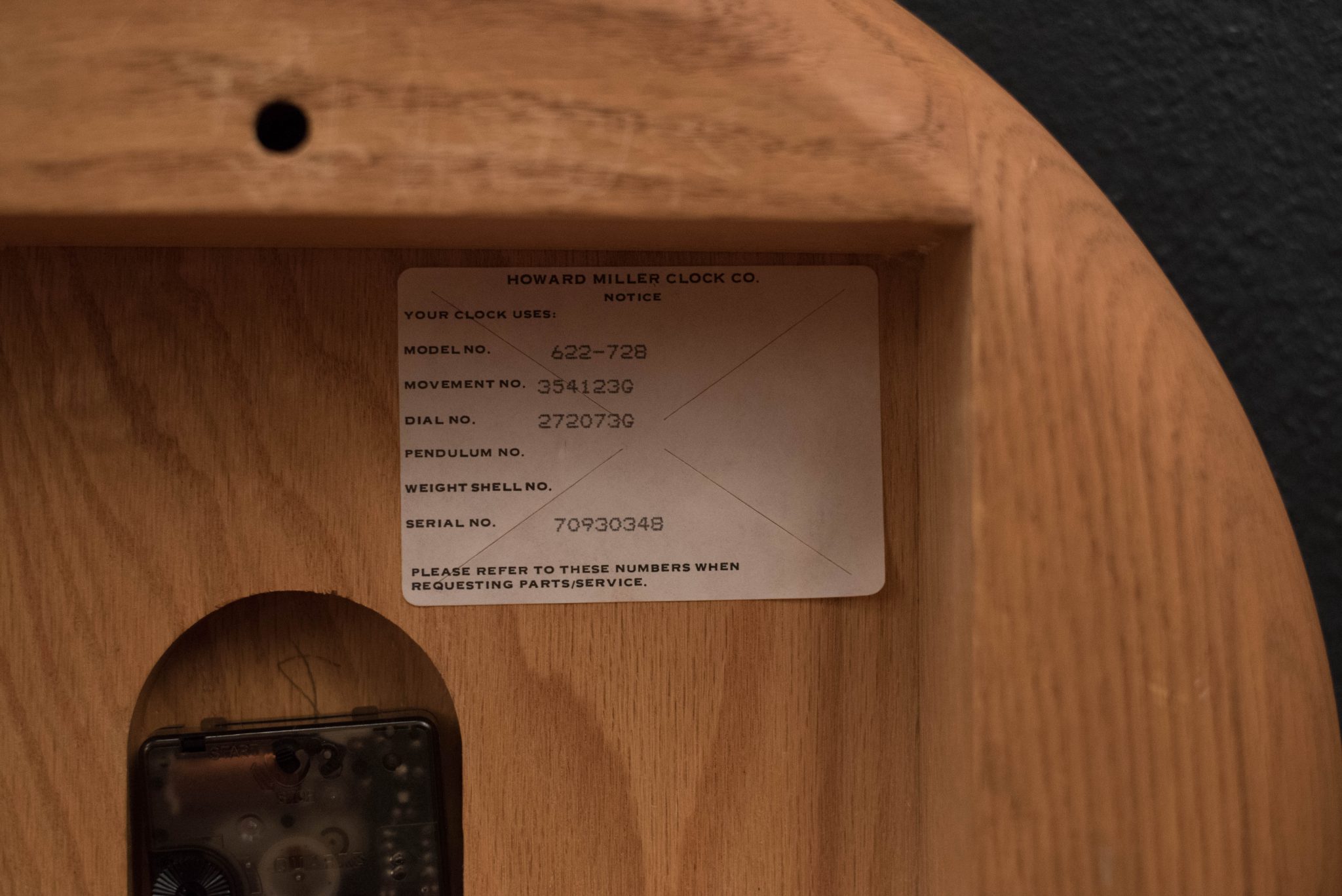 Mid century modern clock by Howard Miller. This piece is made of solid wood and is in good working condition. Operates with one AA battery.