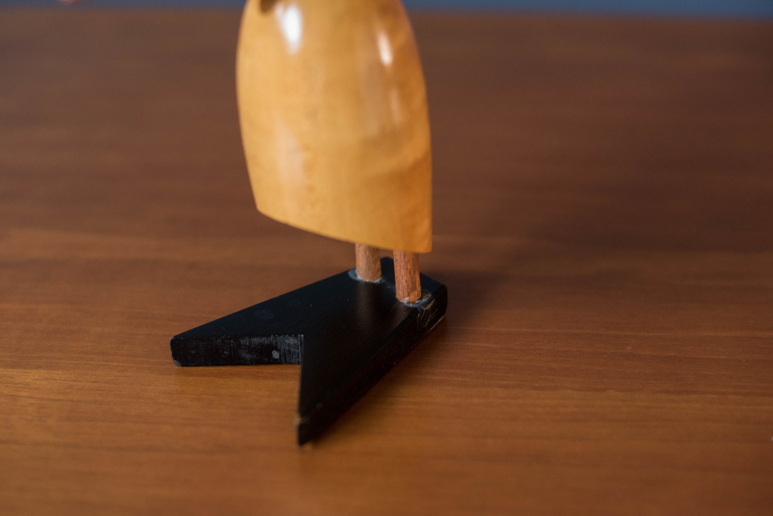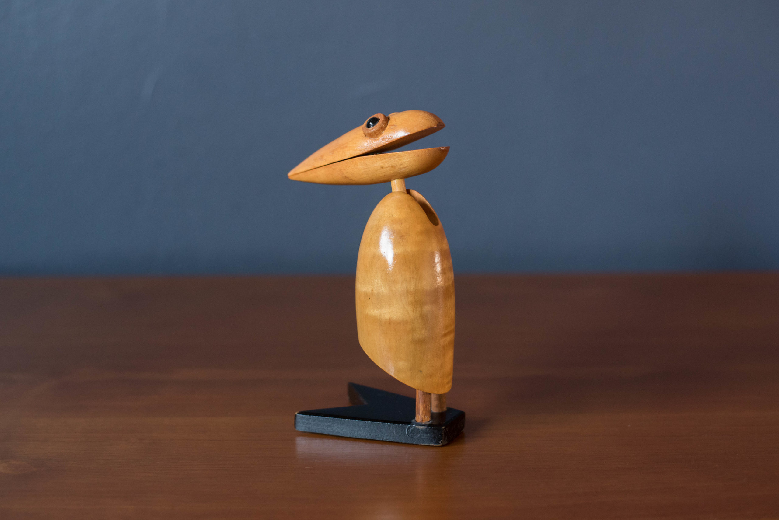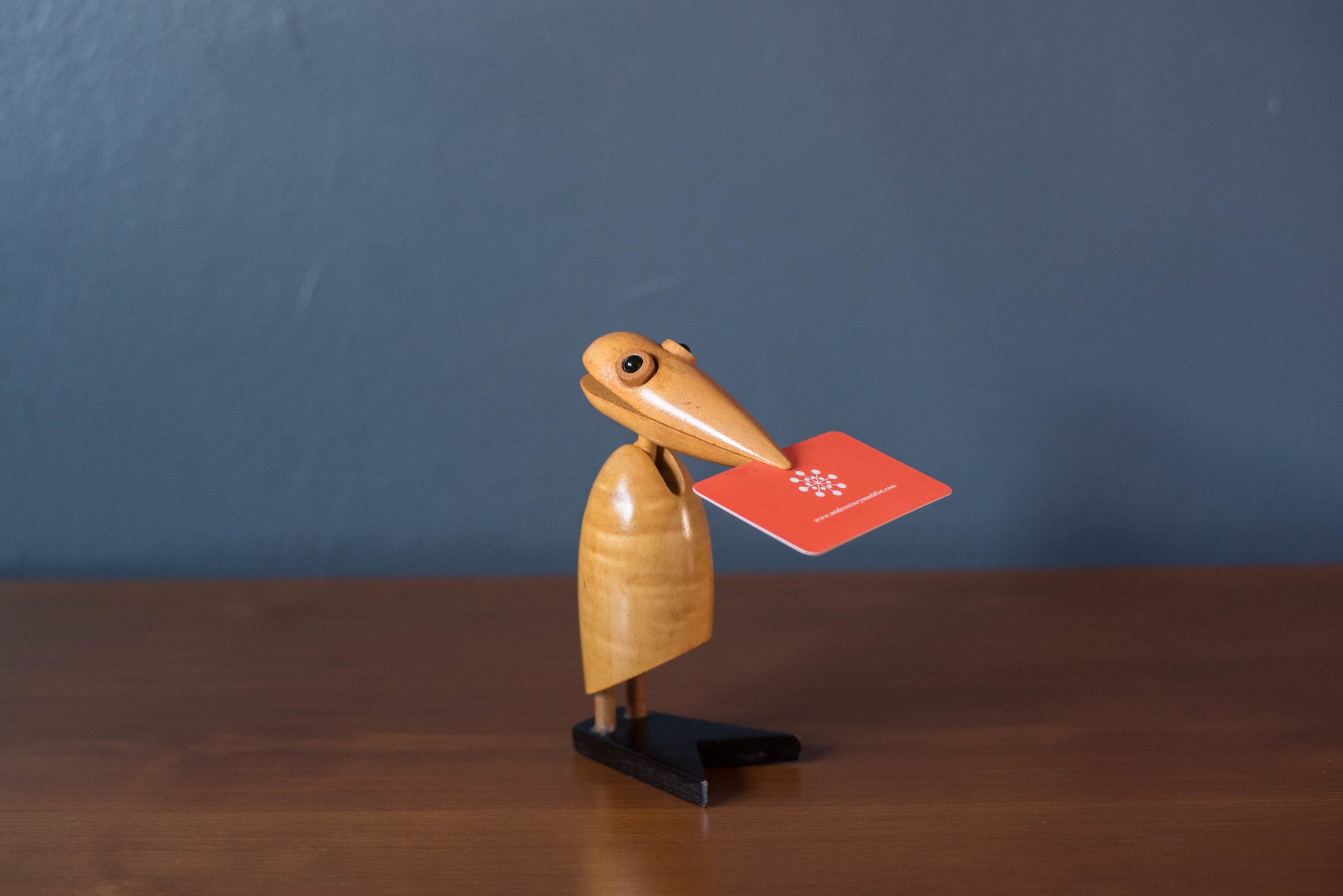 Mid-Century Modern desktop wooden dodo bird animal sculpture made in Japan, imported by Takahashi, San Francisco circa 1960’s. This clever piece functions as a paper note or business card holder. A fun accessory to display in the home of office.