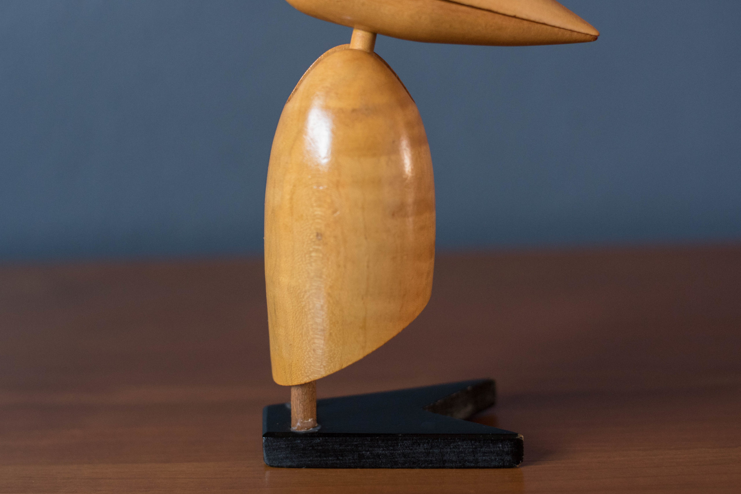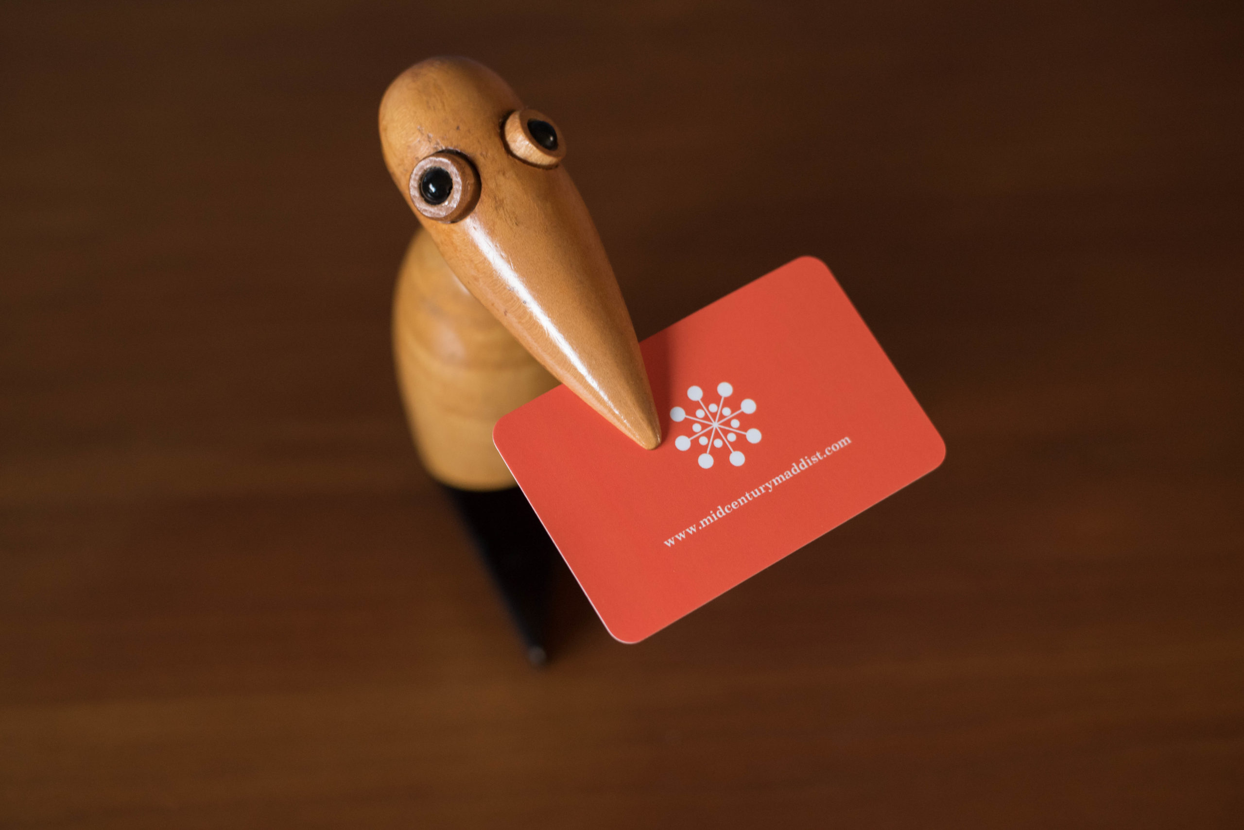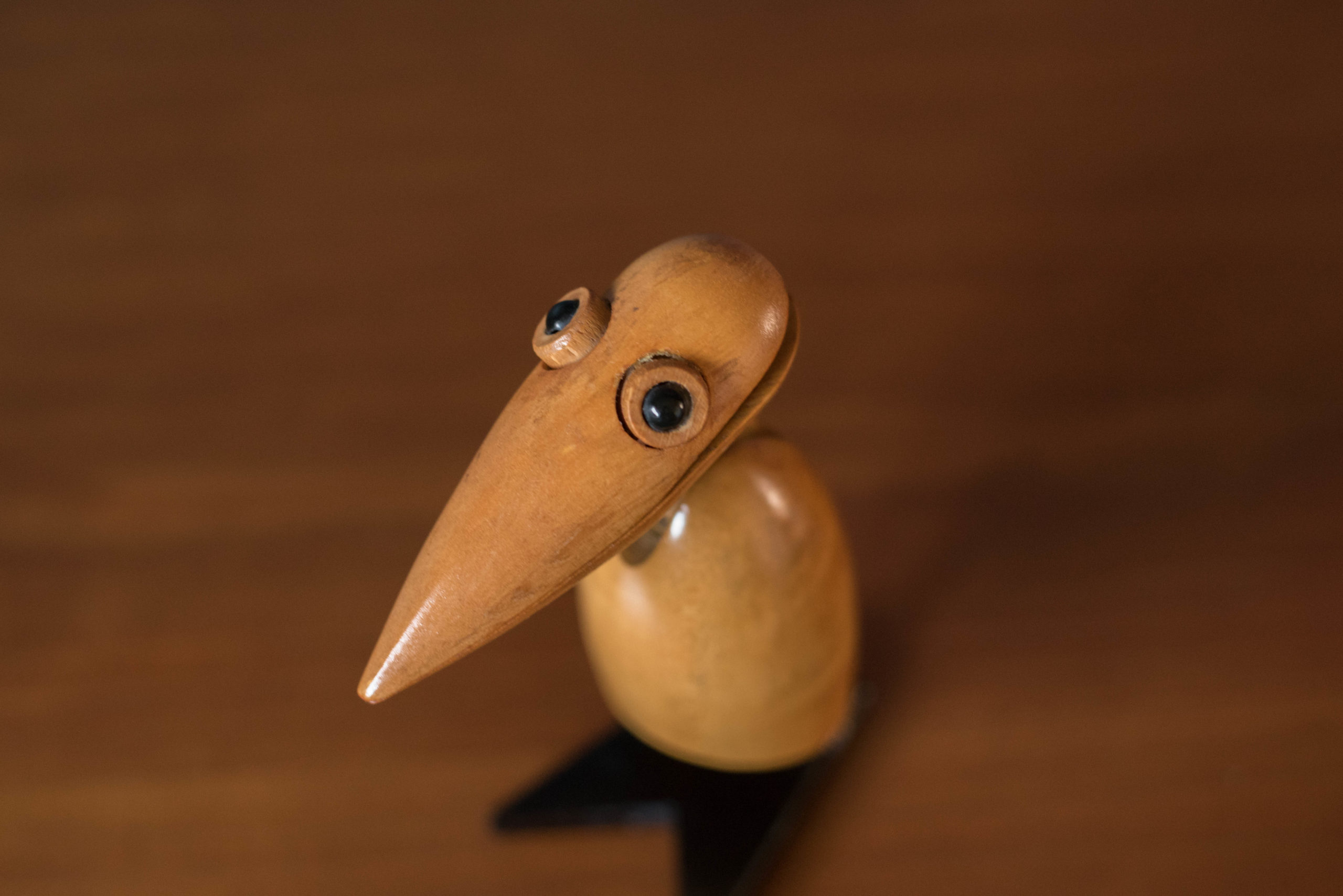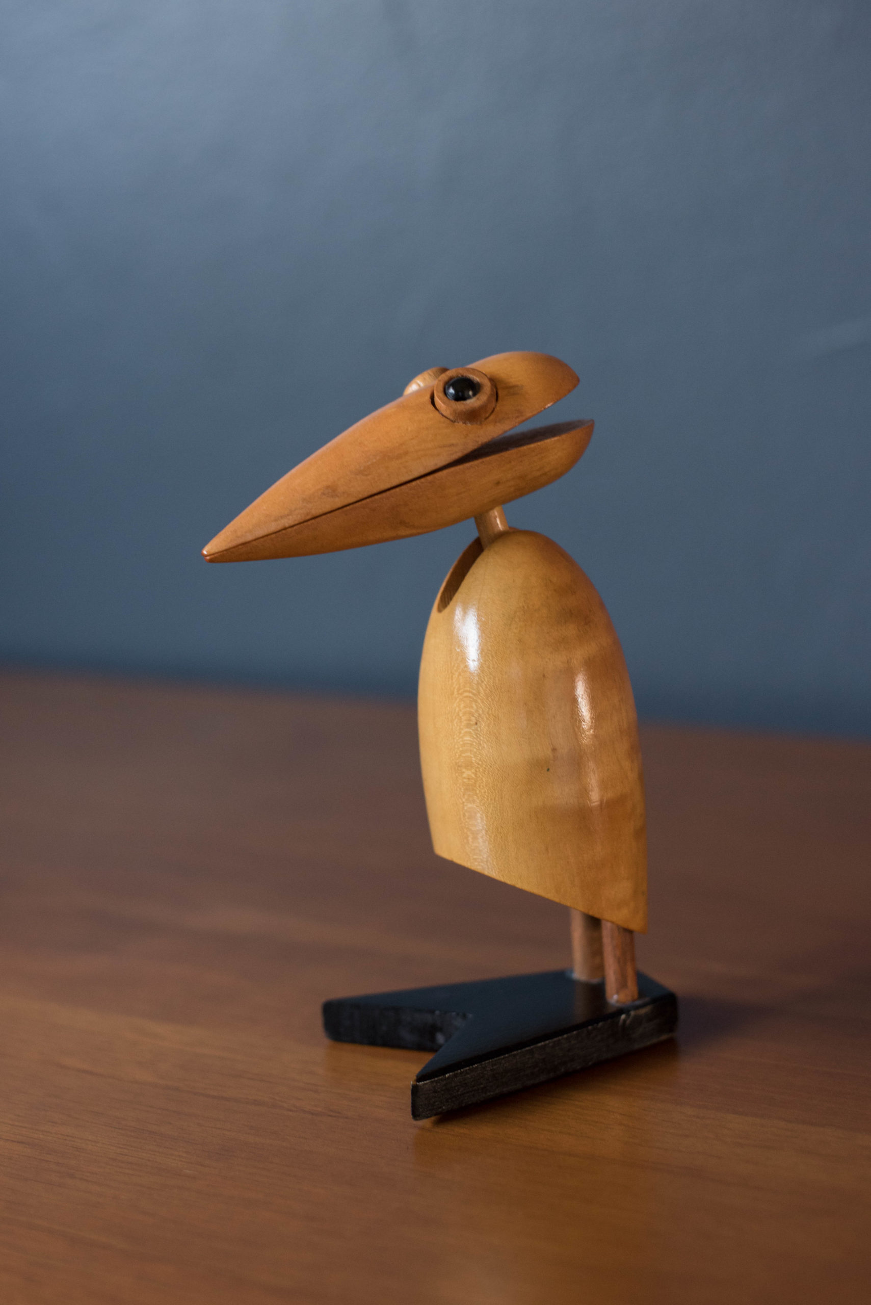 Mid-Century Modern desktop wooden dodo bird animal sculpture made in Japan, imported by Takahashi, San Francisco circa 1960’s. This clever piece functions as a paper note or business card holder. A fun accessory to display in the home of office.